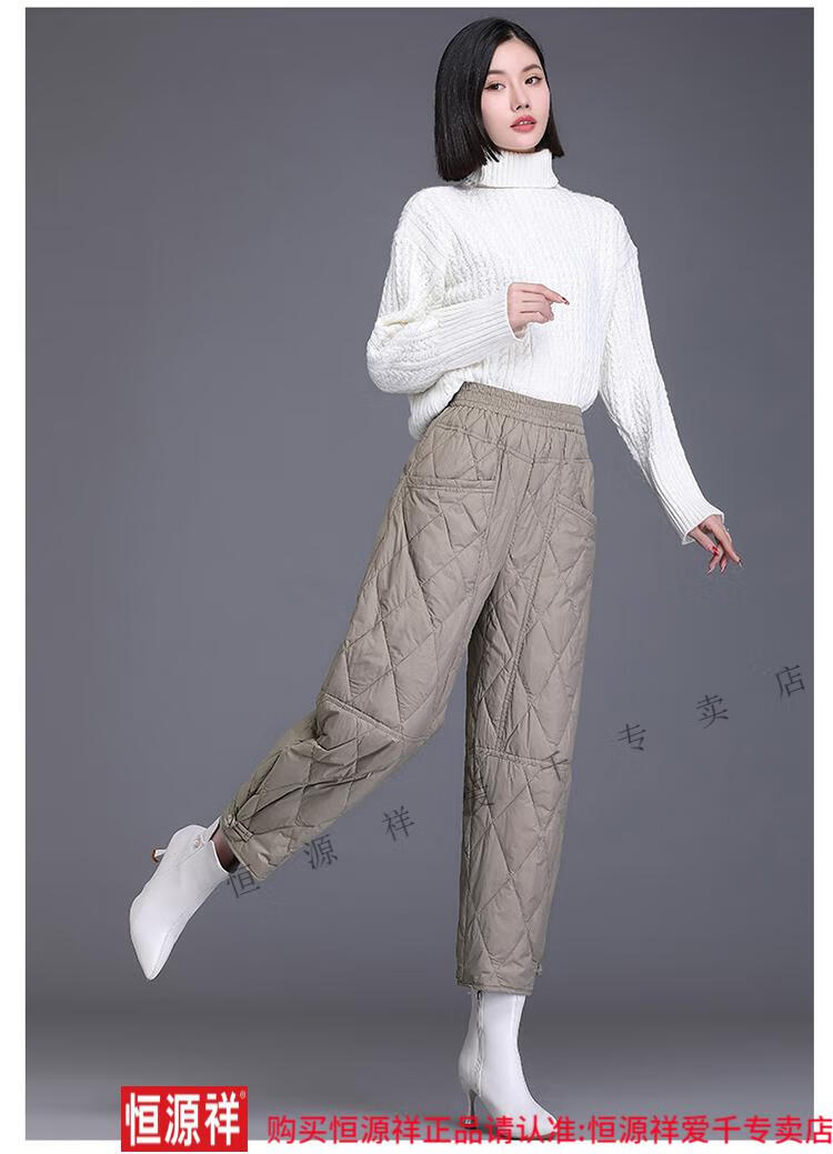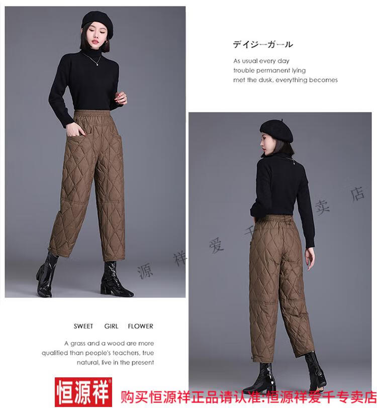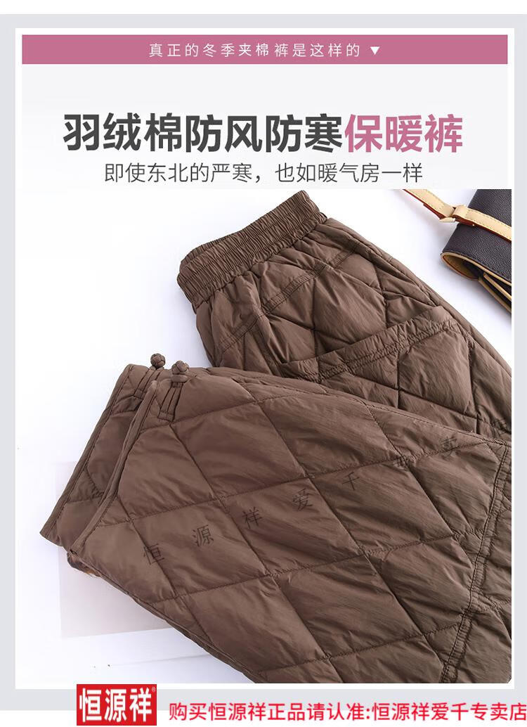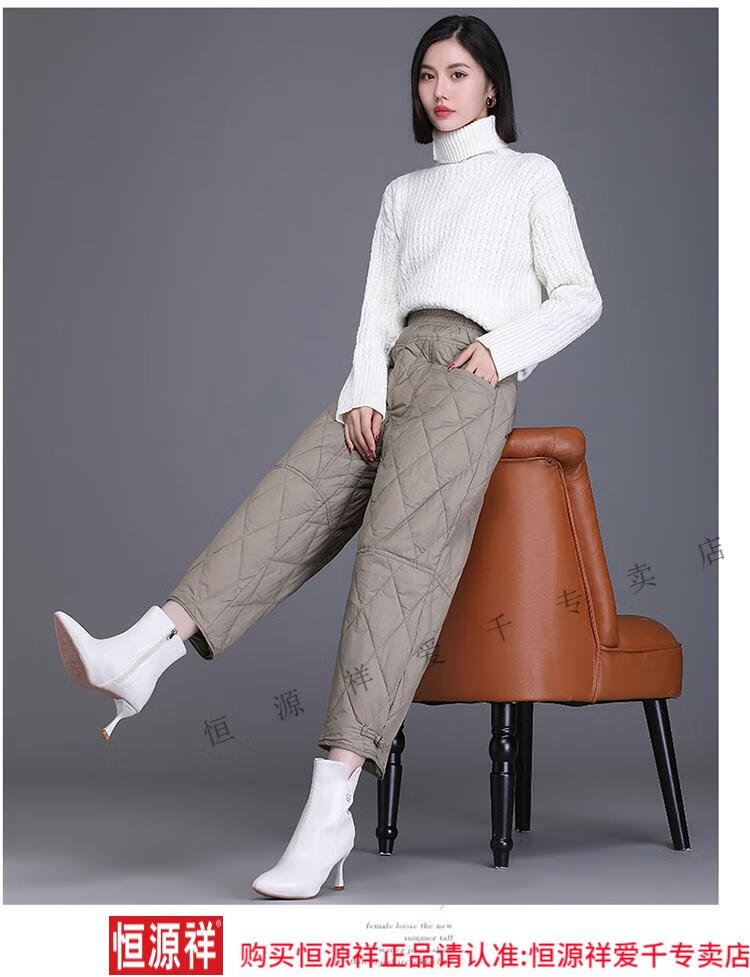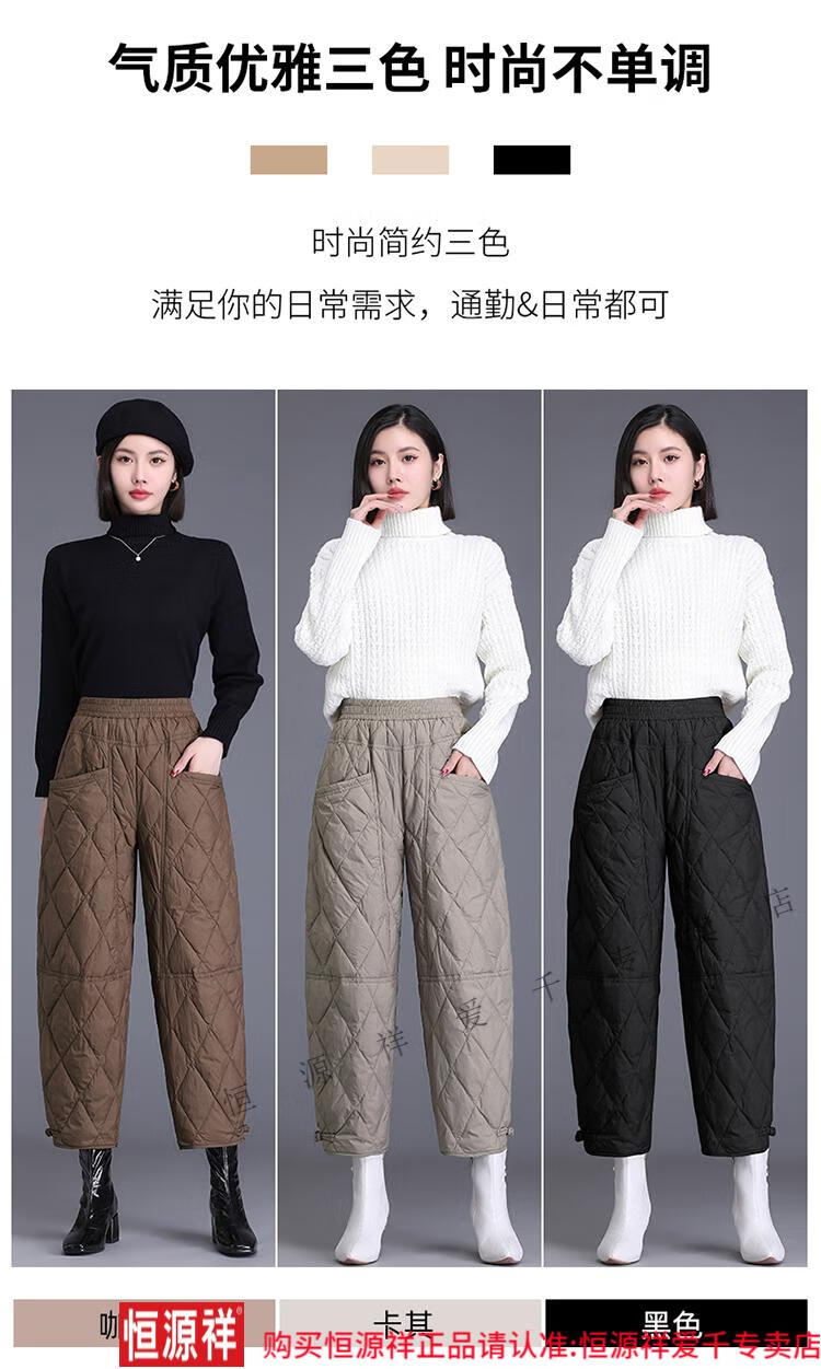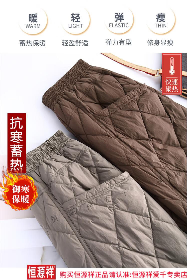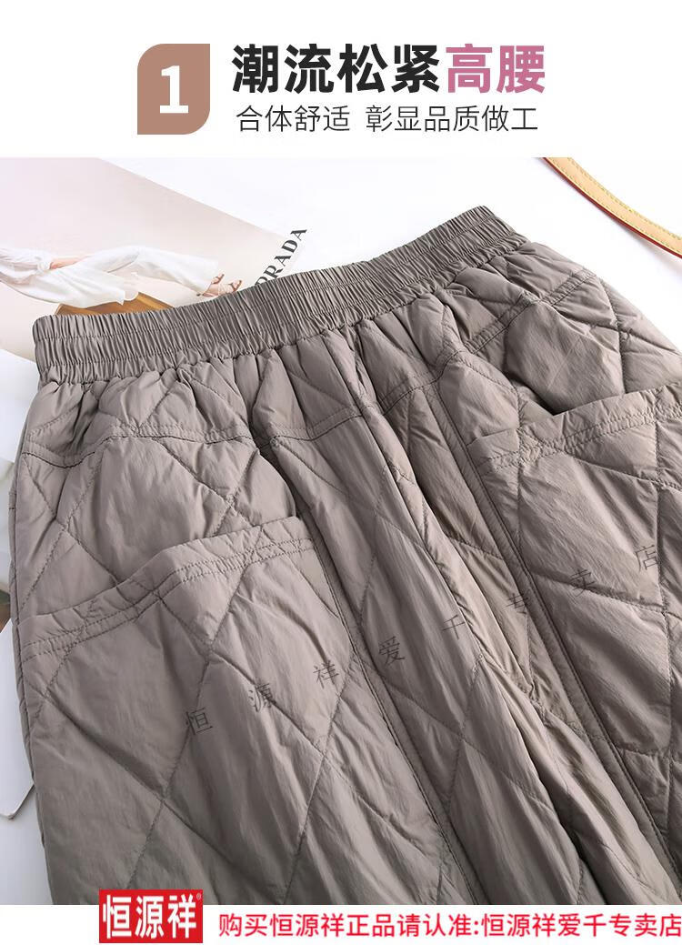 Hengyuanxiang Down Pants Women's Outerwear 2024 New Winter Fashion Women's Velvet Thickened Eight-Point Pants Mom's Warm Cotton Pants Brown 3XL
