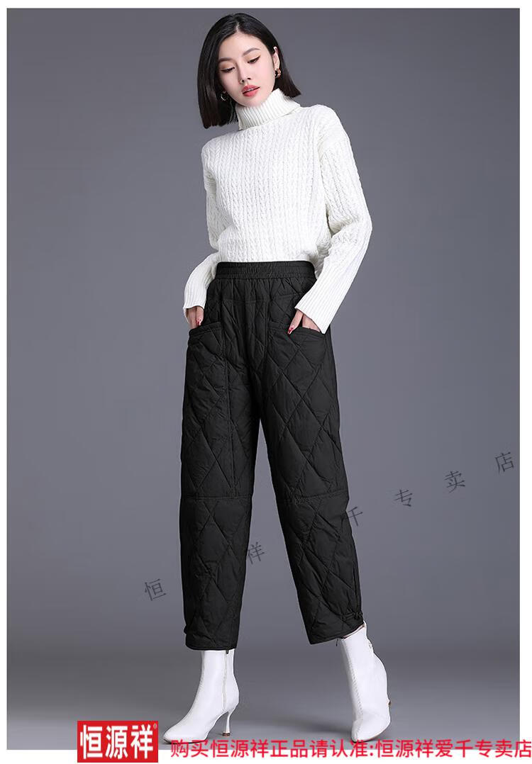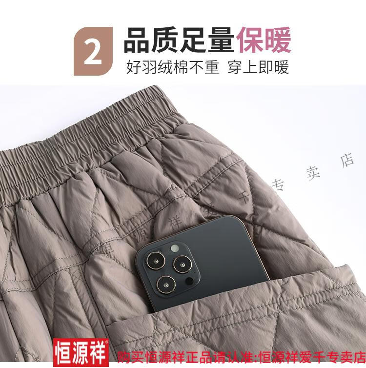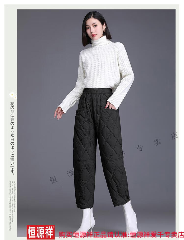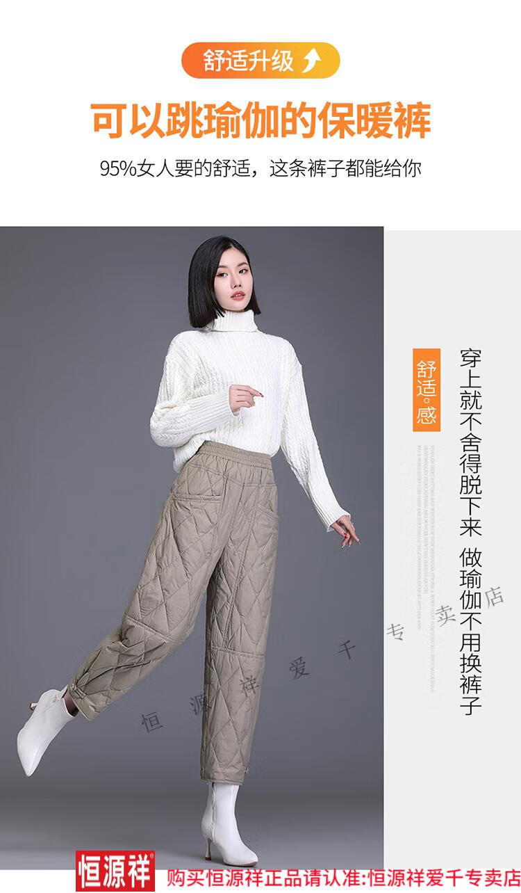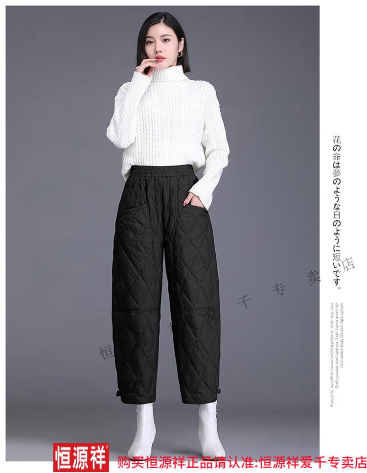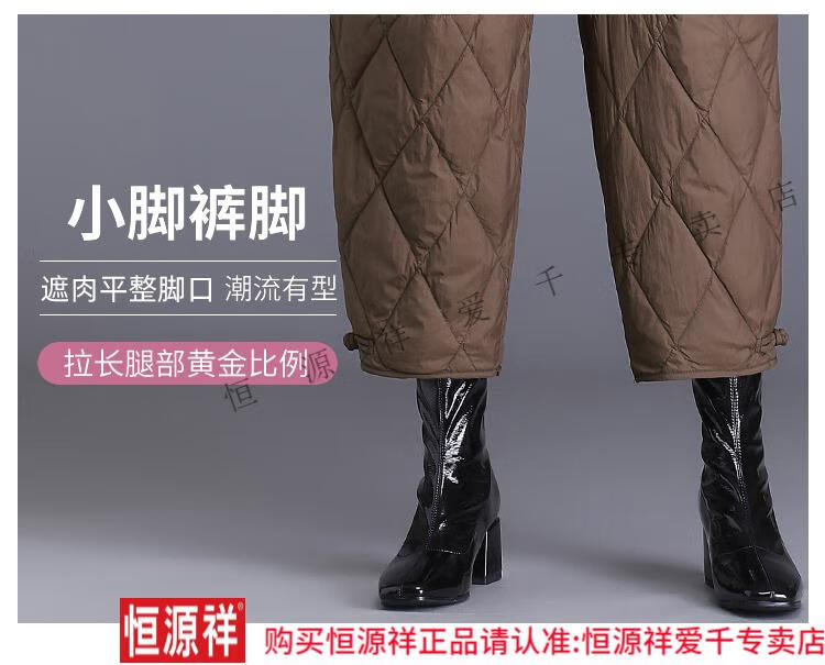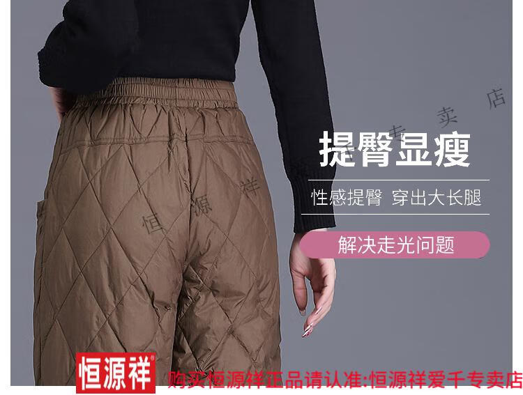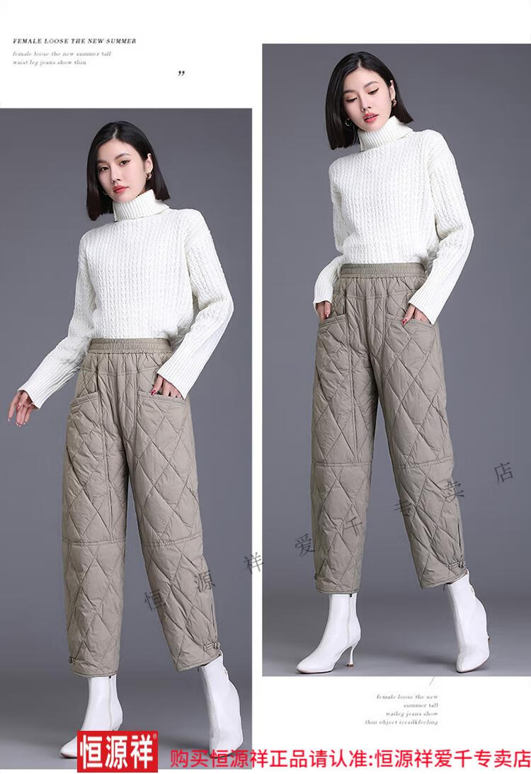 Hengyuanxiang Down Pants Women's Outerwear 2024 New Winter Fashion Women's Velvet Thickened Eight-Point Pants Mom's Warm Cotton Pants Brown 3XL