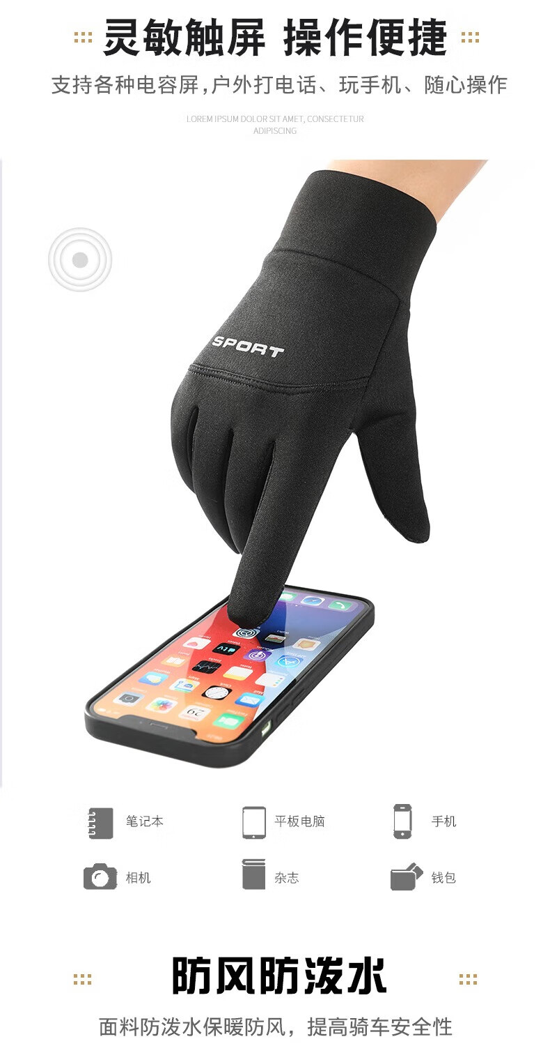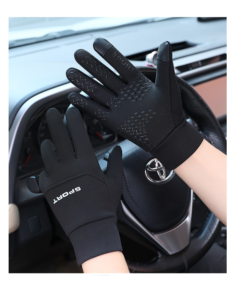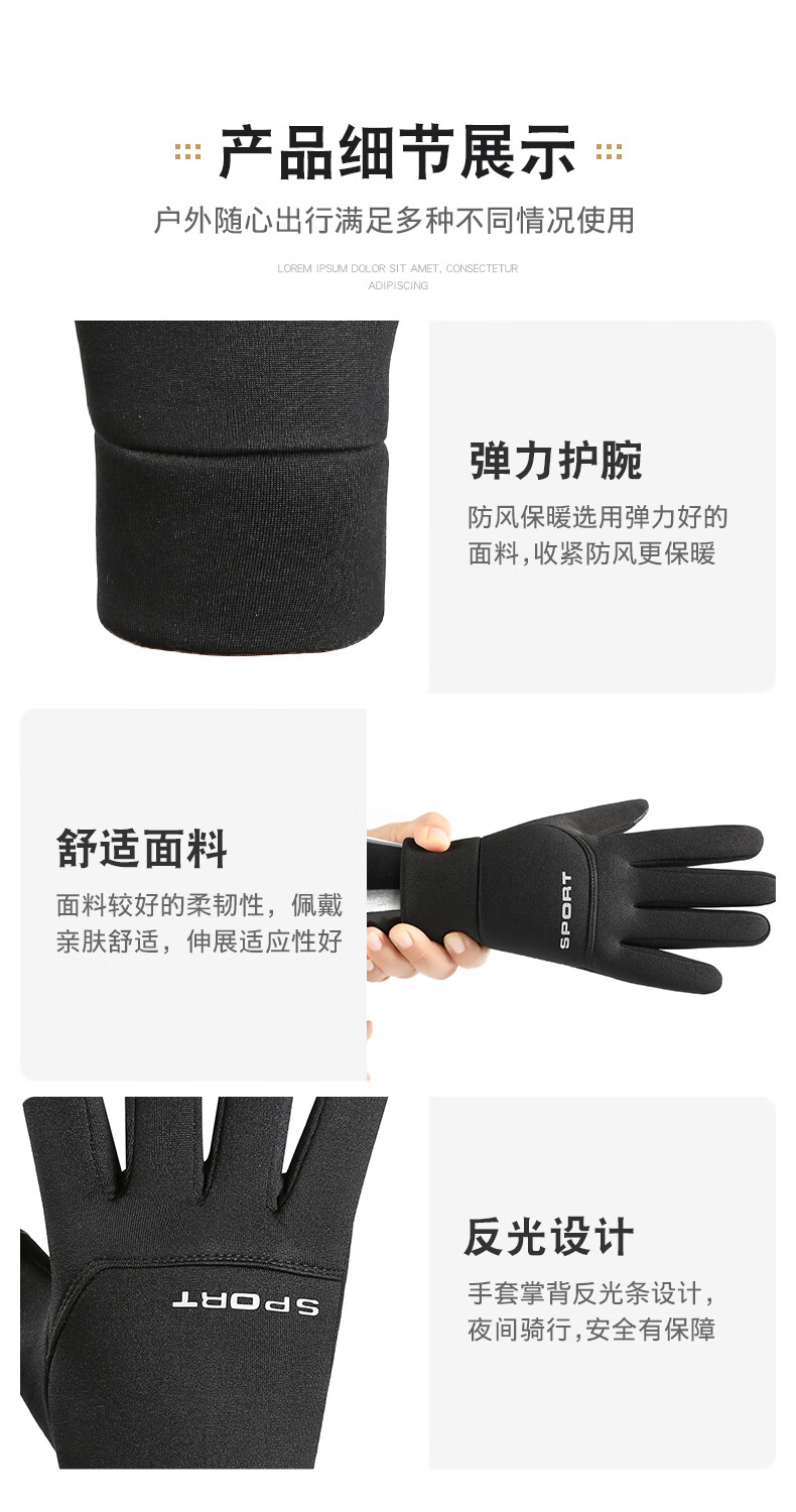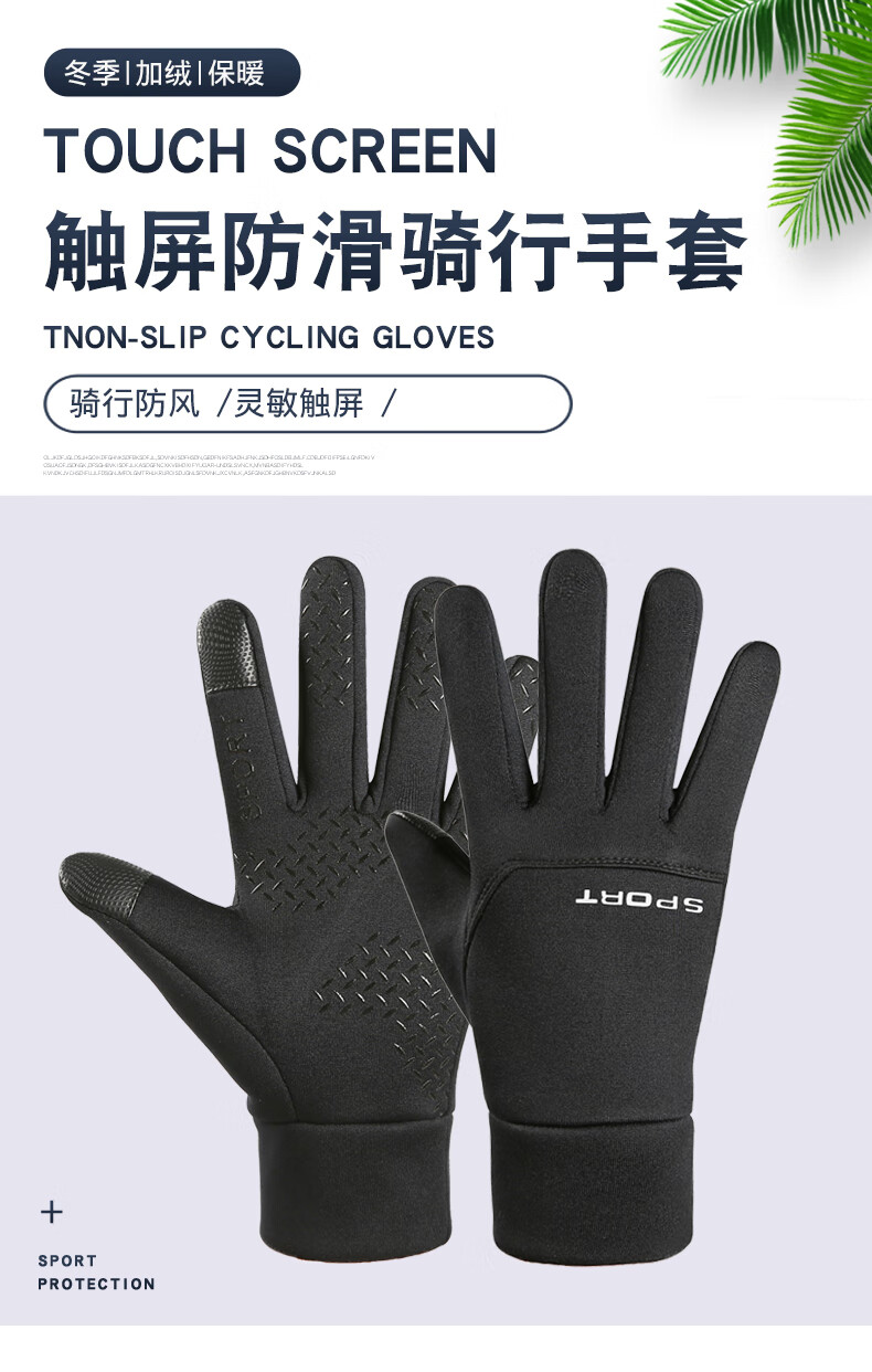 JD Logistics Autumn and Winter Warm Cycling Cycling Outdoor Sports Anti-Slip Touch Screen Driving Gloves for Men and Women Windproof and Water Splash Convenient Touch Screen Dark Night Black One Size 1 Pair Suitable for Palm Circumference 18-23cm