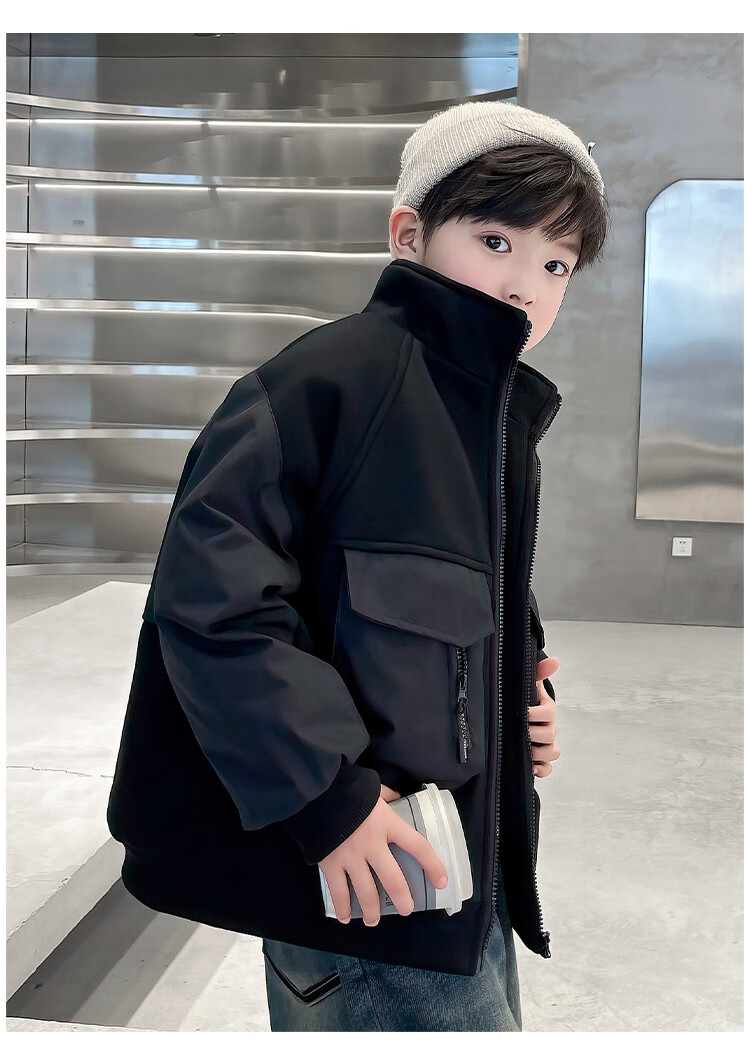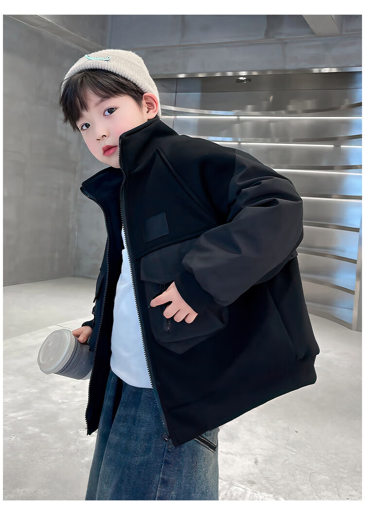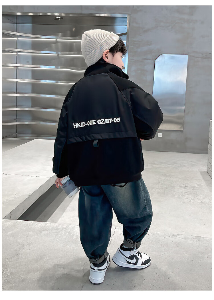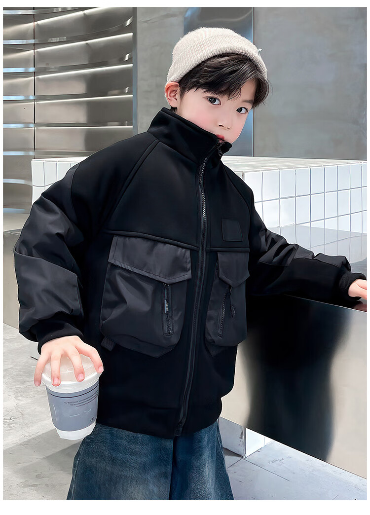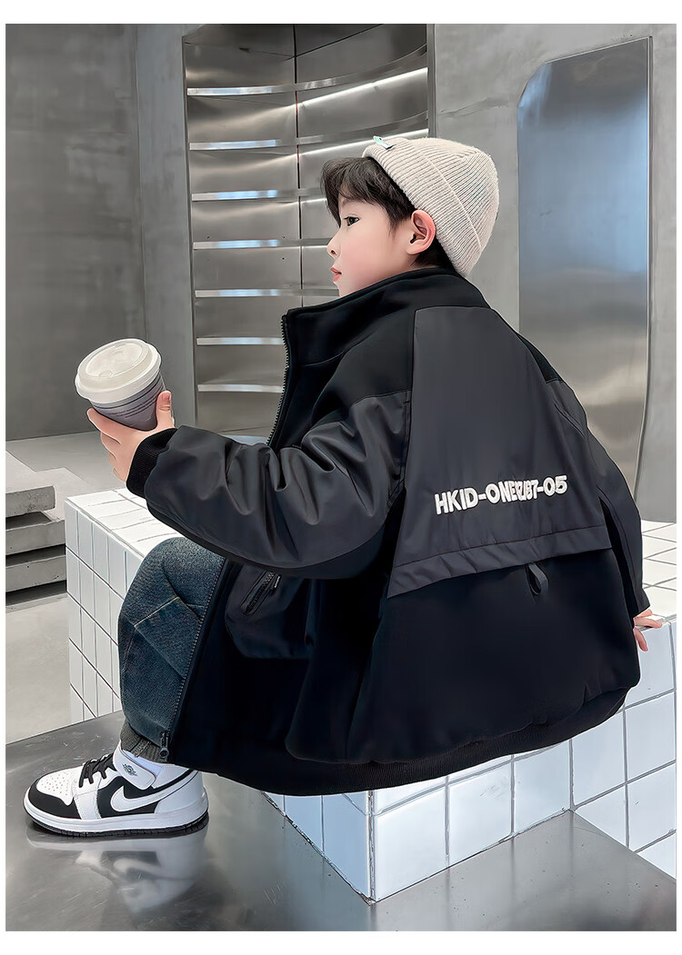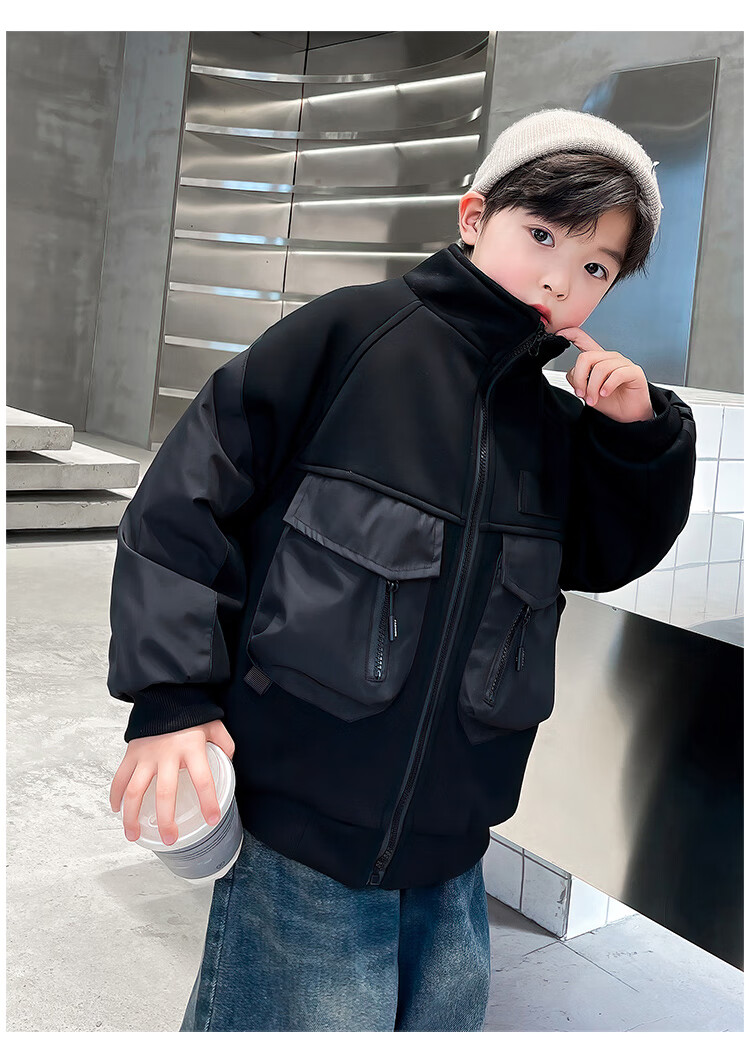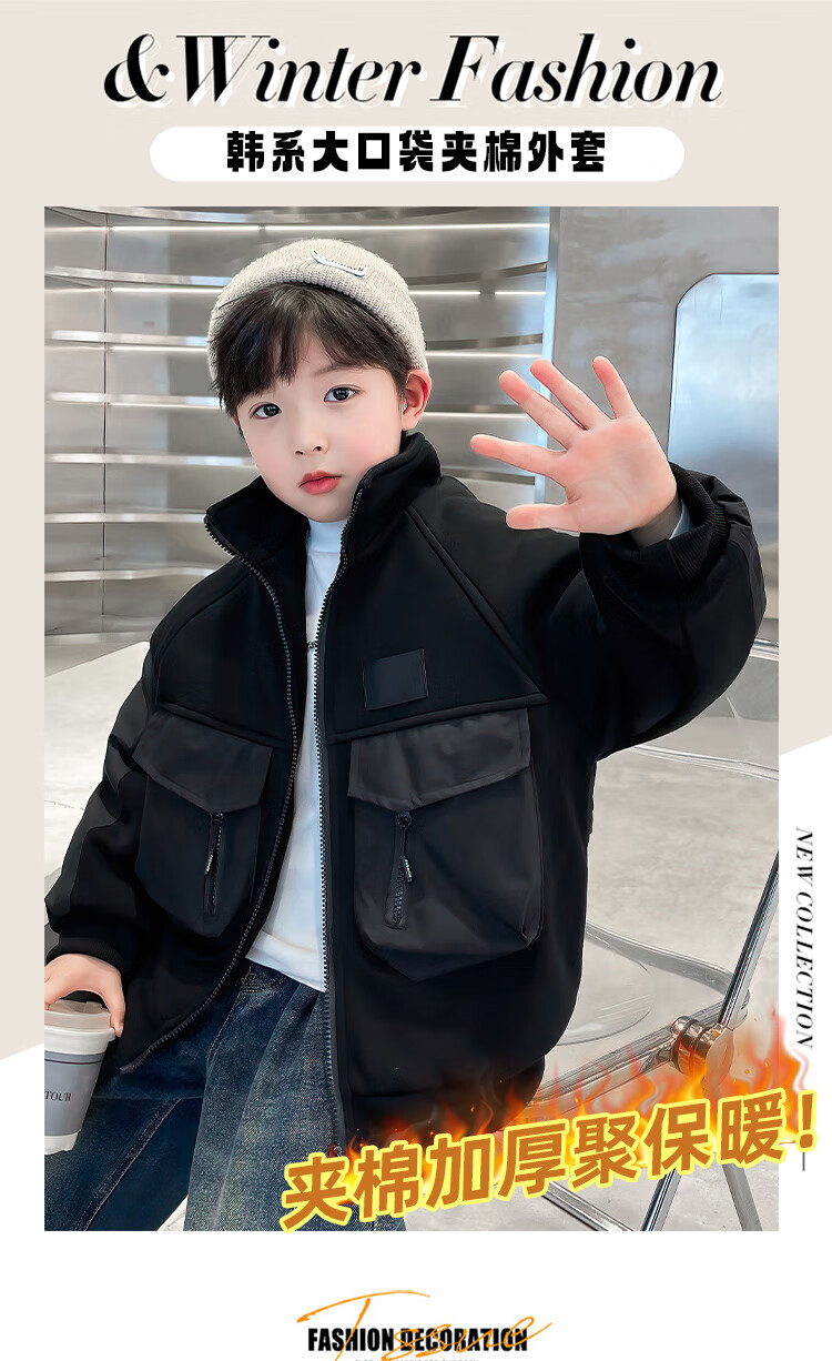 Katu Blue Cat Children's Wear Boys' Winter Jacket 2024 New Medium and Large Children's Thickened Autumn and Winter Boys' Street Ruff Handsome Cotton Clothes Trendy Black 150cm