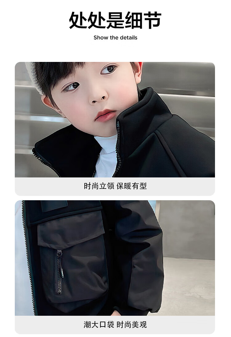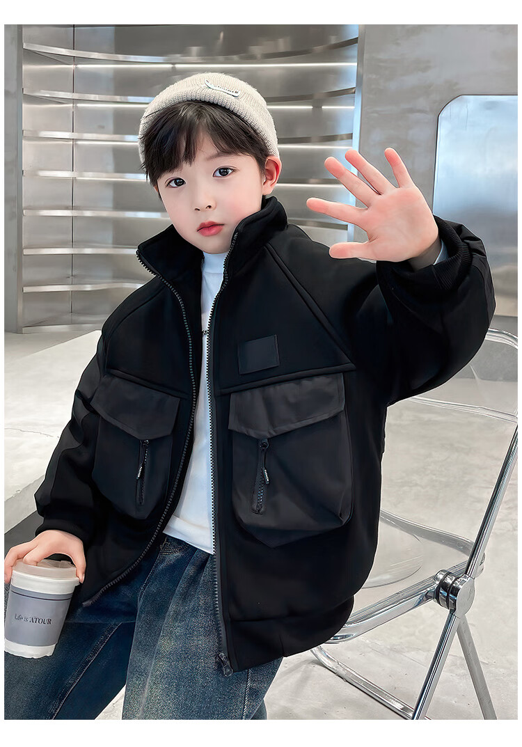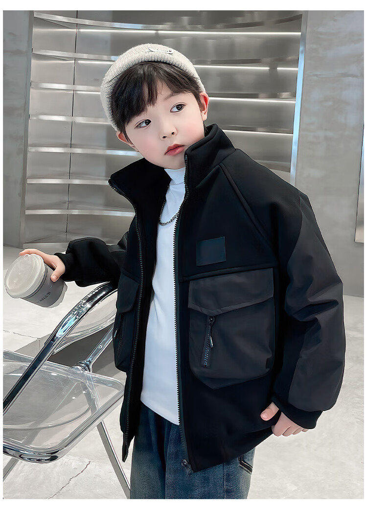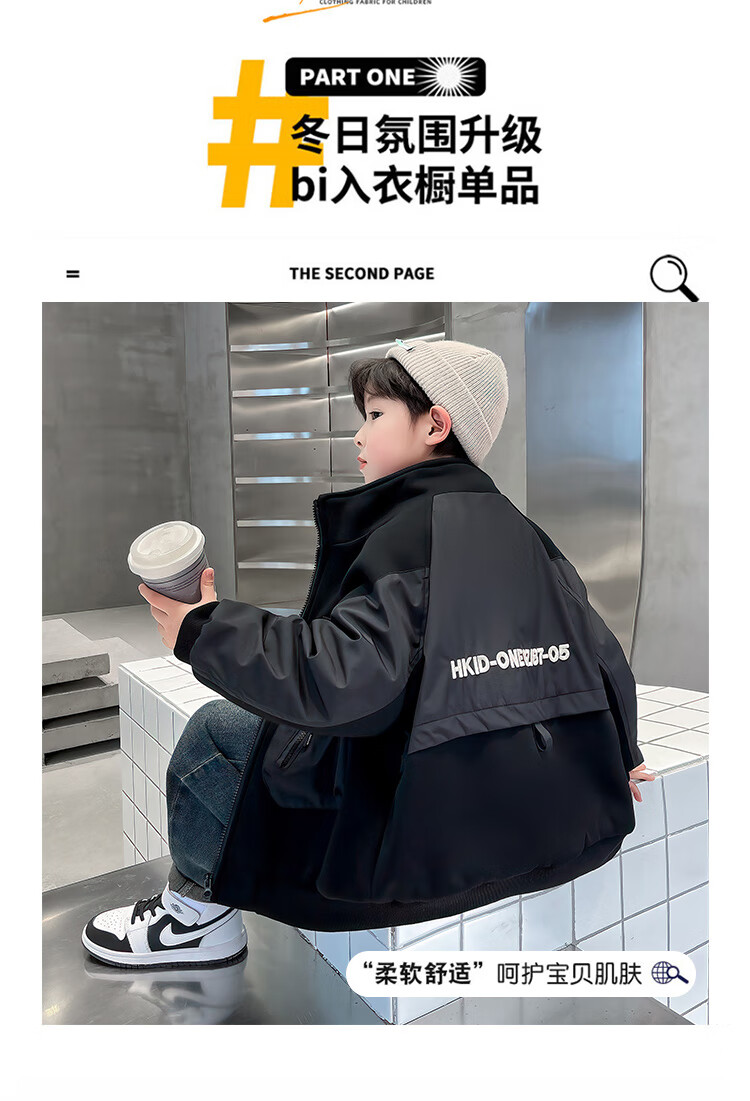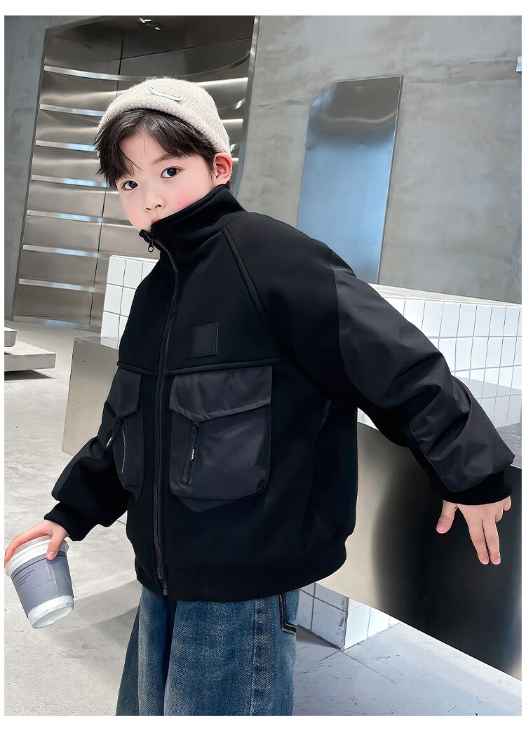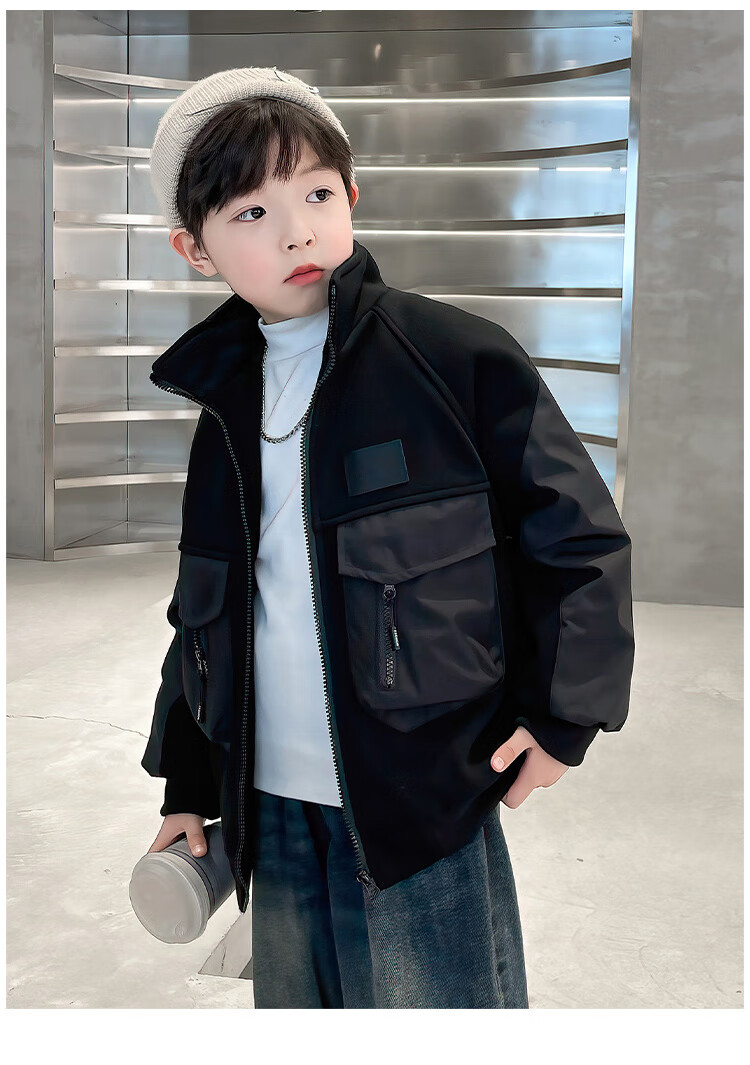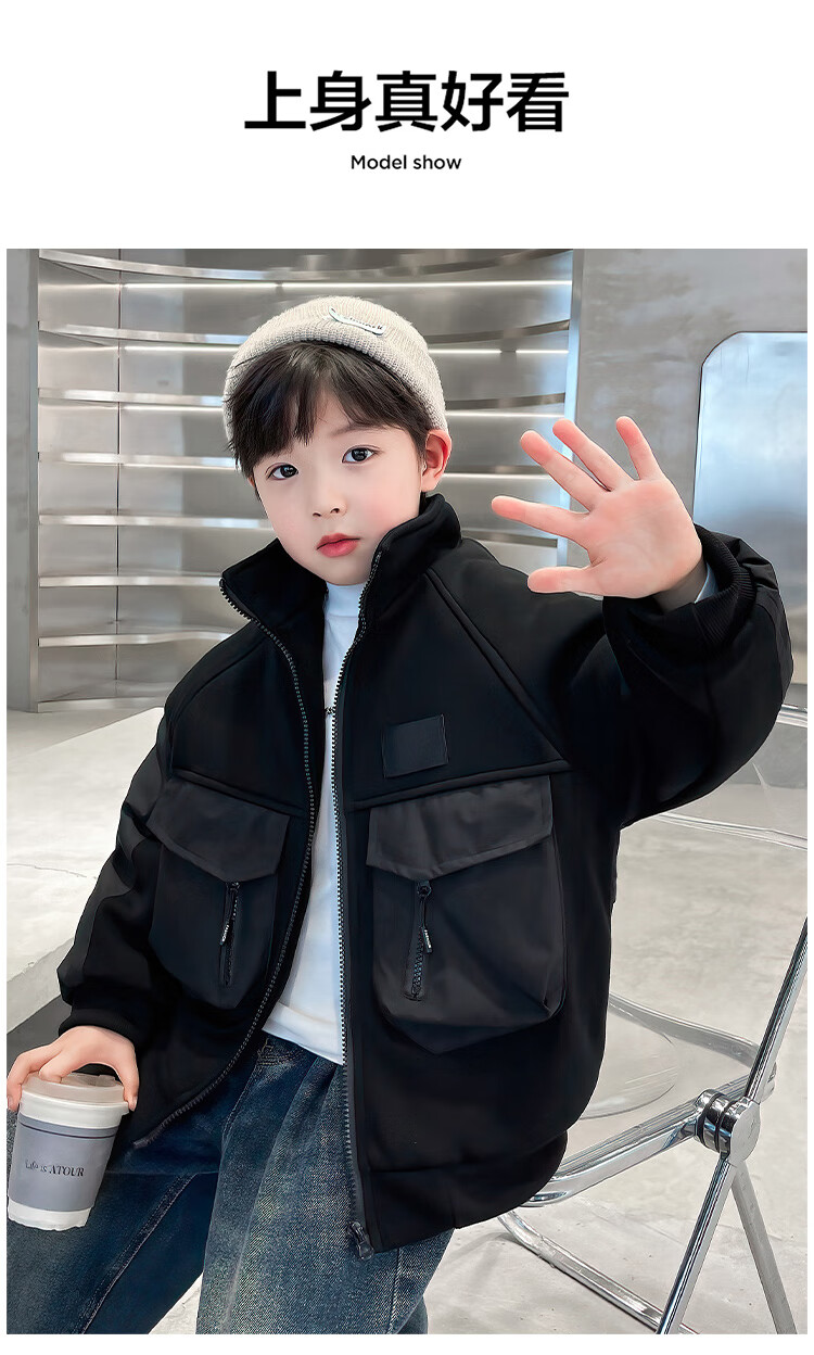 Katu Blue Cat Children's Wear Boys' Winter Jacket 2024 New Medium and Large Children's Thickened Autumn and Winter Boys' Street Ruff Handsome Cotton Clothes Trendy Black 150cm