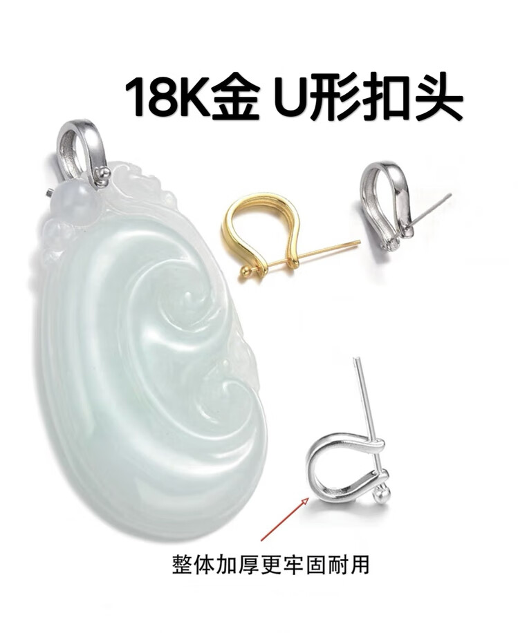Six pill U-shaped buckle 18K gold buckle head straight buckle jade pendant accessories multi-purpose buckle pair clip buckle jade jade buckle clip buckle accessories diy medium plain gold K gold