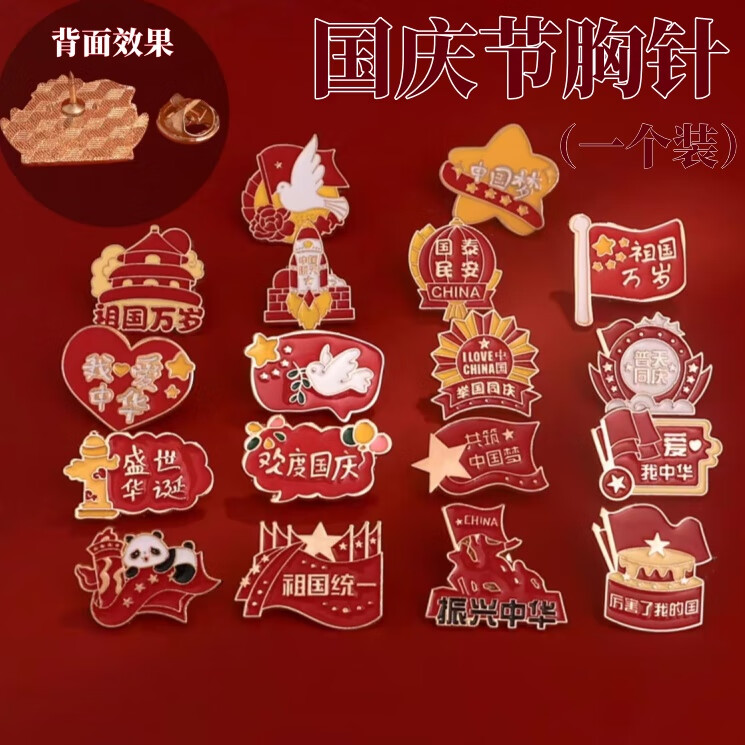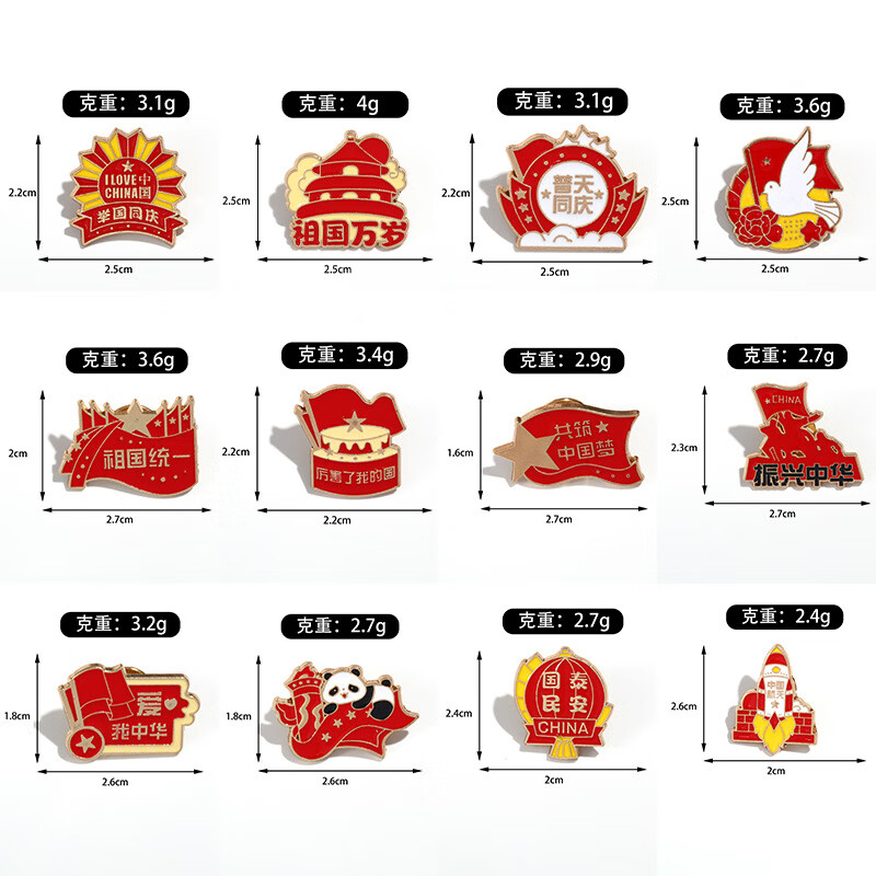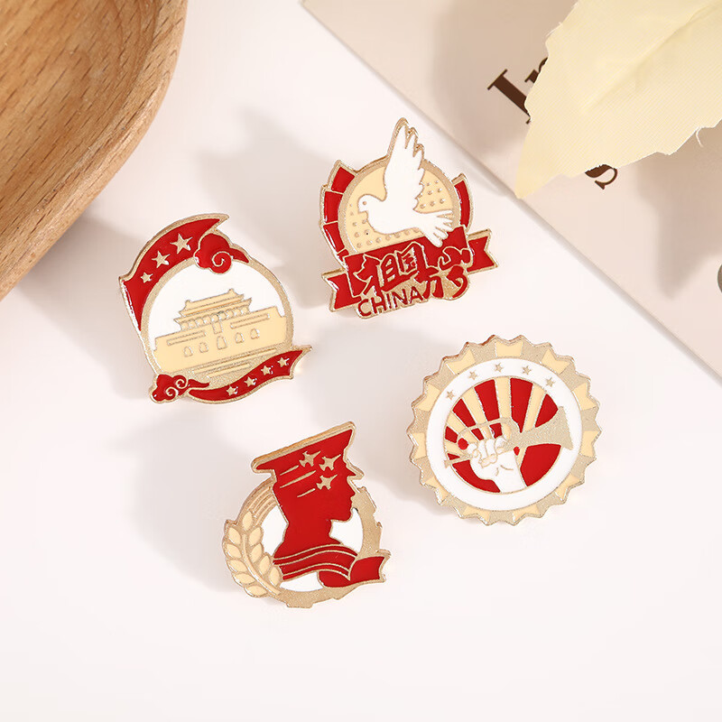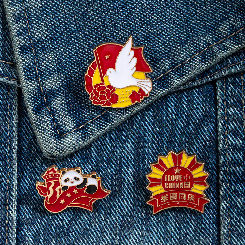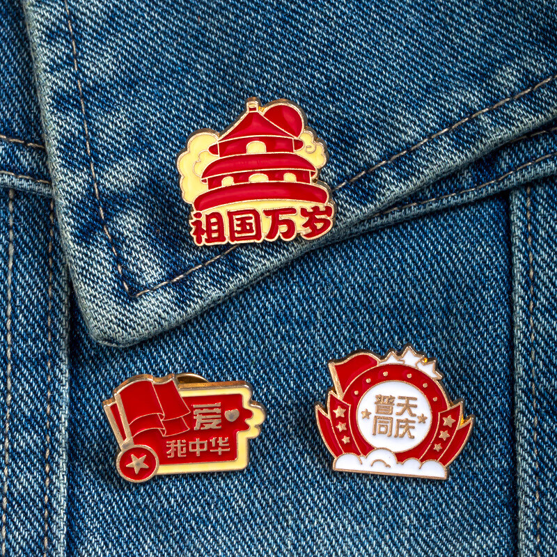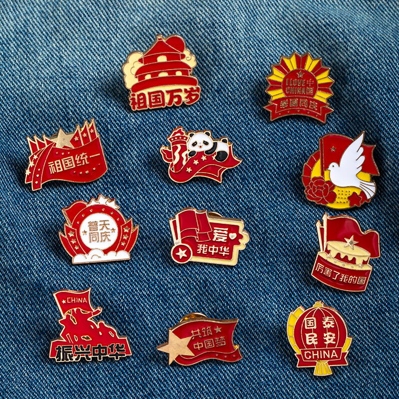 Muyu National Day brooch celebration badge small gift corsage metal badge ethnic style pin medal souvenir accessories I love China 3.2g one pack