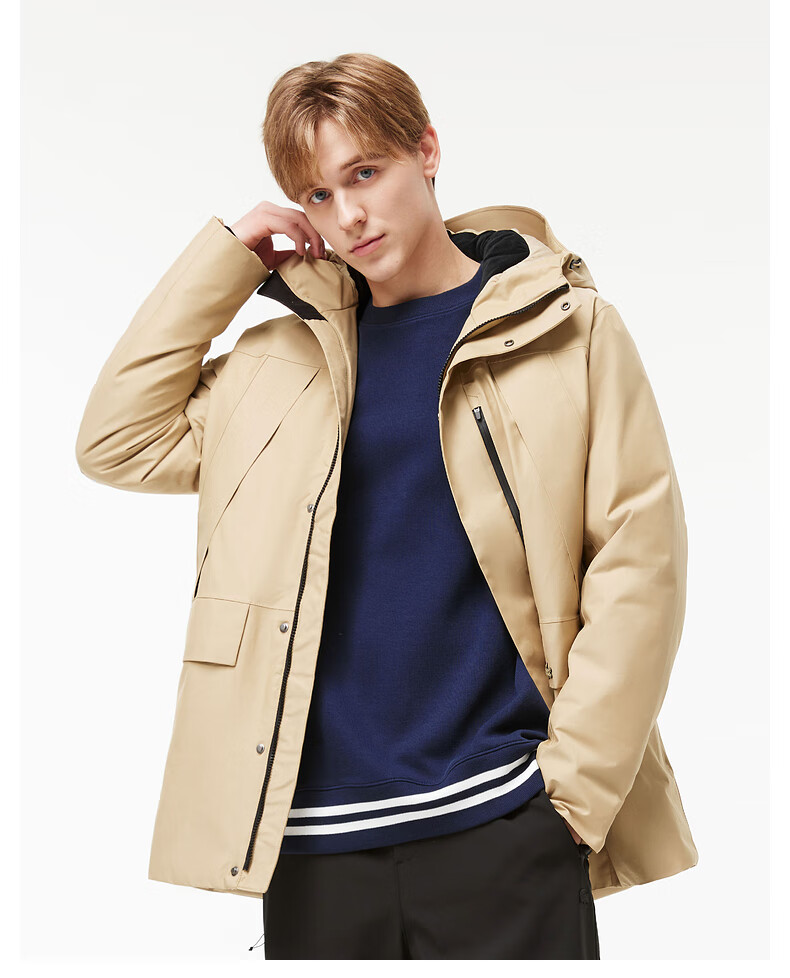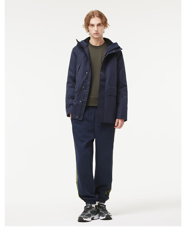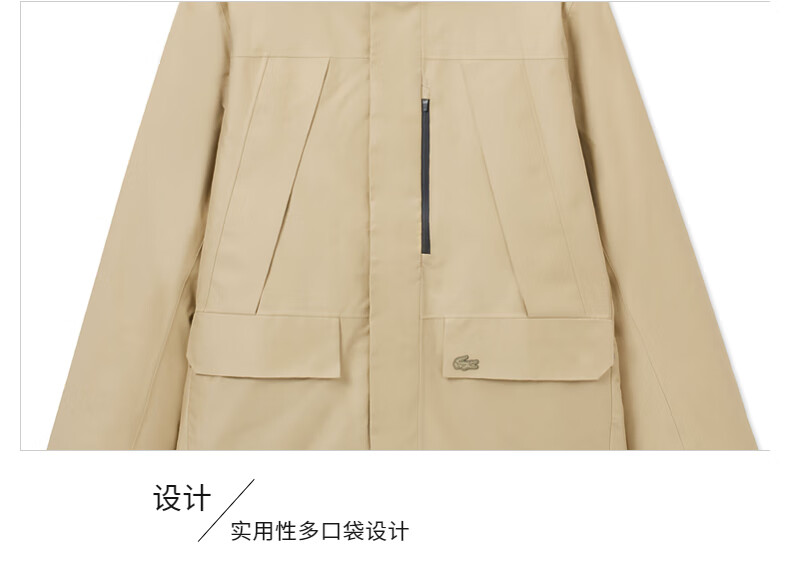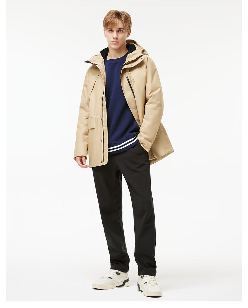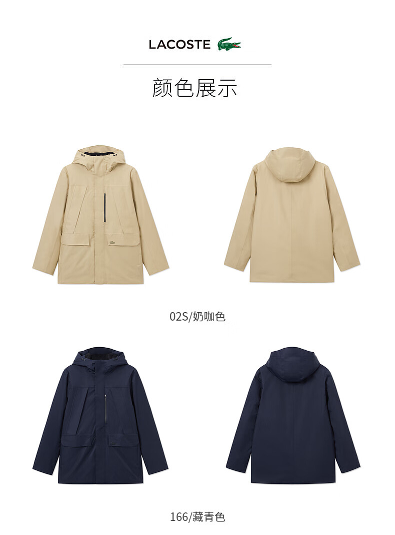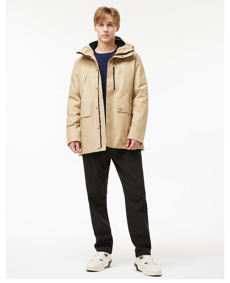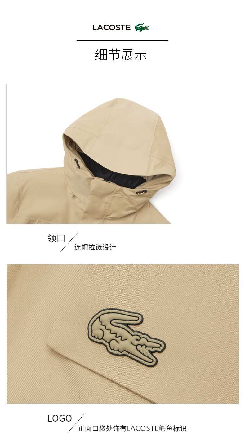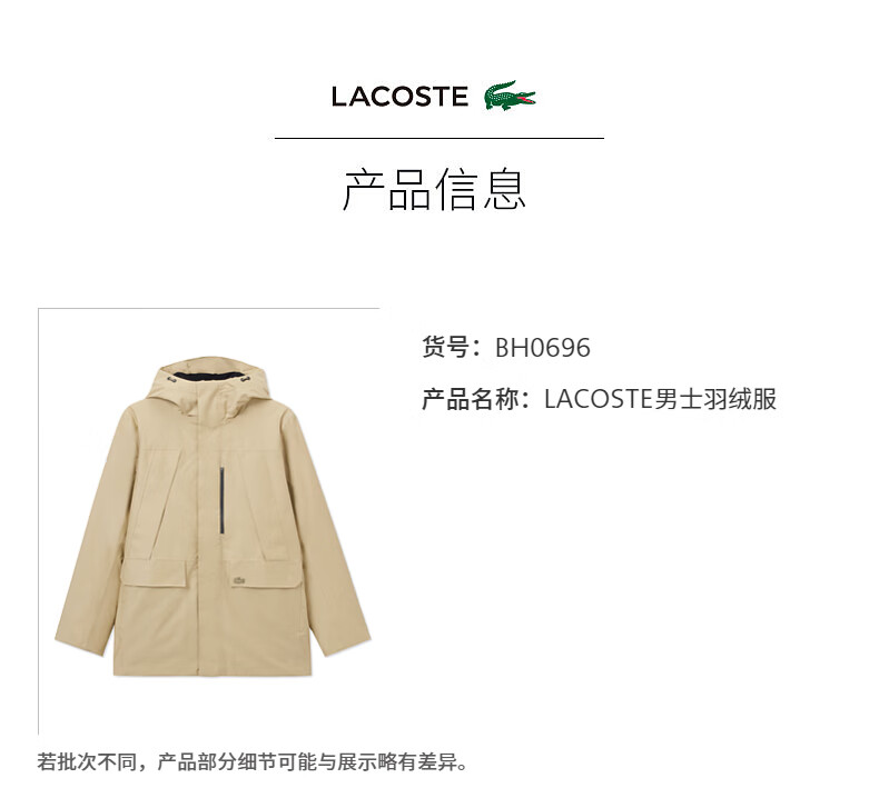 LACOSTE French crocodile men's simple casual solid color hooded goose down jacket | BH0696 02S/milk brown L 52