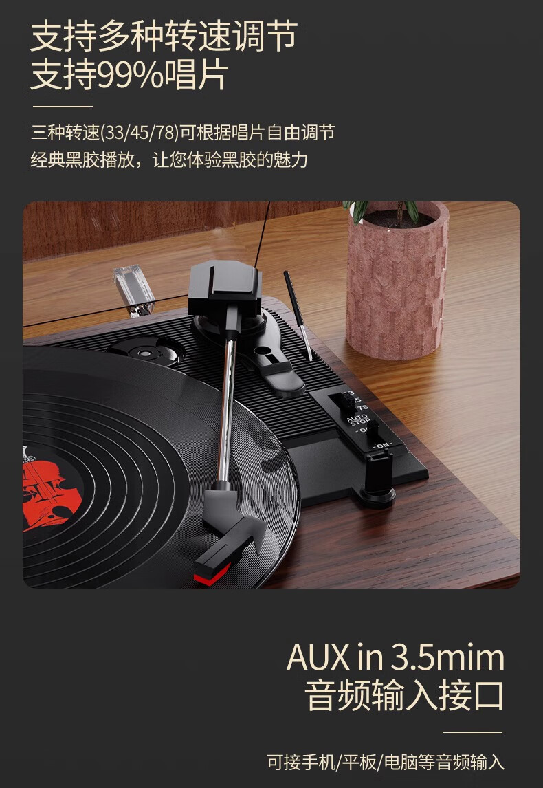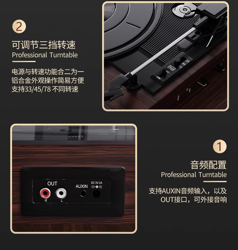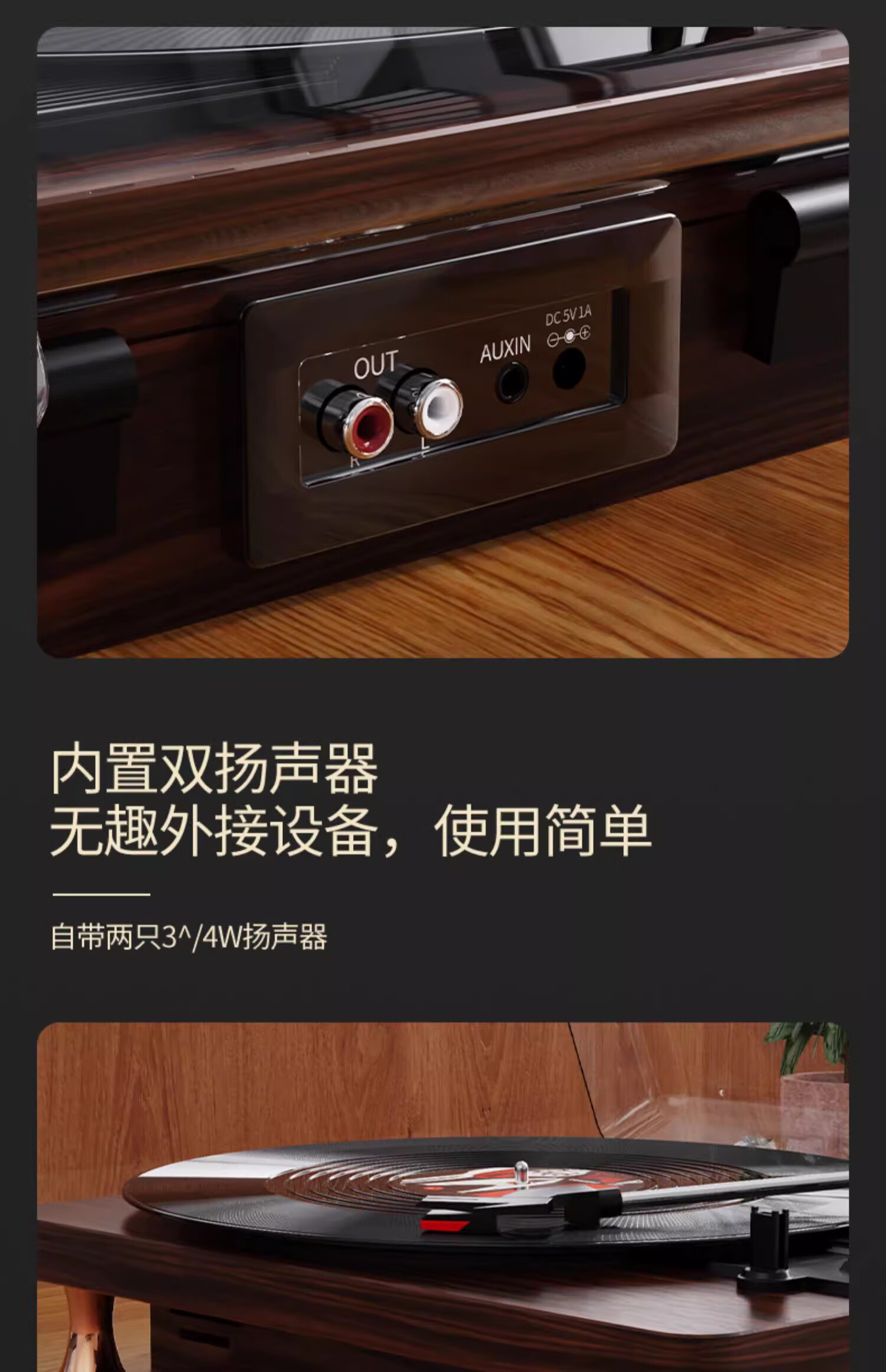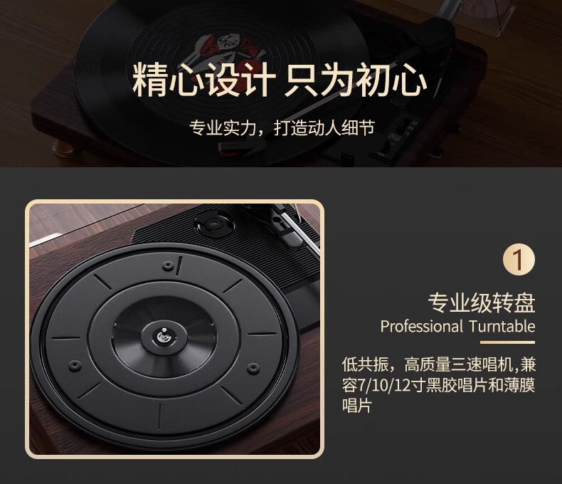 Chengdi Vinyl Record Player HIFI Retro Gramophone Bluetooth Speaker Living Room European Portable Record Player Audio LP Classic Color + Teresa Teng + Stylus Lifetime Warranty