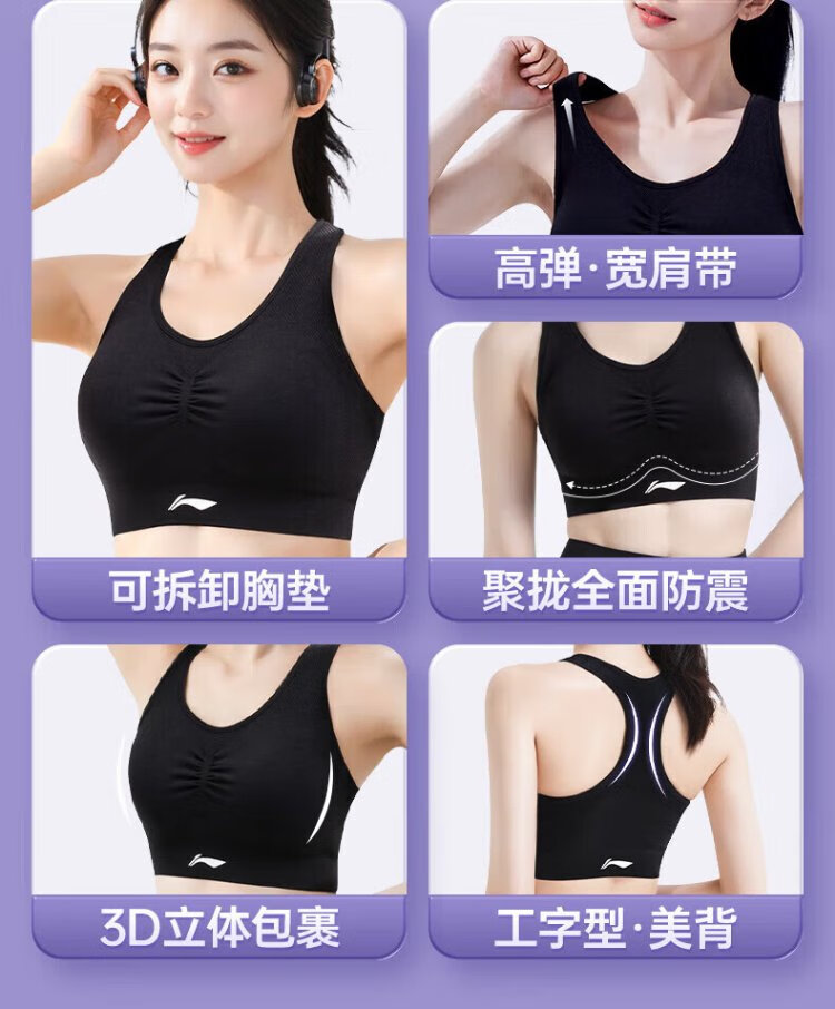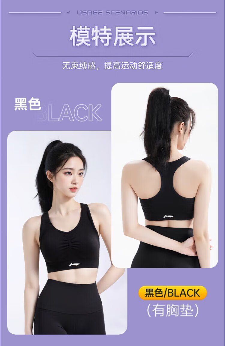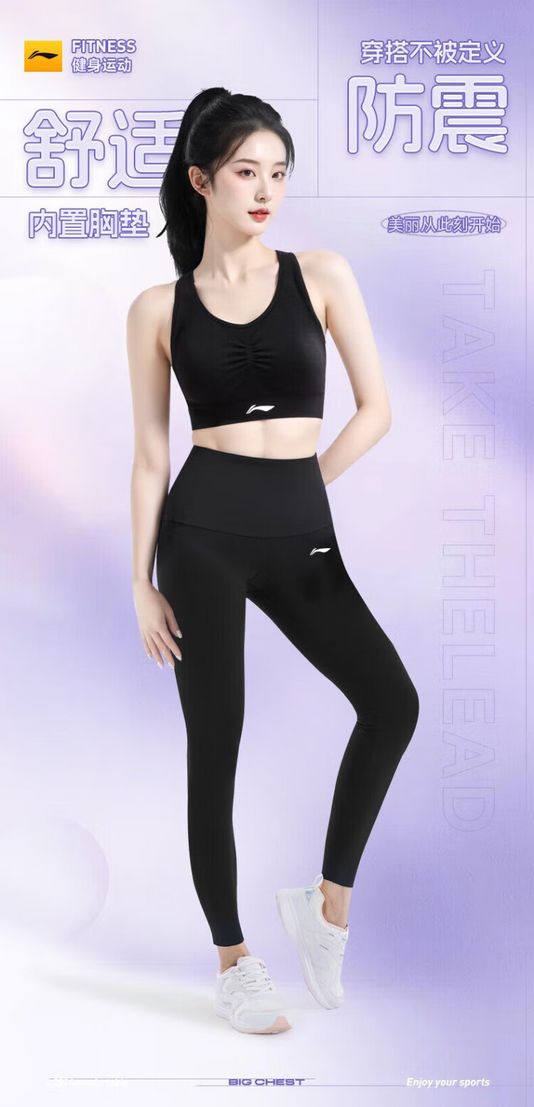Li-Ning Sports Suit Women's Yoga Fitness Wear Yoga Suit Sports Running Quick-Drying Clothes Tight-fitting Pilates Workout Suit Classic Black Suit I-shaped Back L