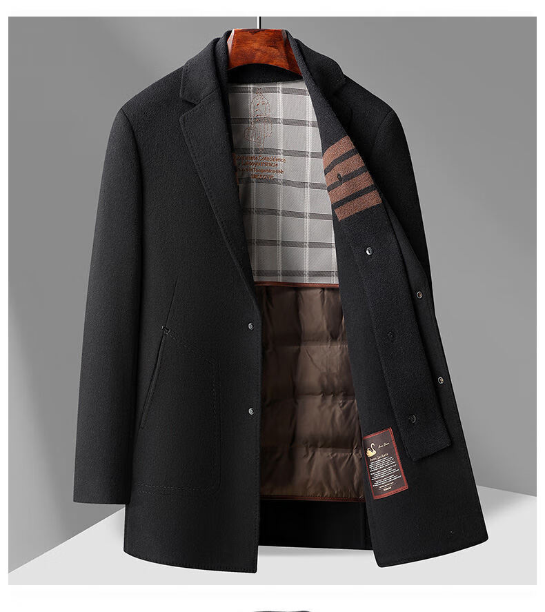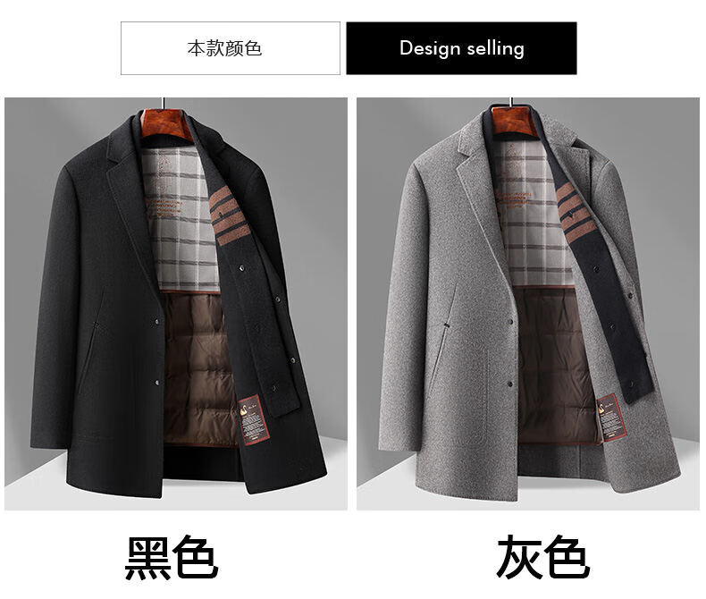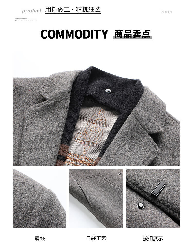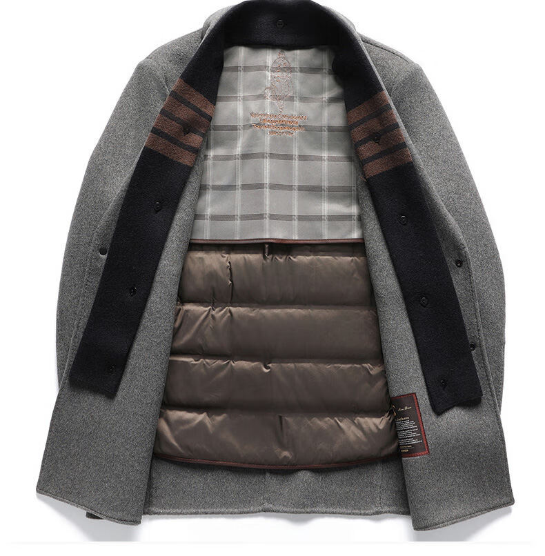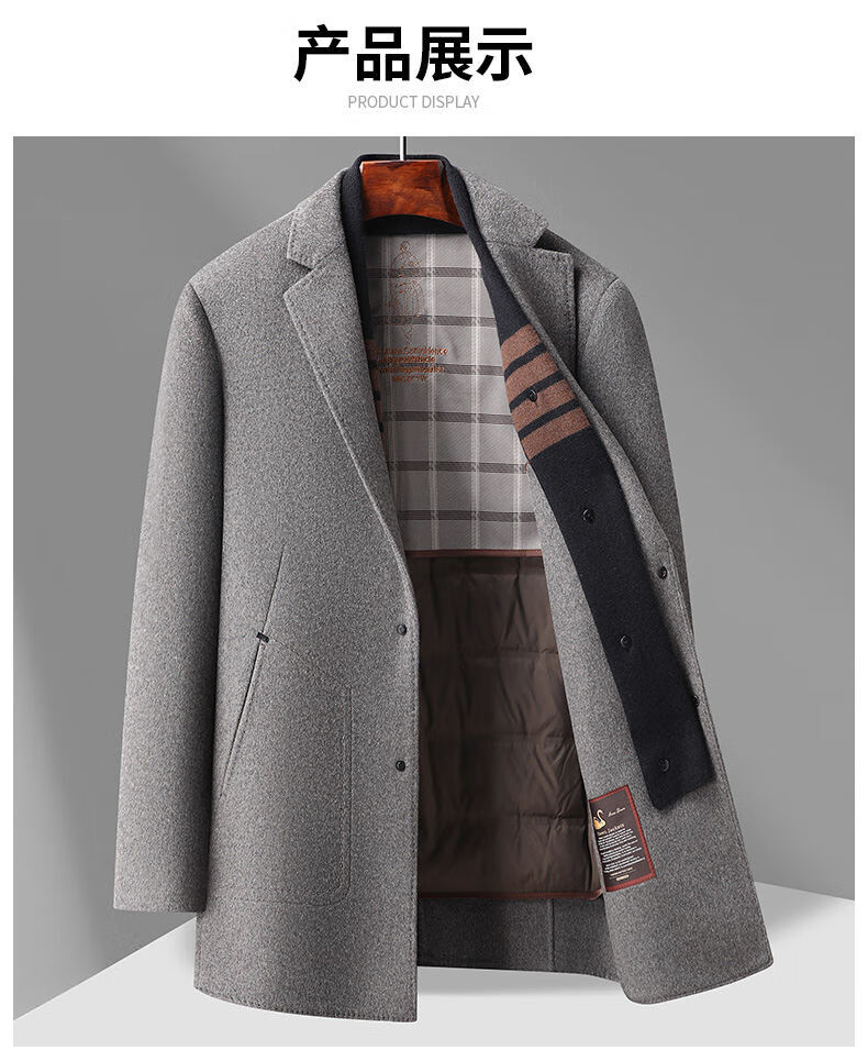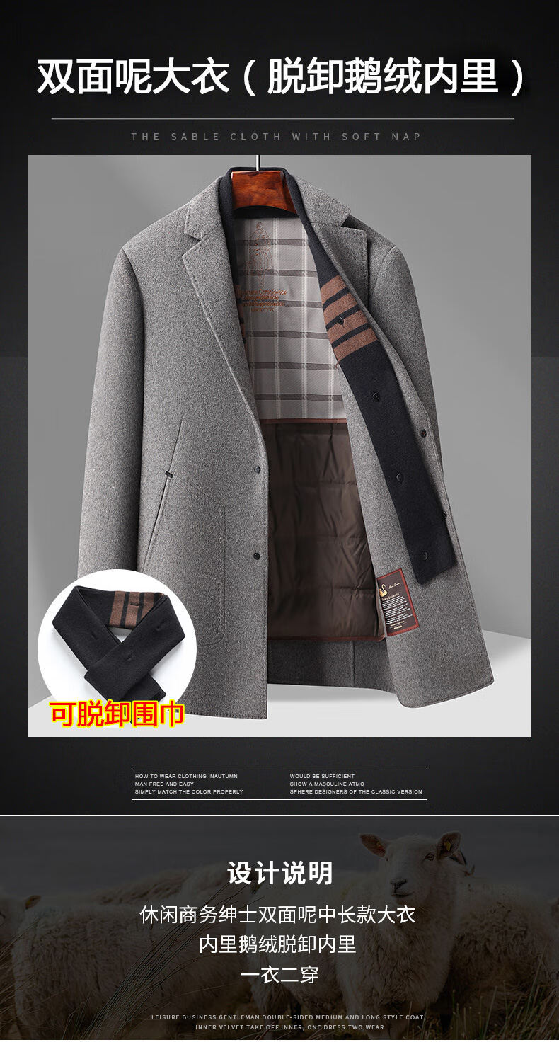 皮尔卡丹(pierre cardin)双面呢子含羊毛大衣男士中长款秋冬季商务休闲中年内胆加厚外套男 灰色 XL /180
