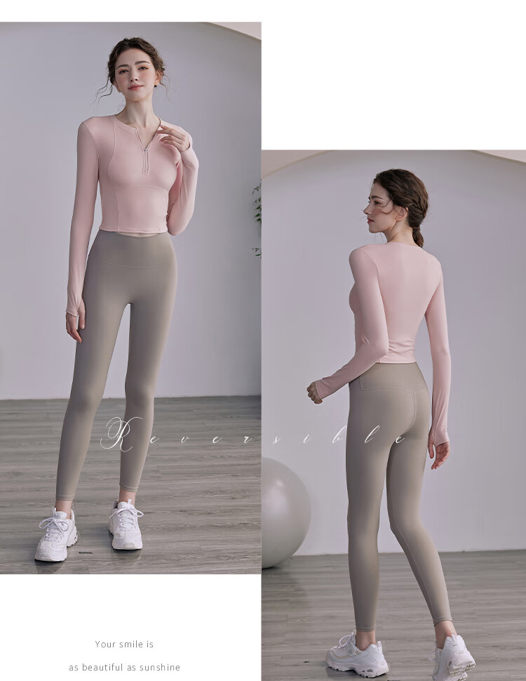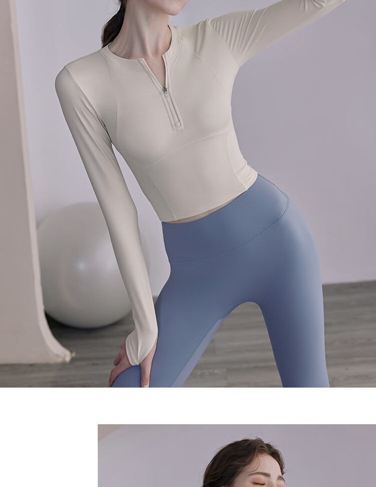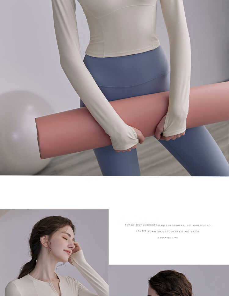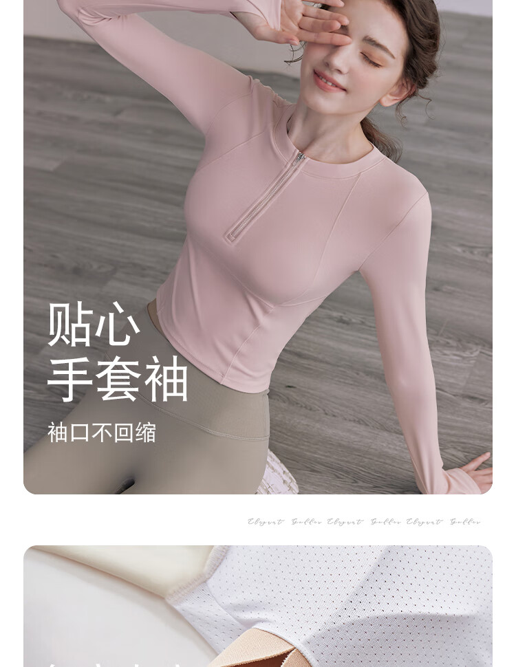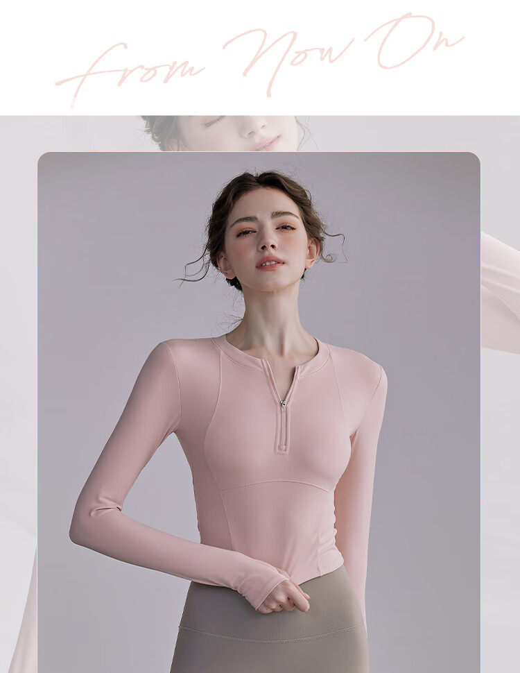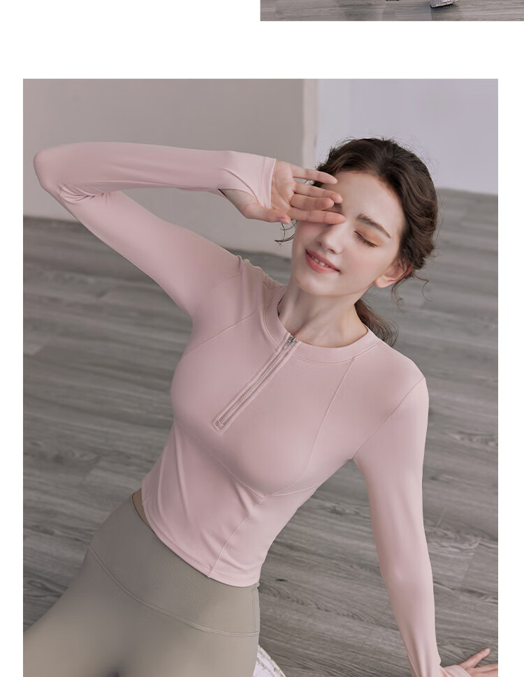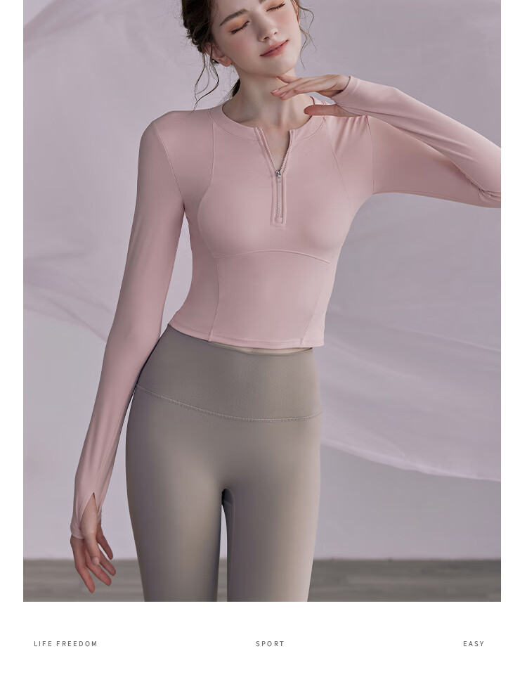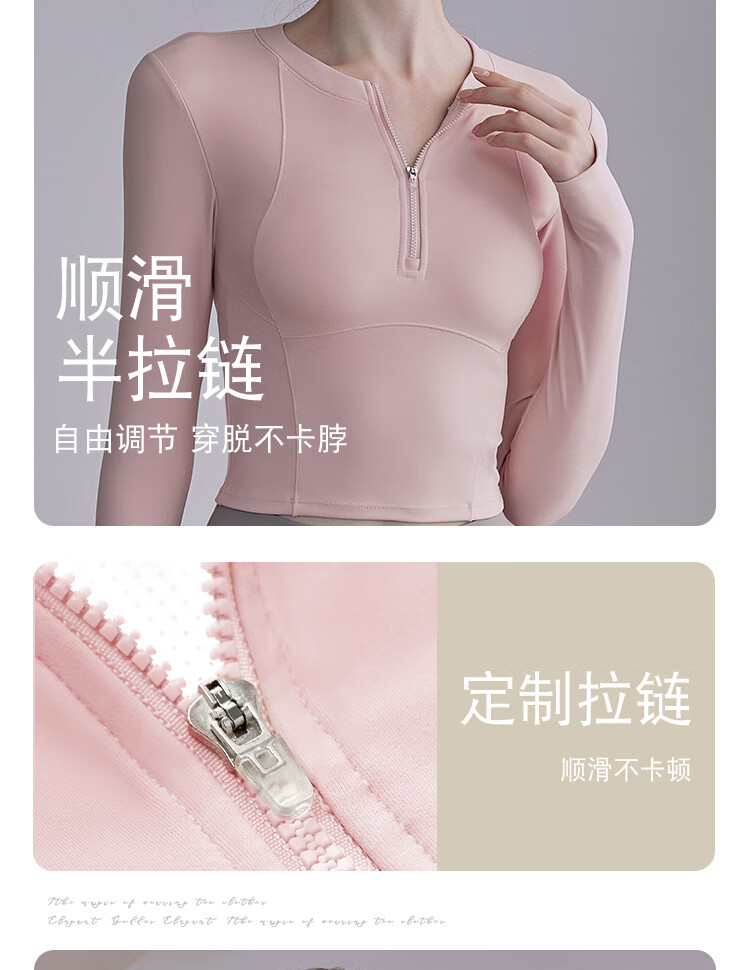 LULUUVTTOH2025 Autumn and Winter Half-Zip Yoga Clothes Tops for Women with Breast Pads New Fitness Clothes Sports Pilates Suit Long Sleeves Cherry Blossom Pink Straight Shoulder Slimming Comes with Breast Pads M