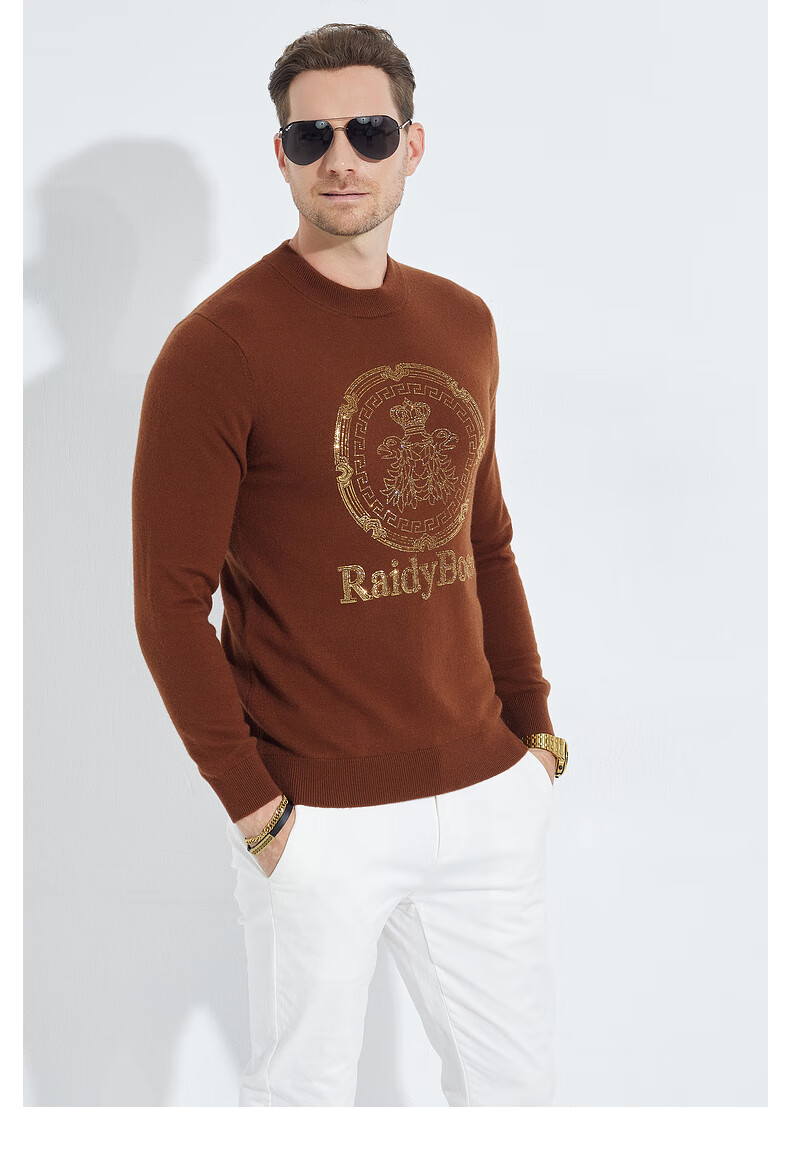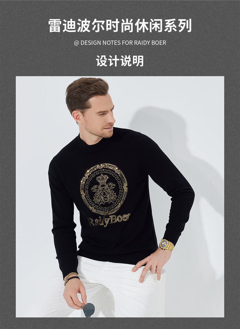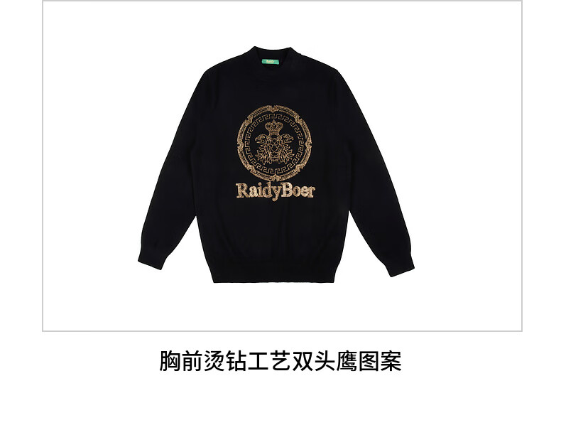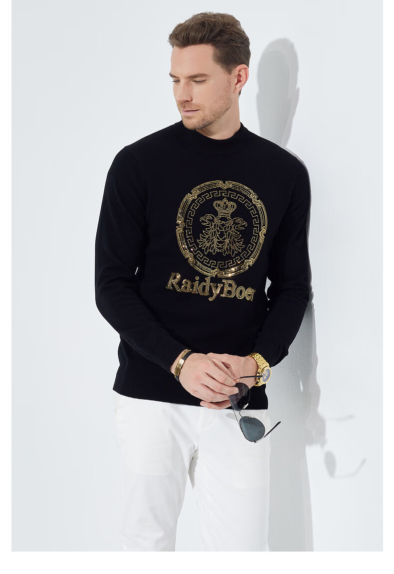 Raidy Boer/Raidi Boer 100% sheep wool men's hot diamond double-headed eagle wool sweater 5074 black 180/52/XL
