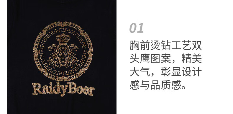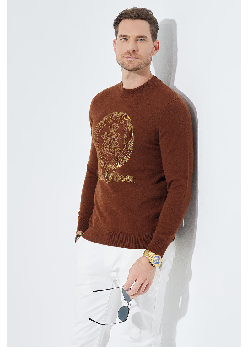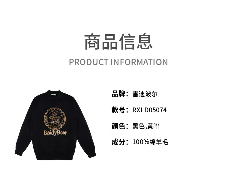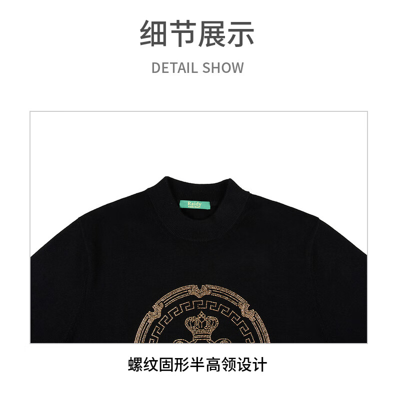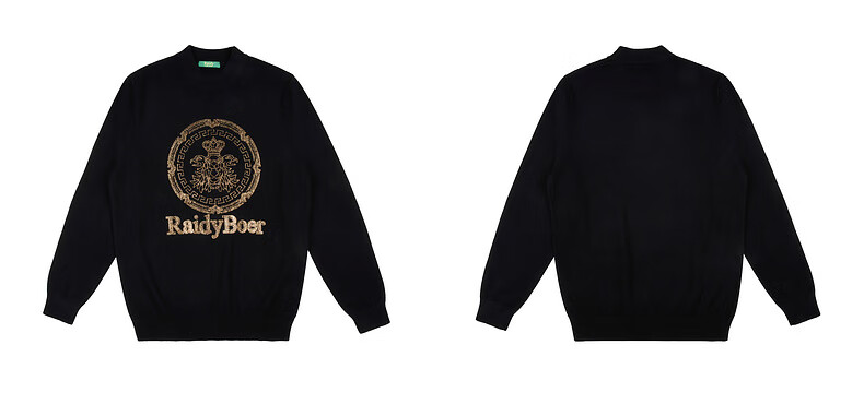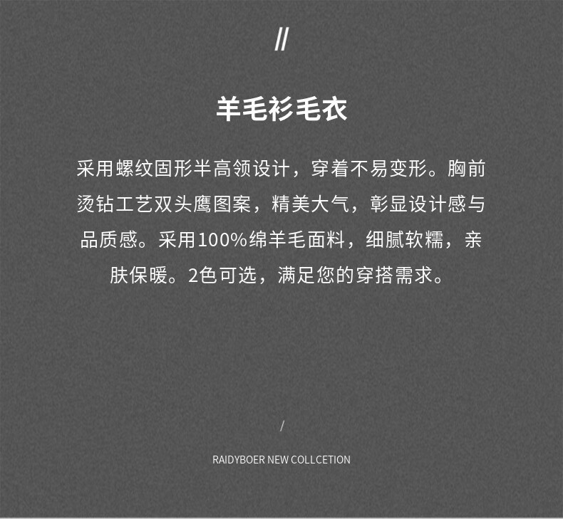 Raidy Boer/Raidi Boer 100% sheep wool men's hot diamond double-headed eagle wool sweater 5074 black 180/52/XL