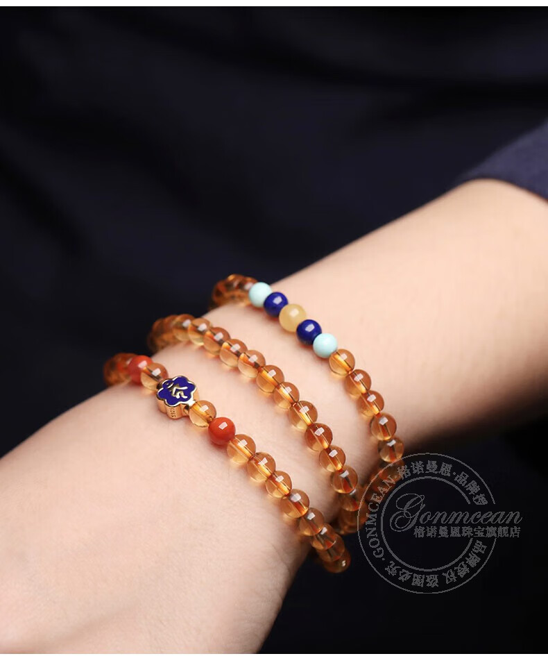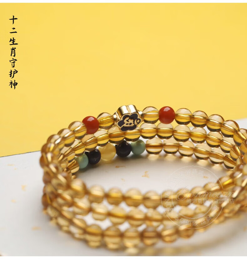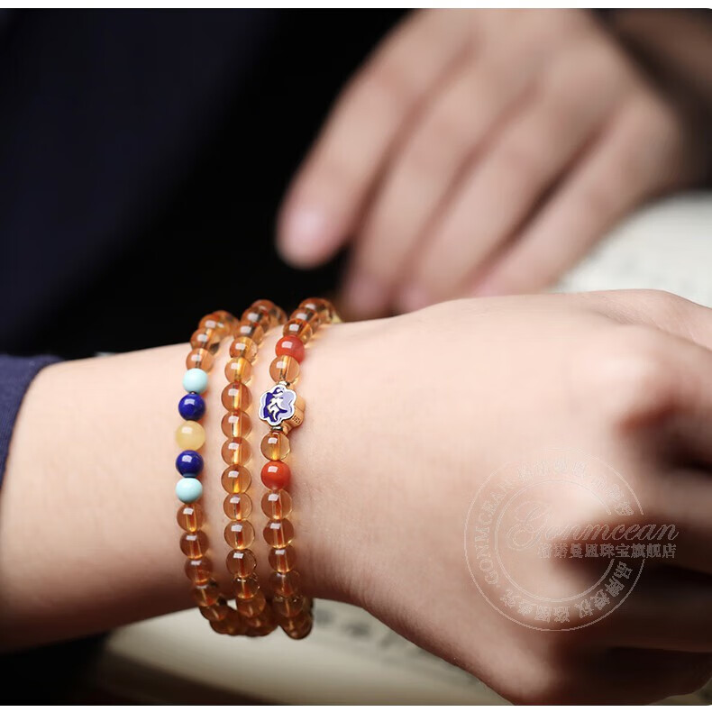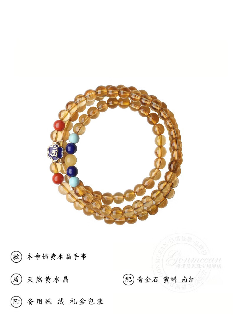 Genomanman Natural Brazilian Citrine Bracelet Multi-circle Women's Transfer Beads 108 Buddha Beads Bracelet Zodiac Rat Thousand-Hand Guanyin Three-circle Beads 6mm