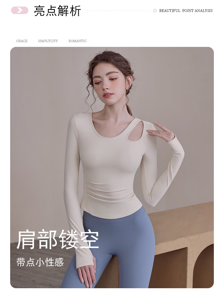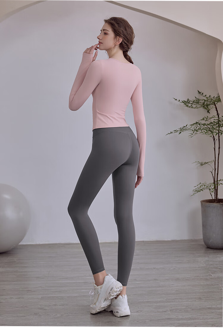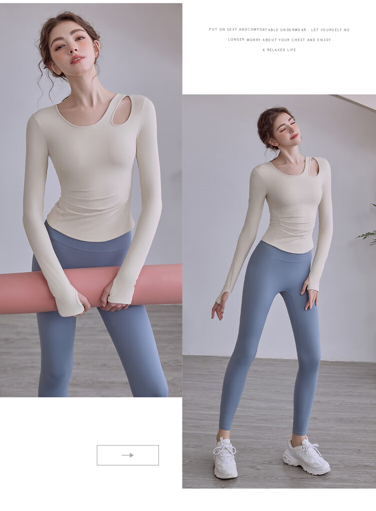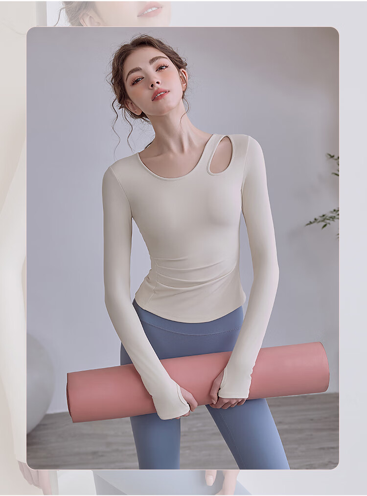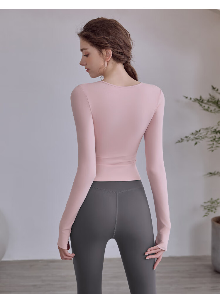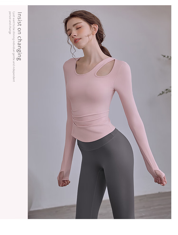 LULUUVTTOH new style yoga clothing tops with chest pads for women, autumn and winter hollow slimming fitness clothing, sports Pilates suit, long sleeves, cherry blossom pink long sleeves M