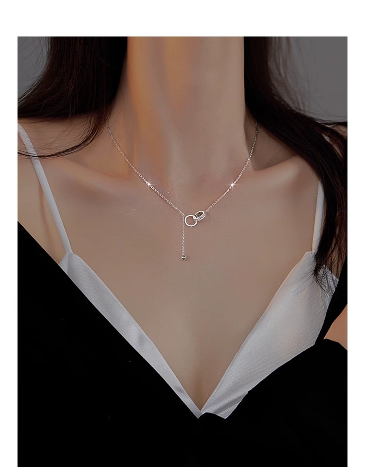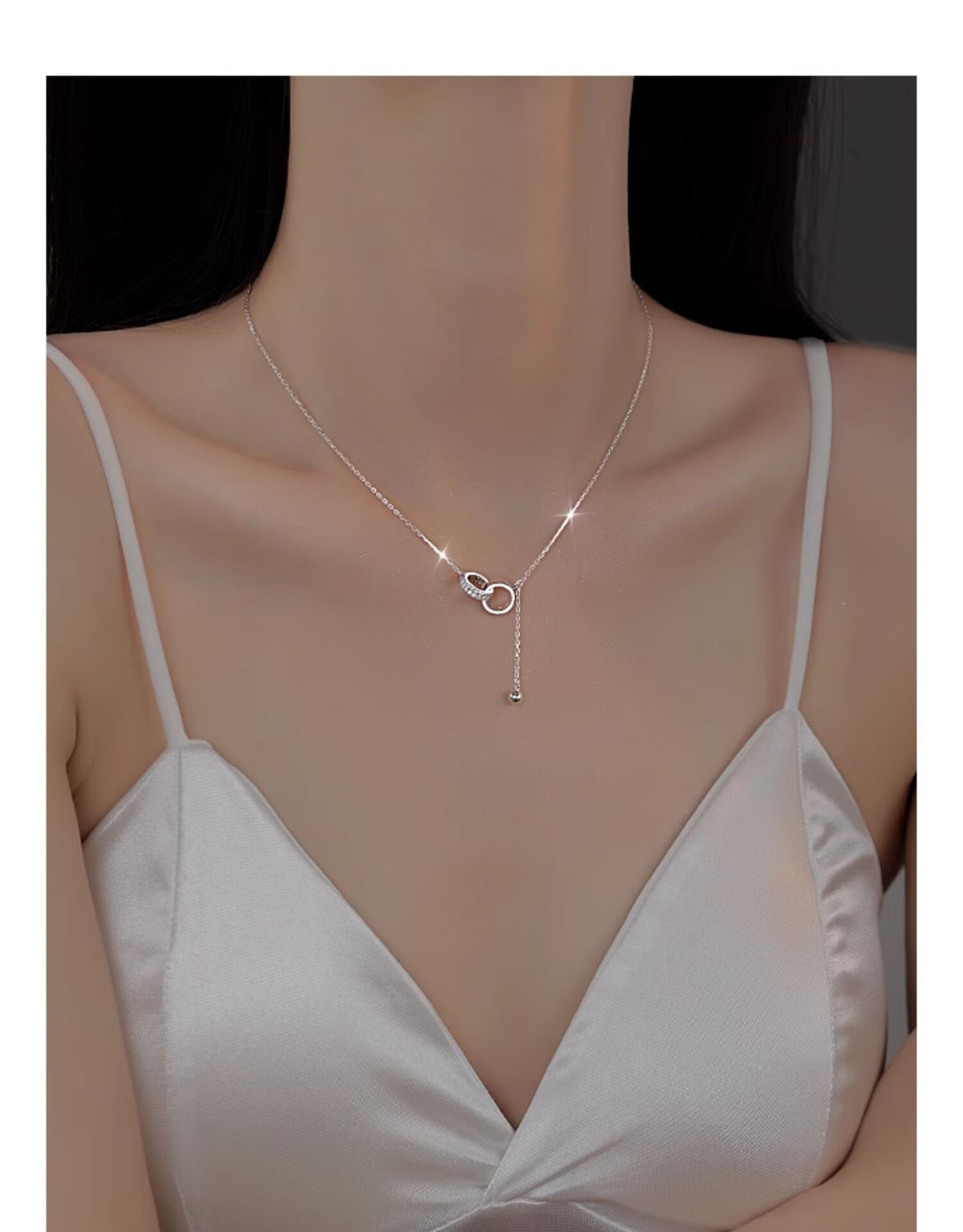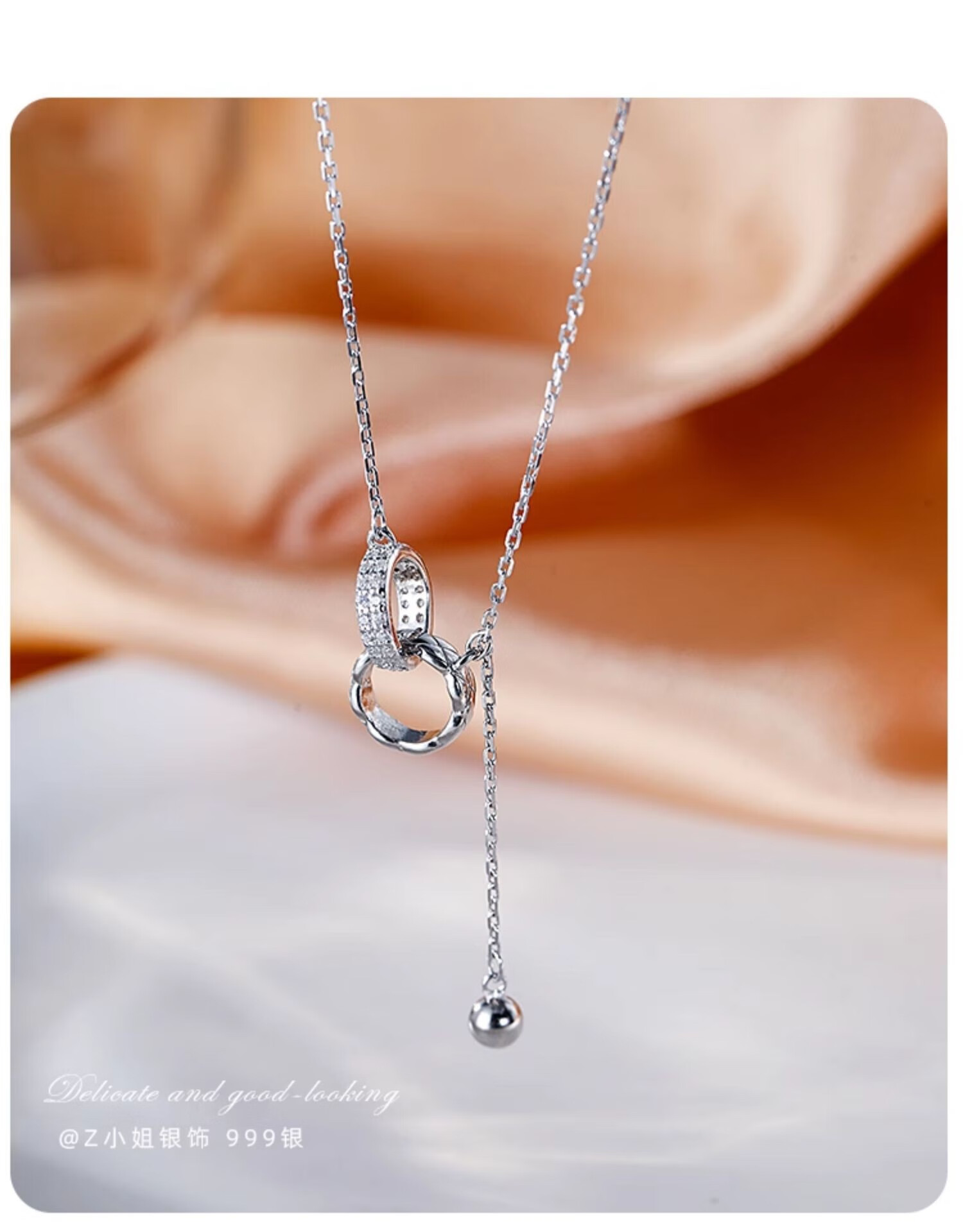 BOMP Shijiahua Roski zirconium foot silver interlocking tassel necklace women's sterling silver clavicle chain light luxury 2024 new style (999 pure silver) interlocking tassel necklace