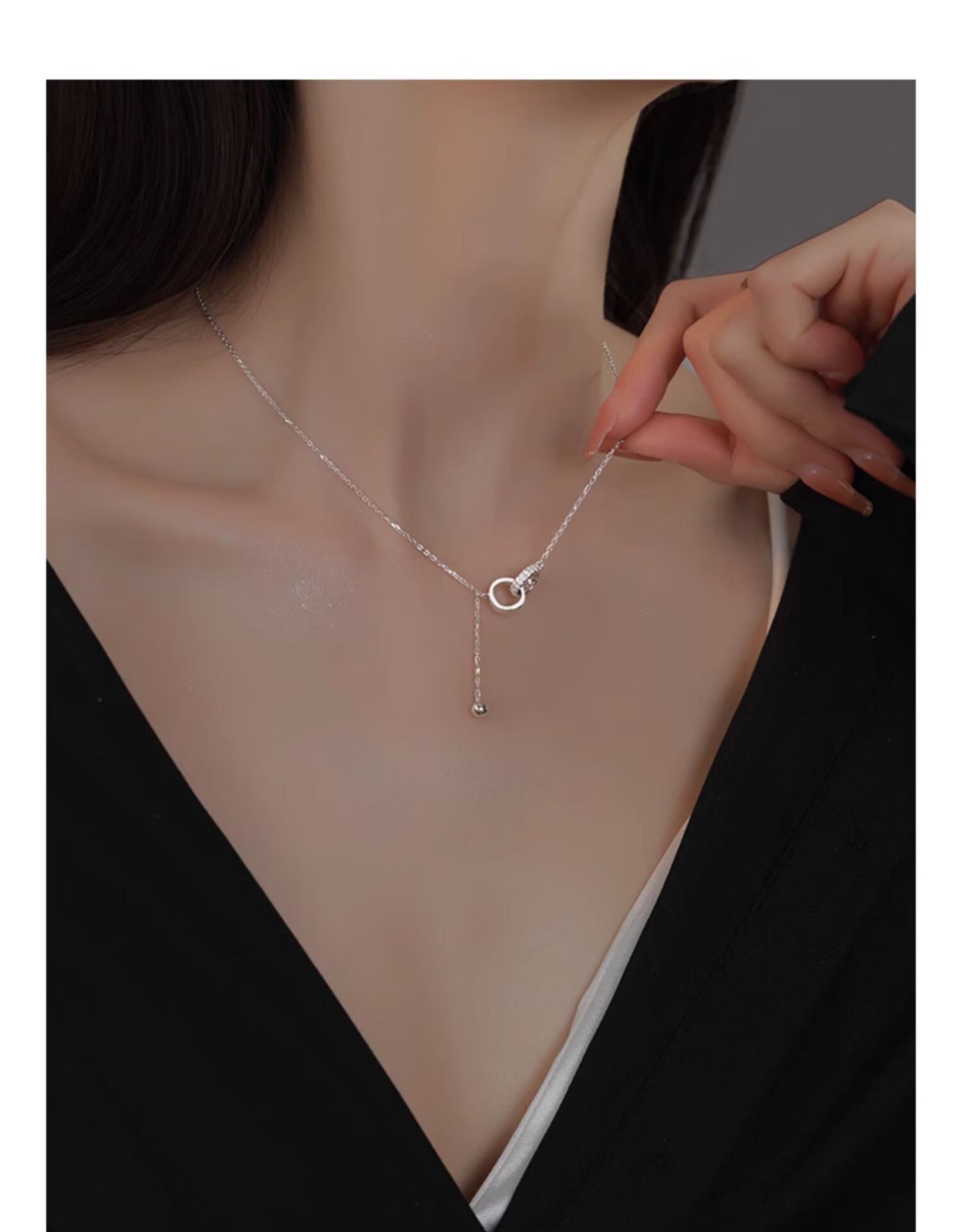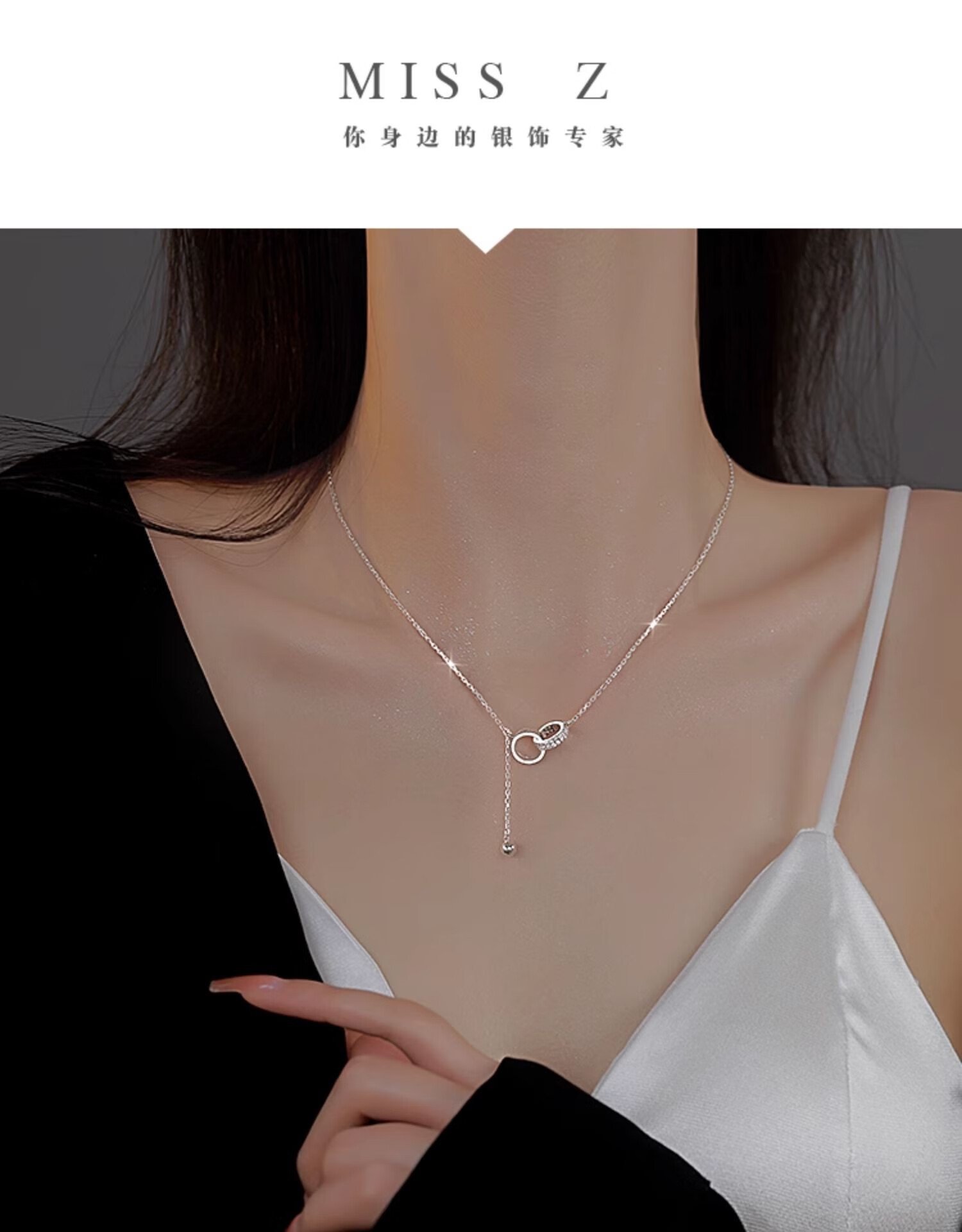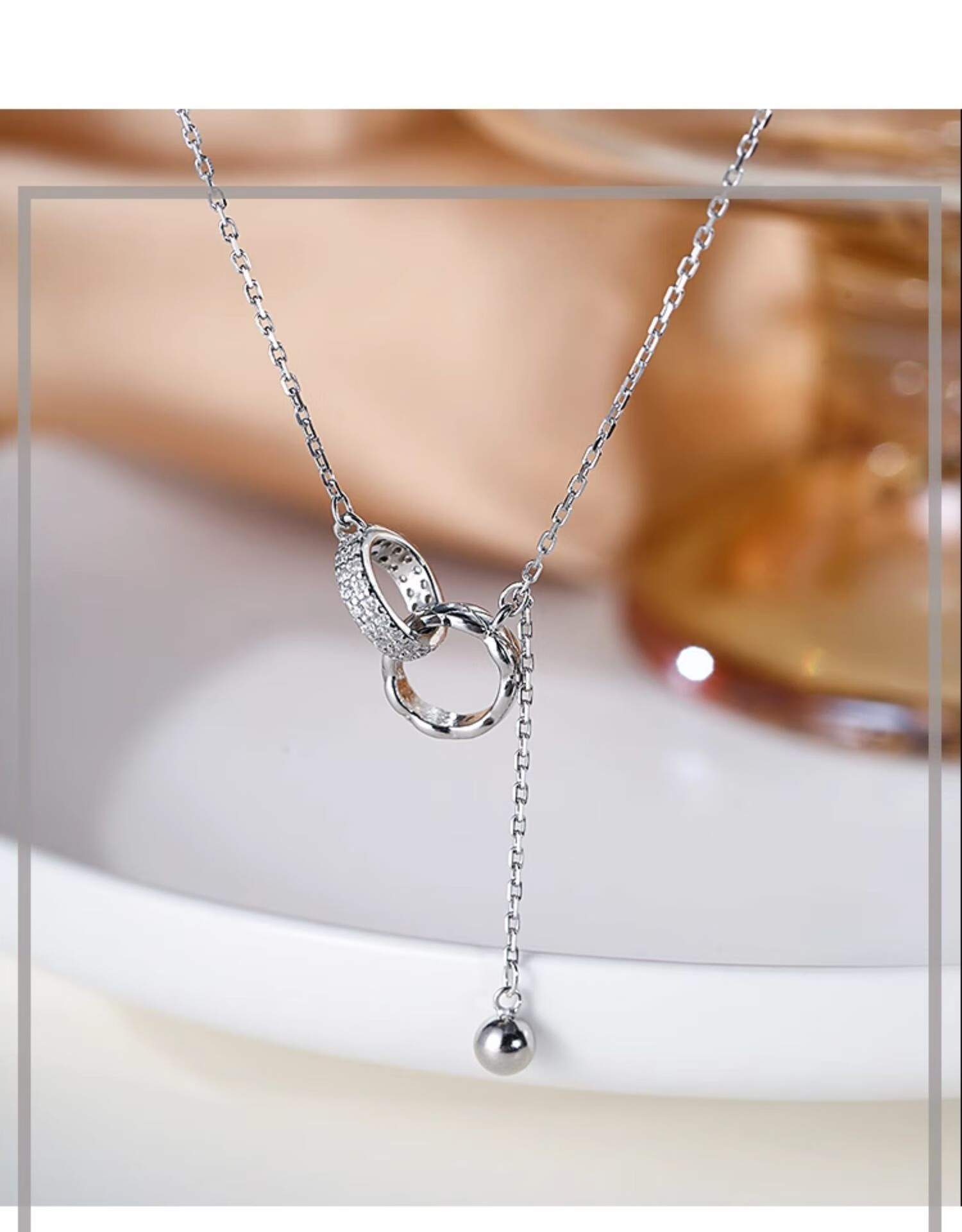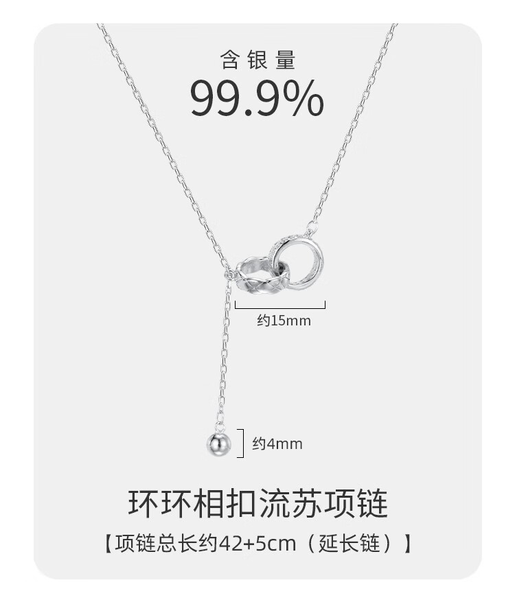 BOMP Shijiahua Roski zirconium foot silver interlocking tassel necklace women's sterling silver clavicle chain light luxury 2024 new style (999 pure silver) interlocking tassel necklace