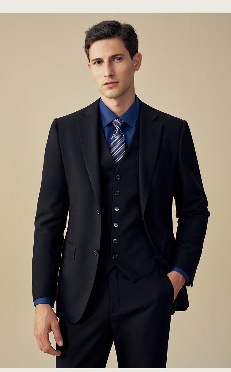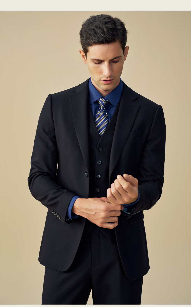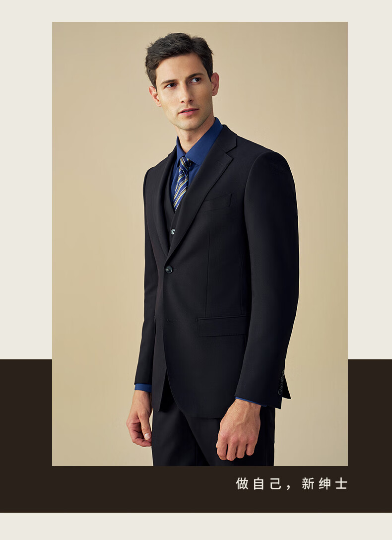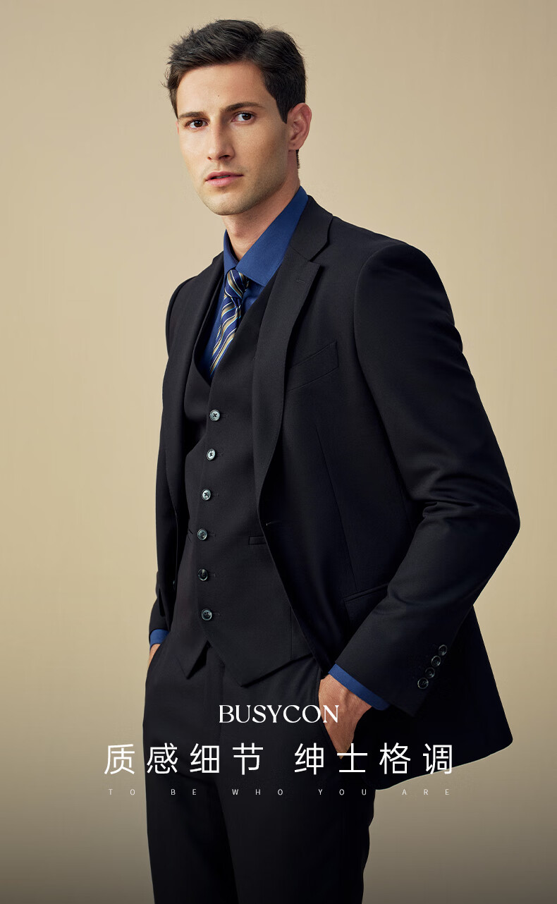 BUSYCON black suit men's suit groom wedding dress men's wedding suit high-end business commuting casual three-piece suit crystal black (top + vest + pants) 50 reference weight 135-145Jin Jin is equal to 0.5 kg
