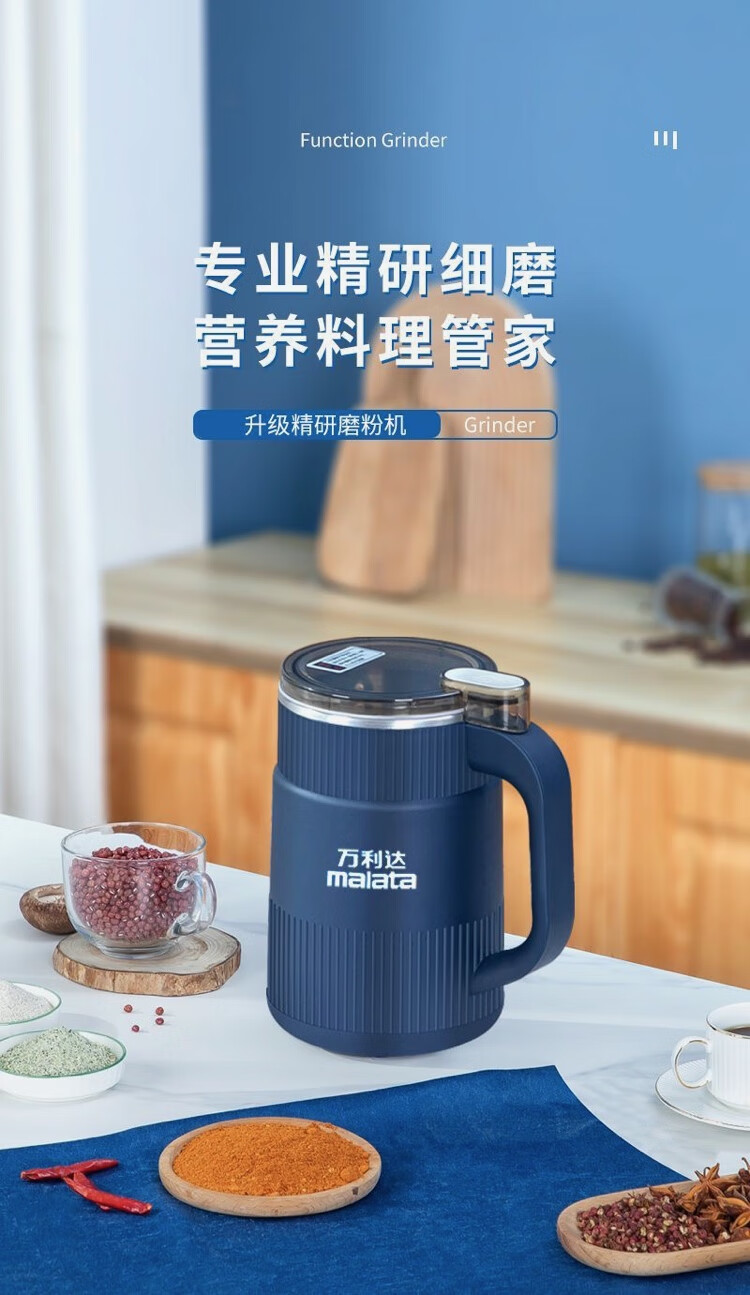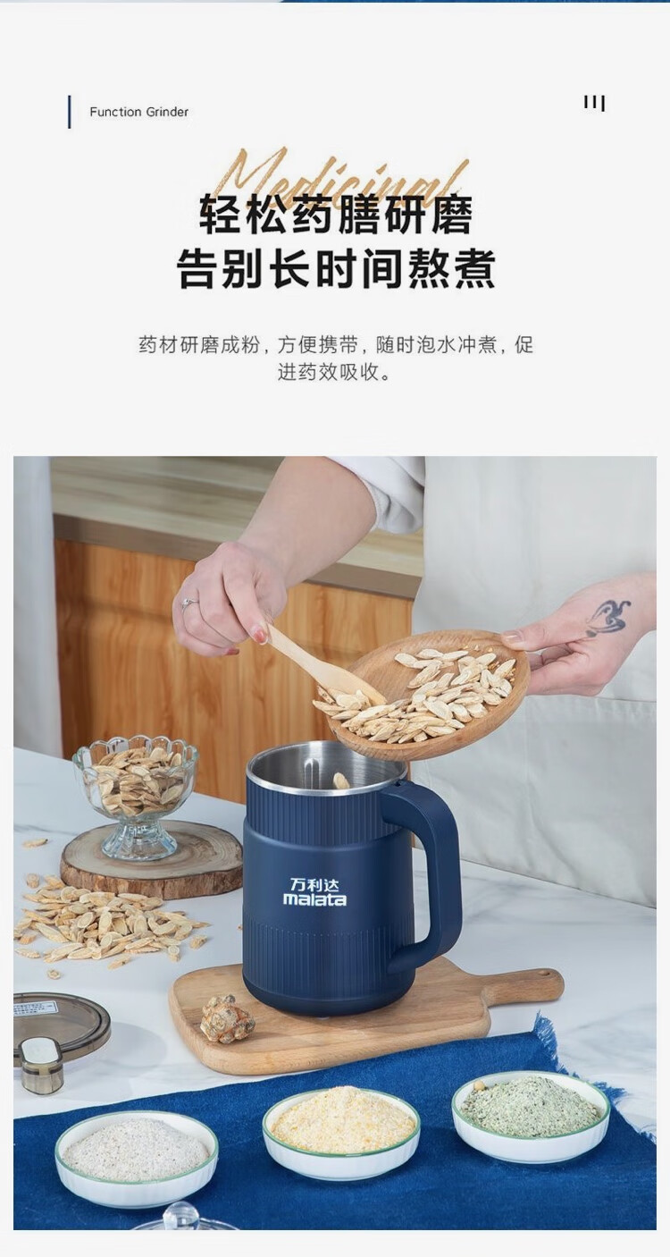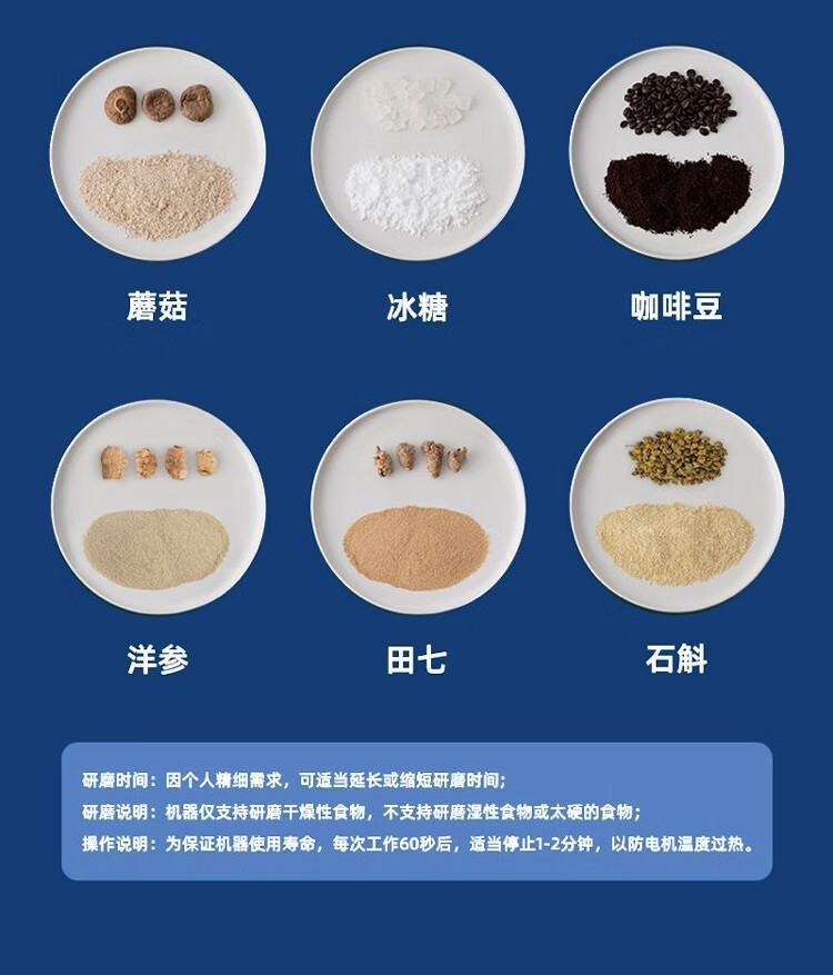 Wanlida electric grinder household small grinder traditional Chinese medicine grinder grinder grinder grain breaking machine blue stainless steel knife (1 set of knives) comes with spoon + brush