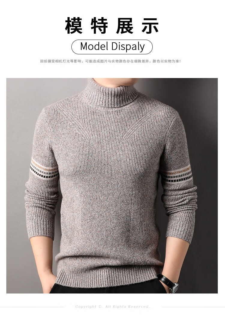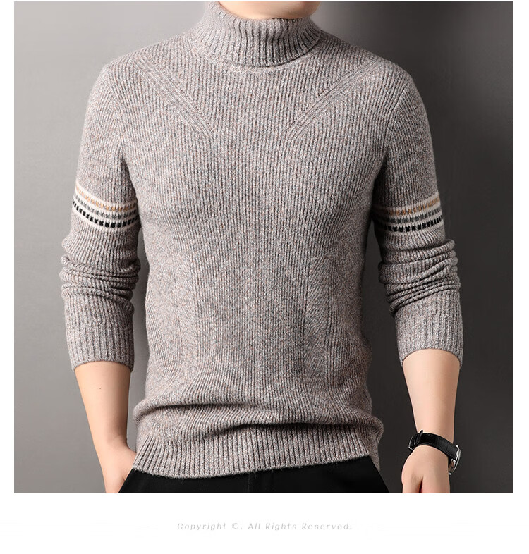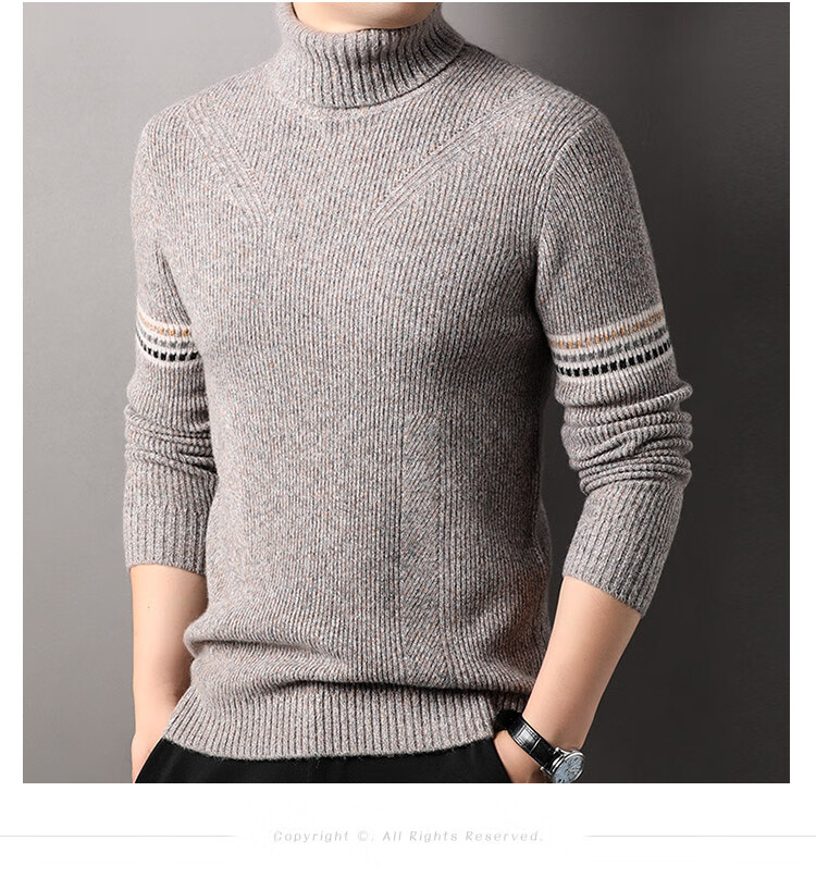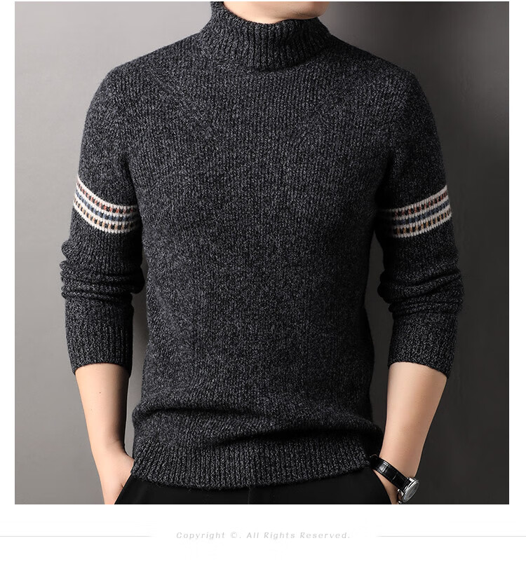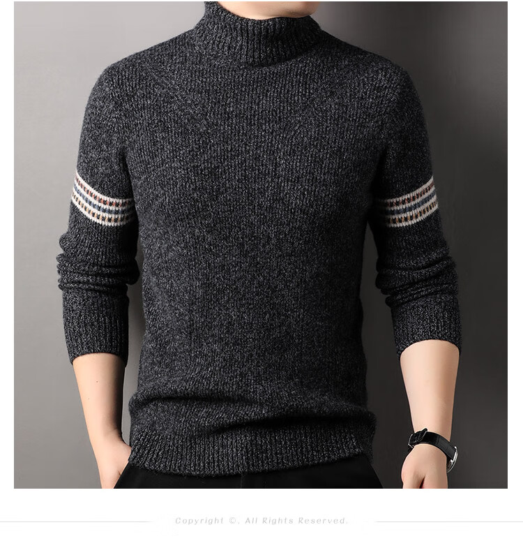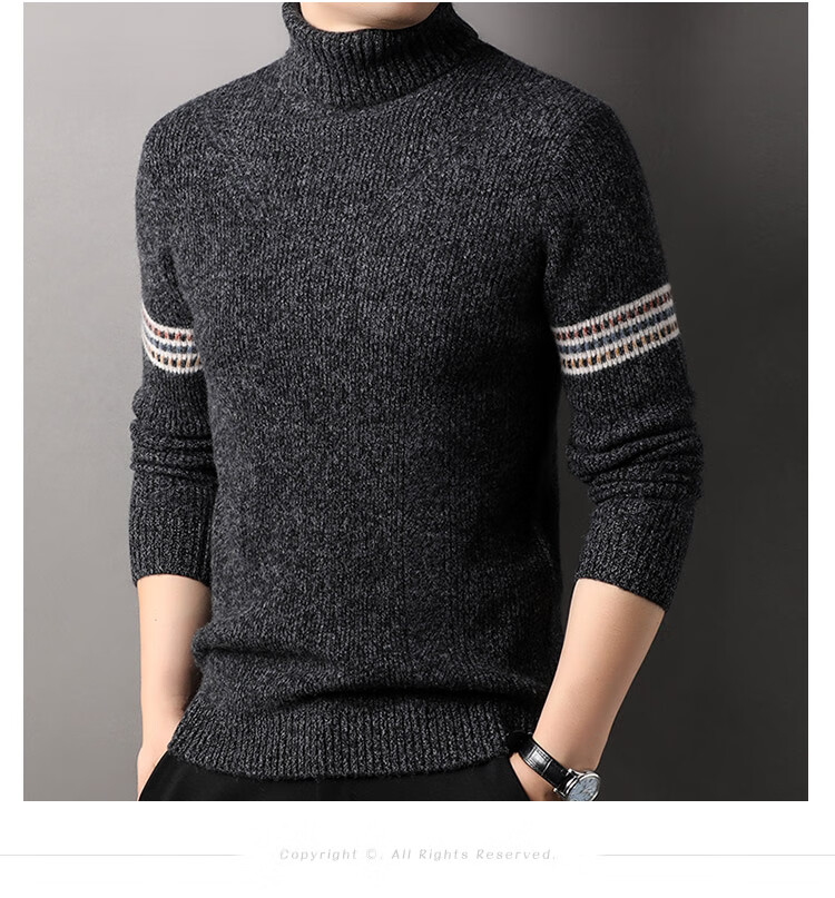 Hengyuanxiang 100% pure wool sweater men's turtleneck sweater winter thickened warm knitted bottoming shirt for men black gray L 175/50/110