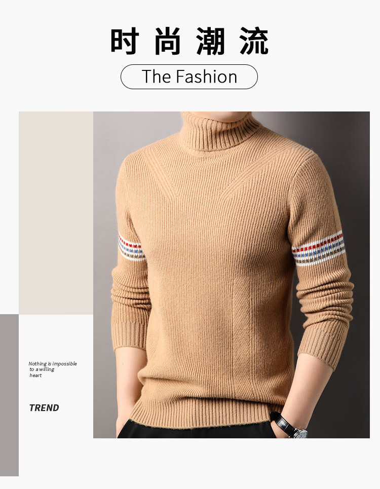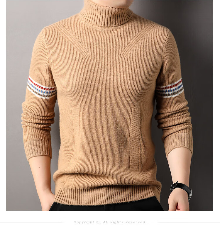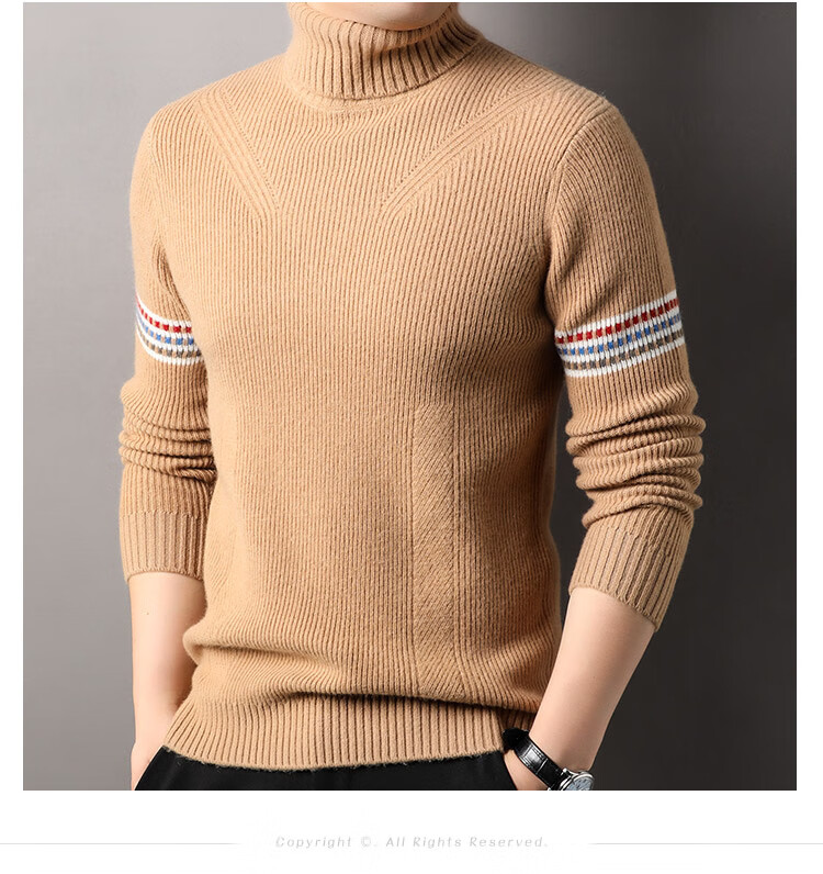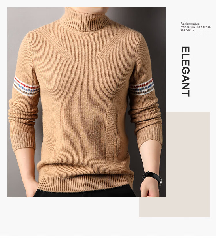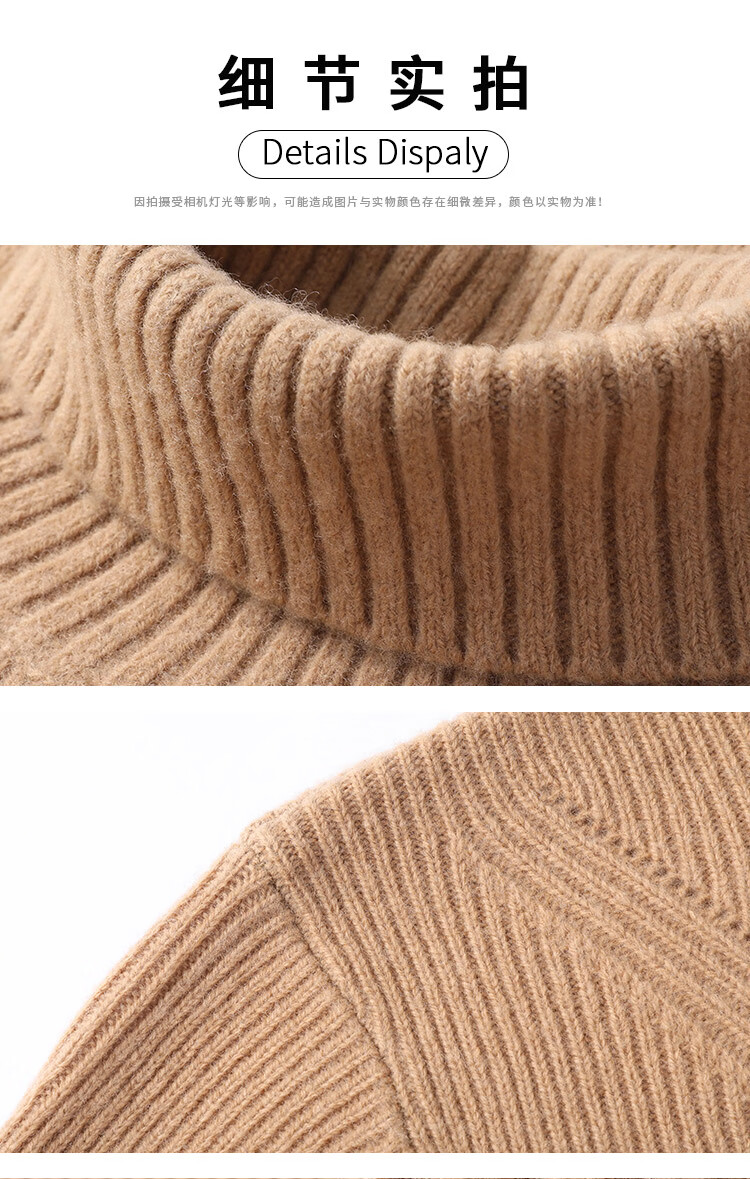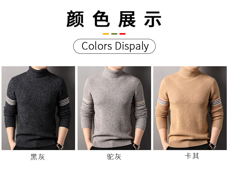 Hengyuanxiang 100% pure wool sweater men's turtleneck sweater winter thickened warm knitted bottoming shirt for men black gray L 175/50/110