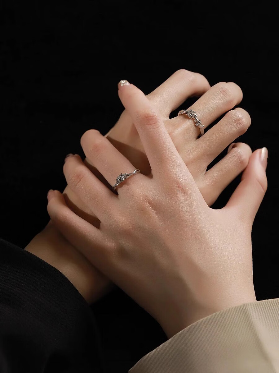 Popular items Couple rings A pair of wheat ears and roses Fashionable rings Husband and girlfriend jewelry gift J176 wheat ears + J177 rose 2 packs Opening can be adjusted