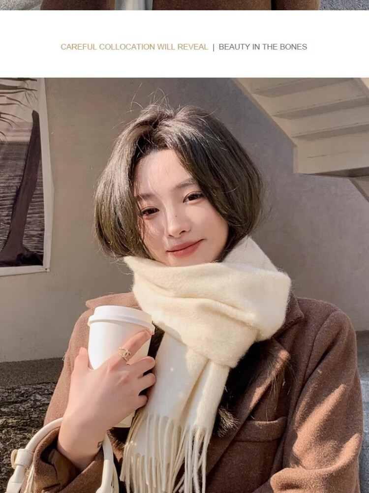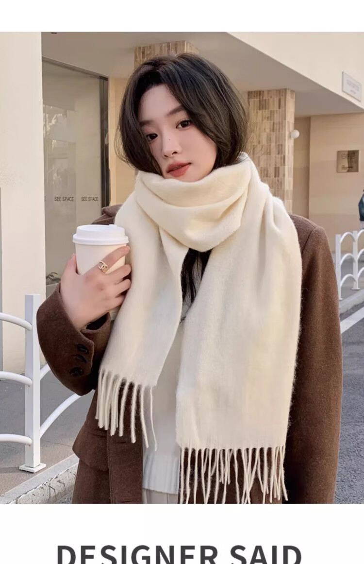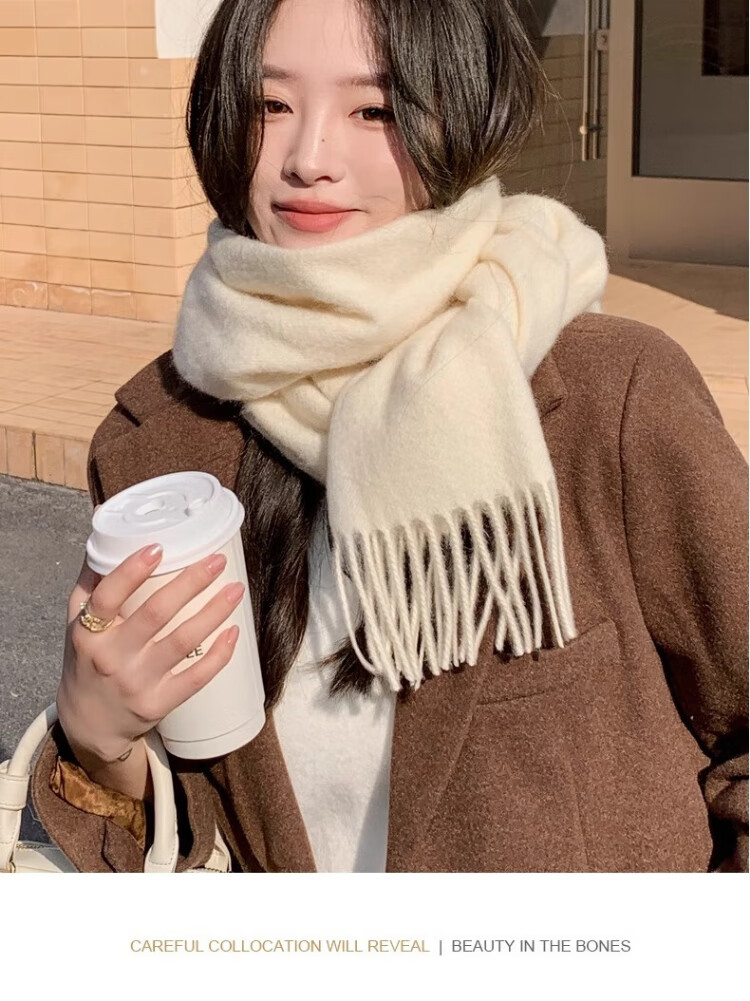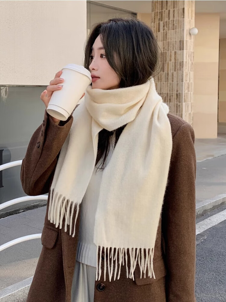 CONCISE KITE 100% wool scarf for women in autumn and winter high-end warm scarf for girls New Year's Valentine's Day birthday gift for girlfriend Off-white - high-end gift box practical birthday New Year gift for girls, wife and girlfriend