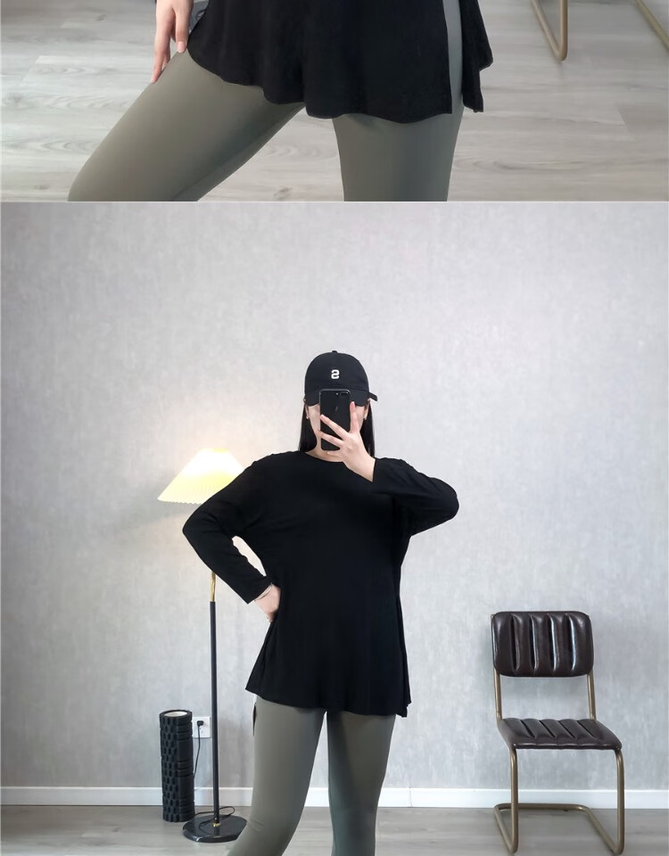 KEJIMITAO large size fat mm thin thread drape slimming hip hooded slit yoga running Pilates aerobics long-sleeved top black 3XL (170-190 card size choose small)