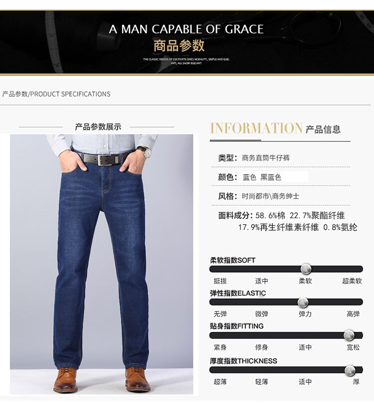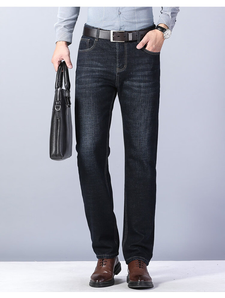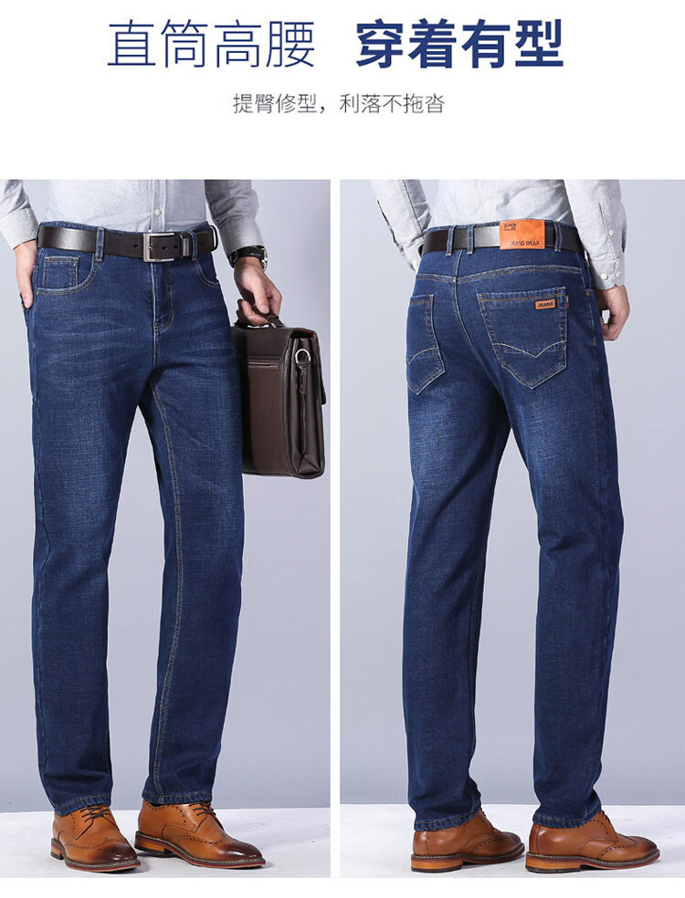 罗蒙商务休闲牛仔裤男士装秋冬季弹力宽松直筒休闲裤中青年长裤子 807蓝色 31