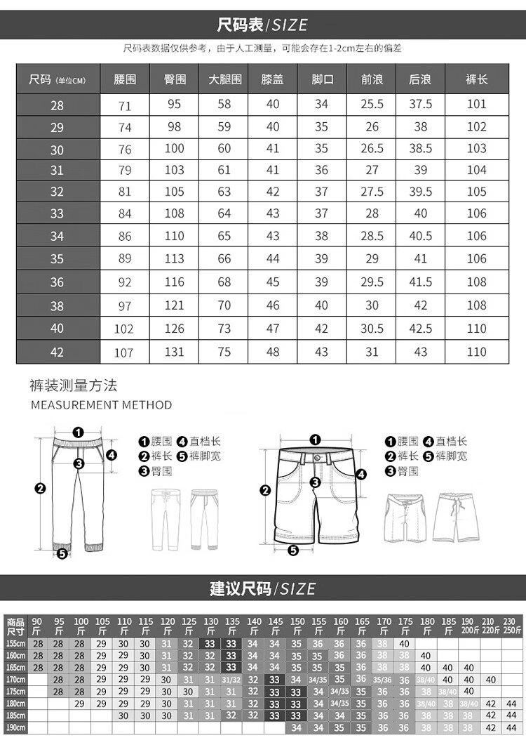USA(inch) 28-30 30-32 32-34 34-38 38-42