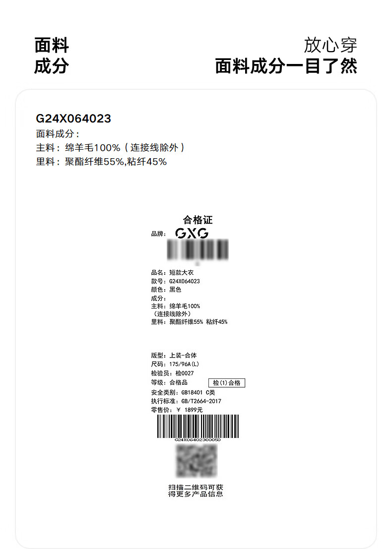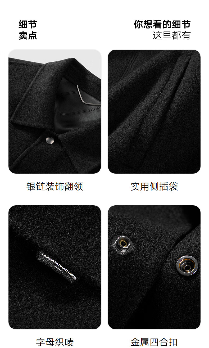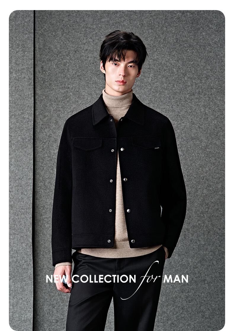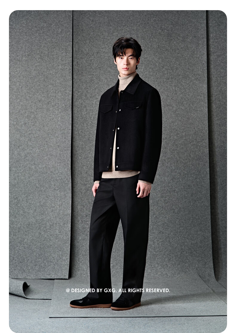 GXG Men's Black Wool Commuting Short Coat Winter New Product GX06402 Black L