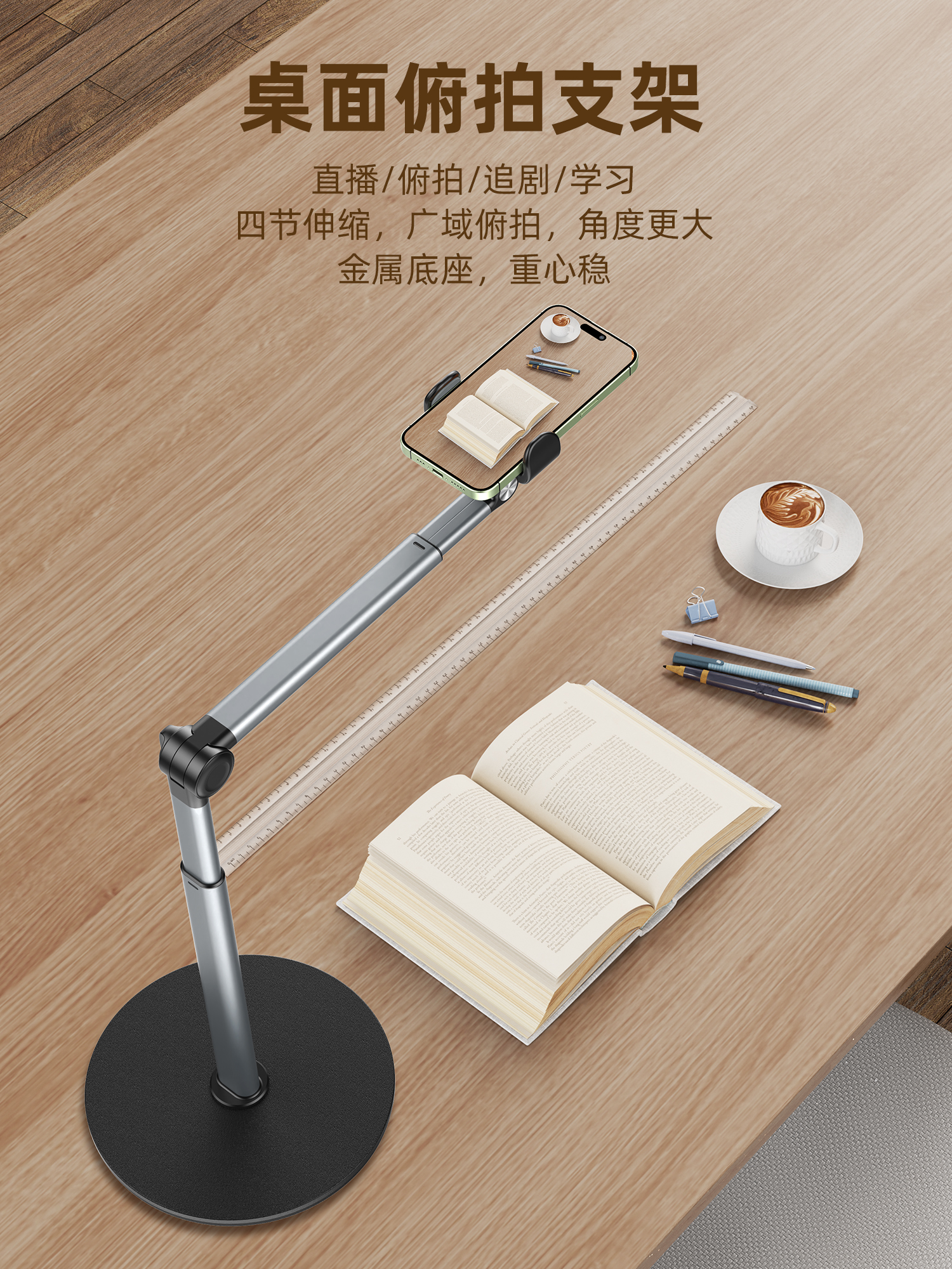 Wonew Colorful Snail Mobile Phone Overhead Live Broadcast Bracket Cross Bar Magnetic Suction Apple iPhone16 Stable Desktop Calligraphy Painting Shooting Desktop Overhead Live Broadcast Cooling Bracket Special ZJ41 Floor Rocker Bracket with Bluetooth Remote Control