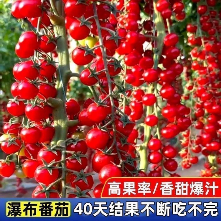 Sweet and juicy waterfall cherry tomato seeds, cherry tomato seeds for sowing potted vegetables in all seasons, red waterfall cherry tomato seeds/pack, about 200 capsules, 3 packs