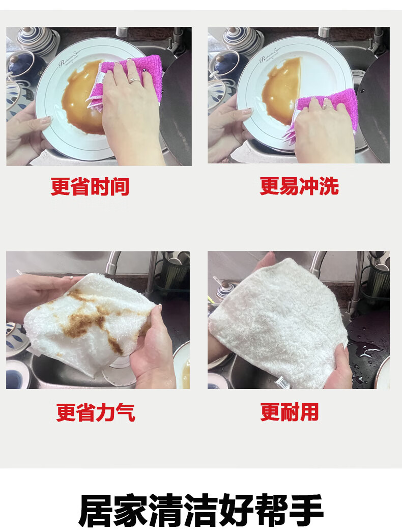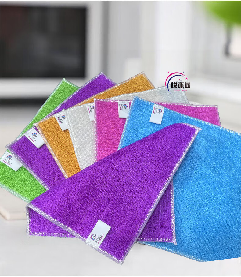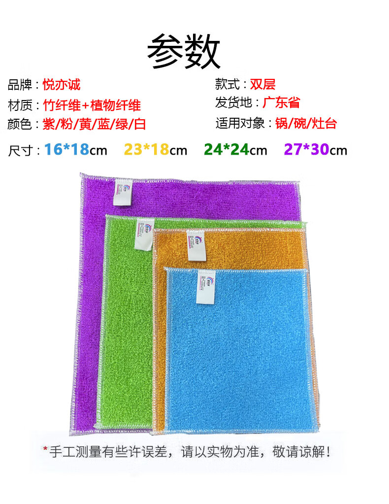 Korean bamboo fiber dishwashing cloth, lint-free, oil-free cleaning cloth, decontamination thickened absorbent rag, kitchen scouring pad, white small size 3 pack (16*18cm)