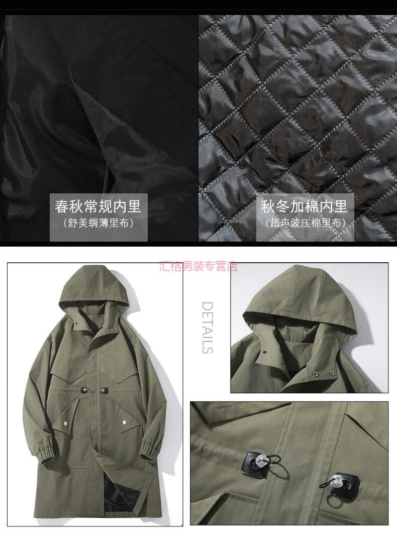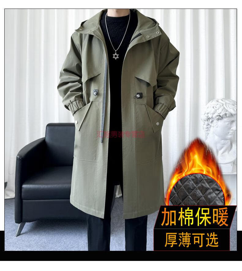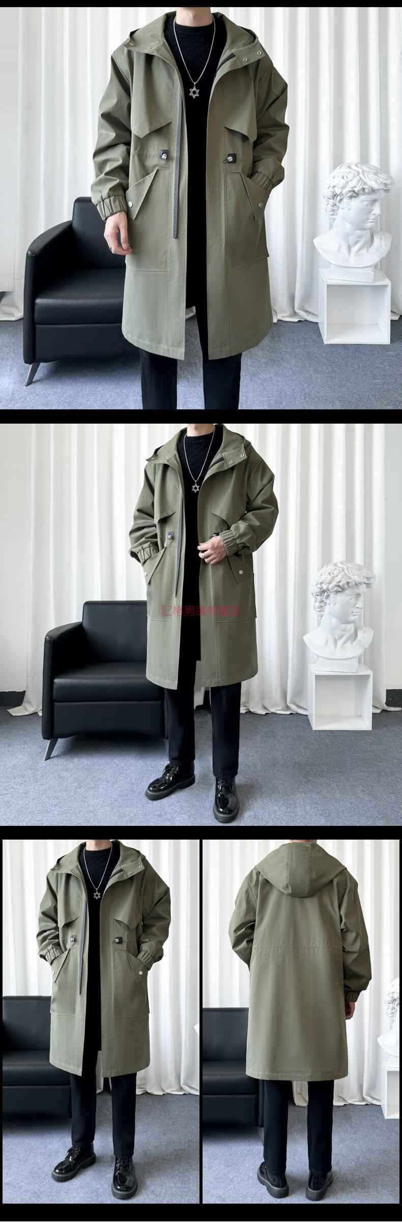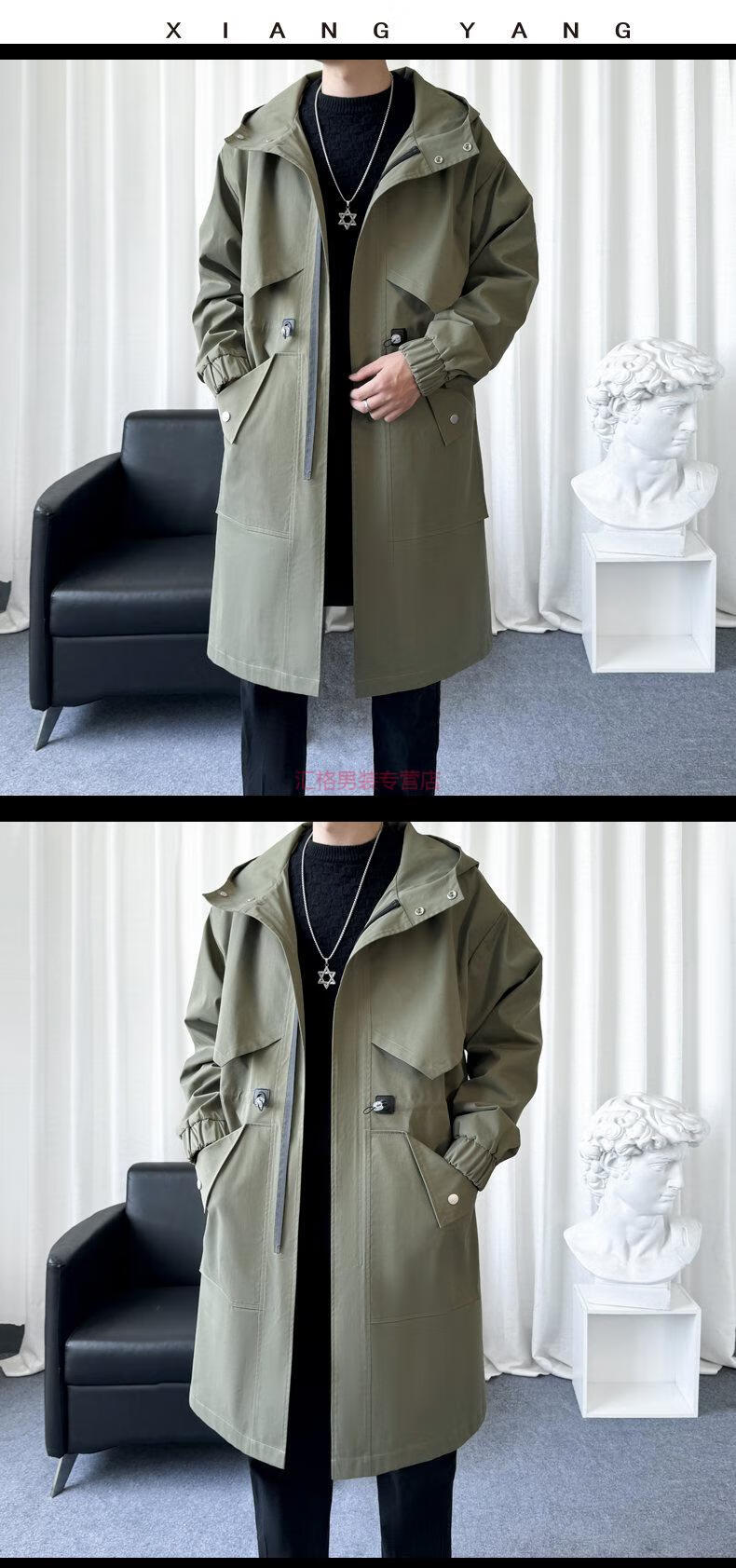 Мужская ветровка средней длины выше колена Kaduton для весны и осени, новый стиль в Гонконге, красивое свободное повседневное длинное пальто, трендовое светло-зеленое, стандартный размер XL (рекомендуемый вес 145-165 Jin Jin равен 0,5 кг)