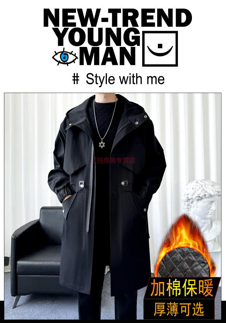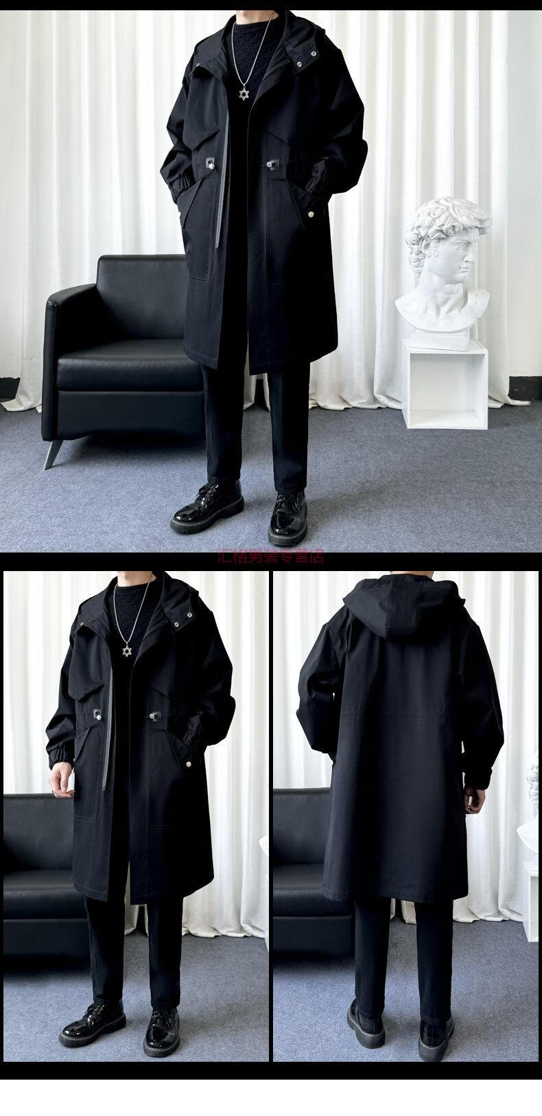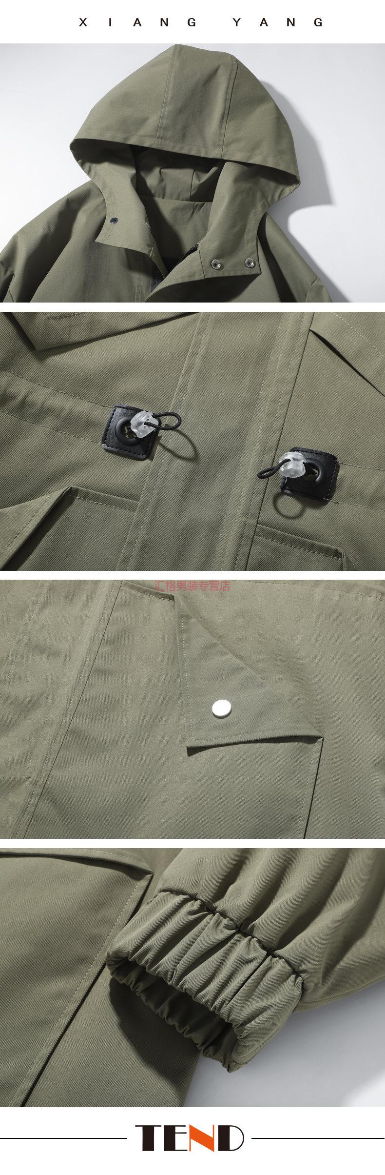 Мужская ветровка средней длины выше колена Kaduton для весны и осени, новый стиль в Гонконге, красивое свободное повседневное длинное пальто, трендовое светло-зеленое, стандартный размер XL (рекомендуемый вес 145-165 Jin Jin равен 0,5 кг)