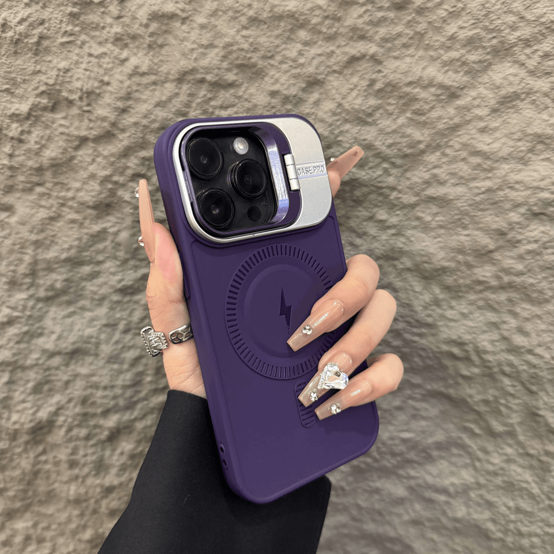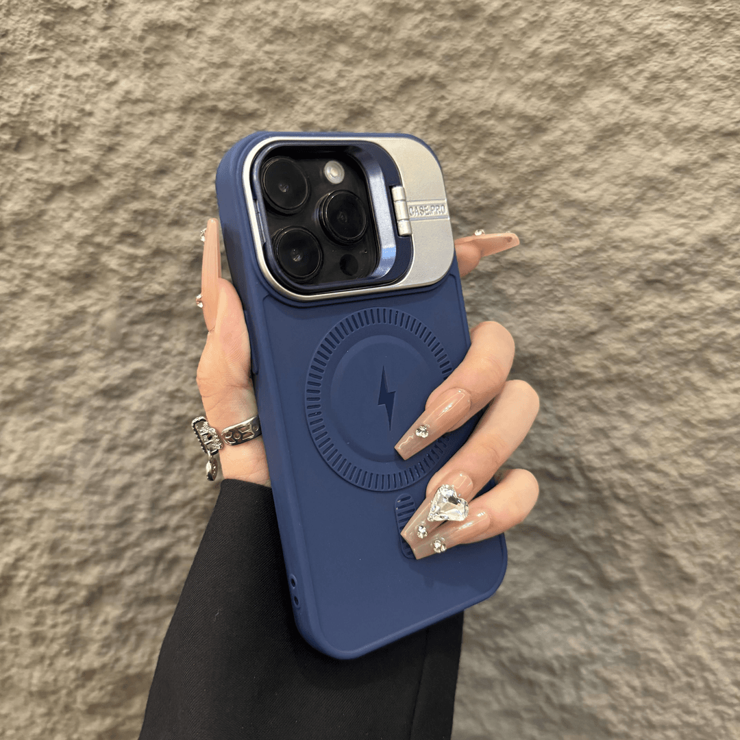 Kangsiqi's new niche lens flip cover holder is suitable for Apple 16promax mobile phone case iPhone15pro frosted silicone 14/17 anti-fall protective cover high-end ultra-thin magnetic suction blue flash magnetic suction + frame holder iPhone 16 Pro Max