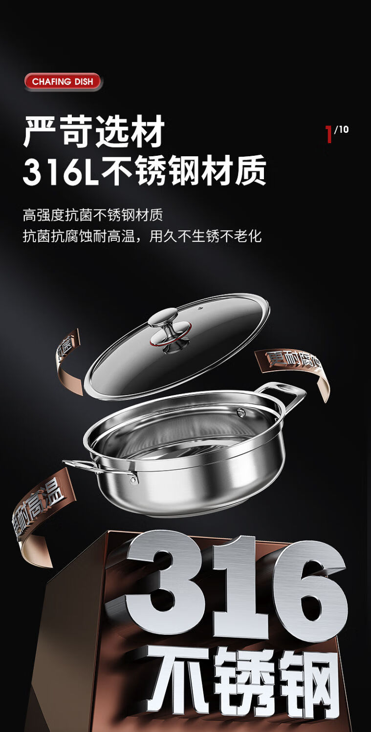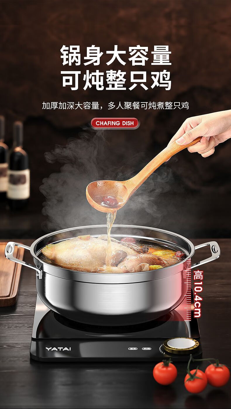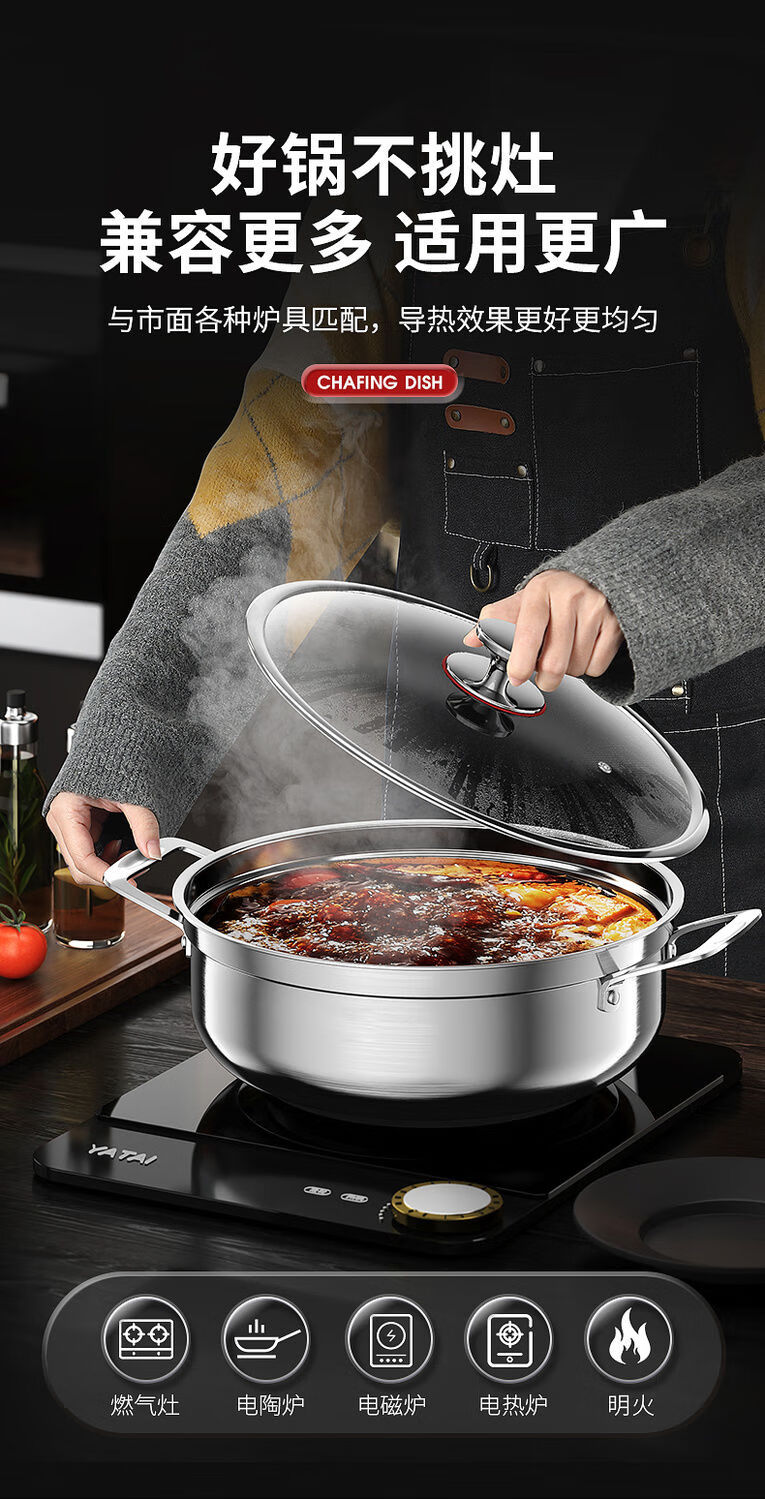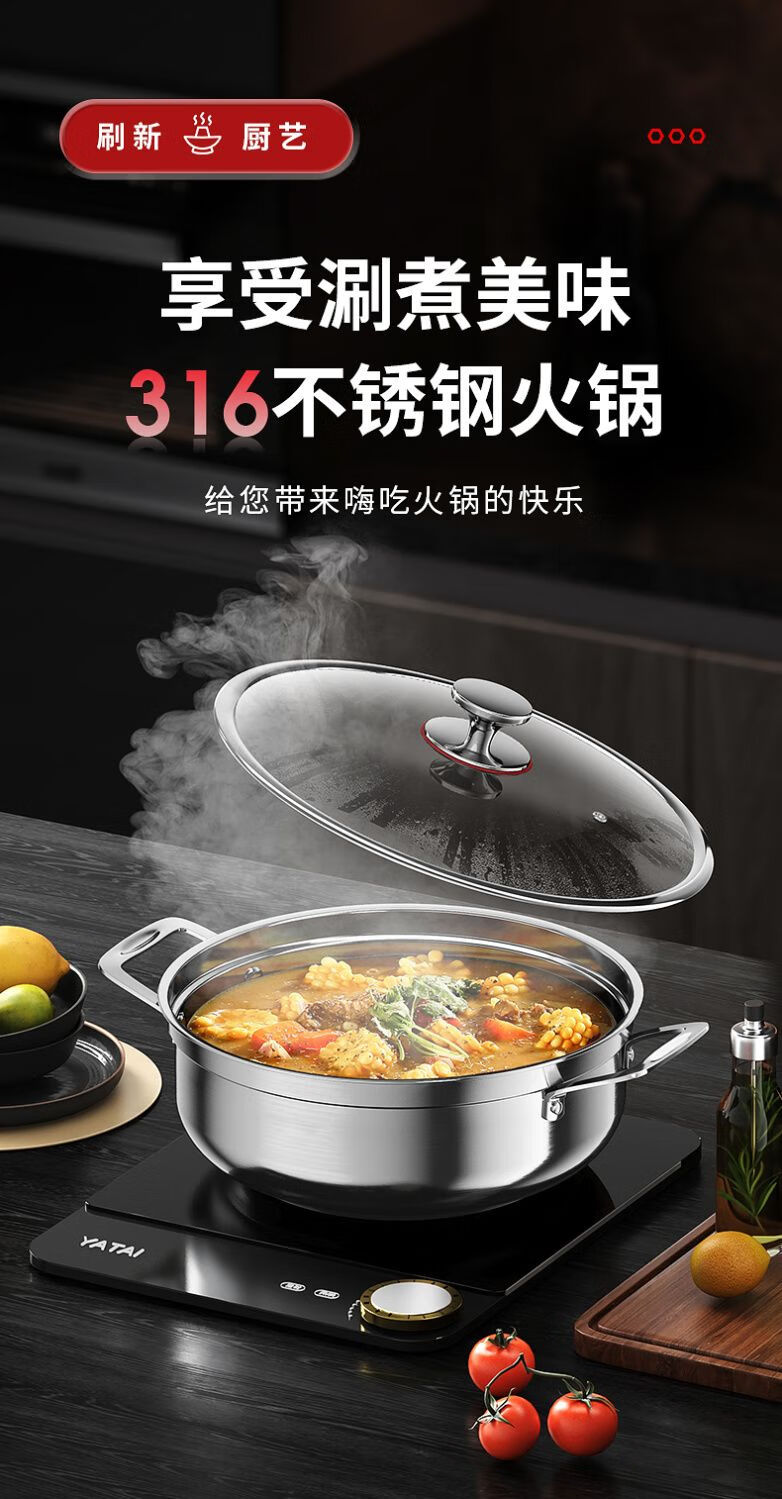 Bamboo Dolphin German 316 olla caliente de acero inoxidable olla doméstica extra gruesa 304 olla de sopa transparente cocina de inducción comercial de gran capacidad olla de gas para 10-14 personas 34 cm 316 mango de acero extra grueso antibacteriano mejorado 99.9%