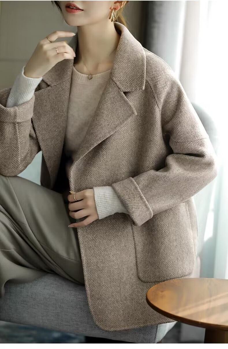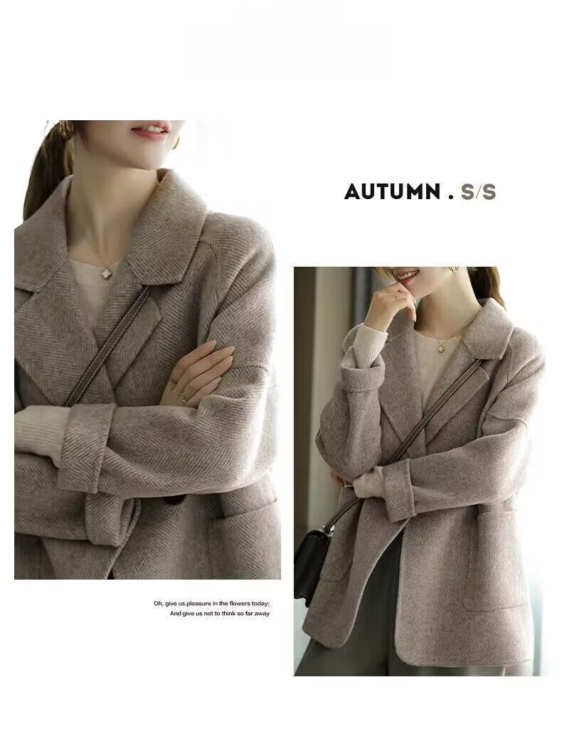 La Chapelle high-end woolen coat for women short and small 2025 autumn and winter new fashion versatile slim spring and autumn coat trend brown L 115-130Jin Jin is equal to 0.5 kg