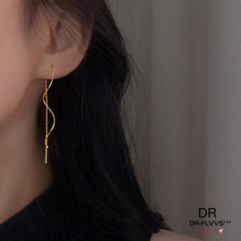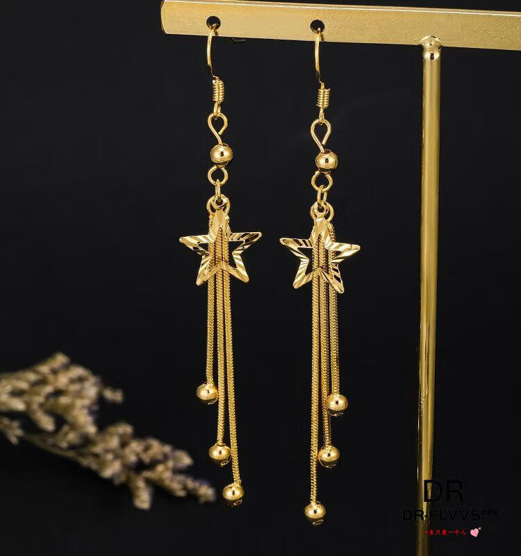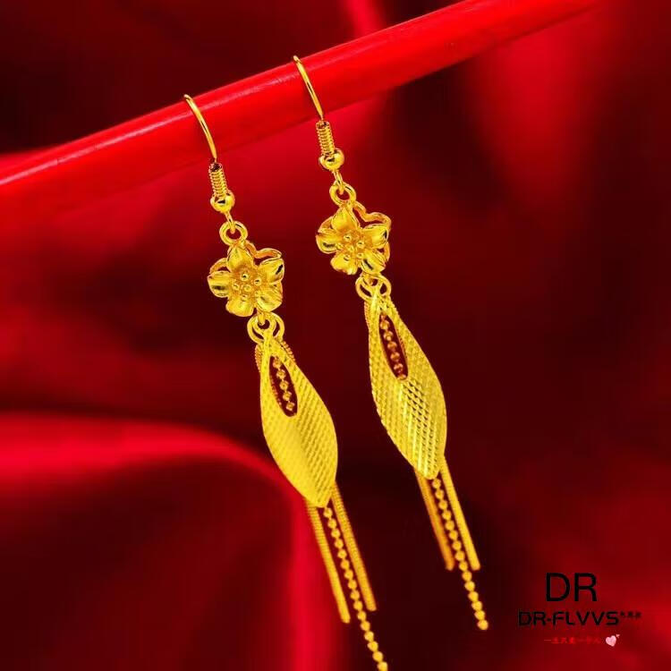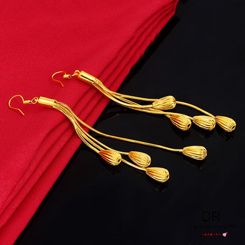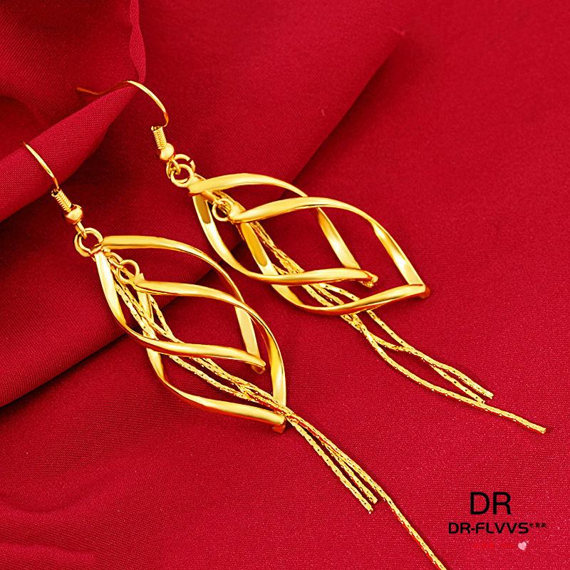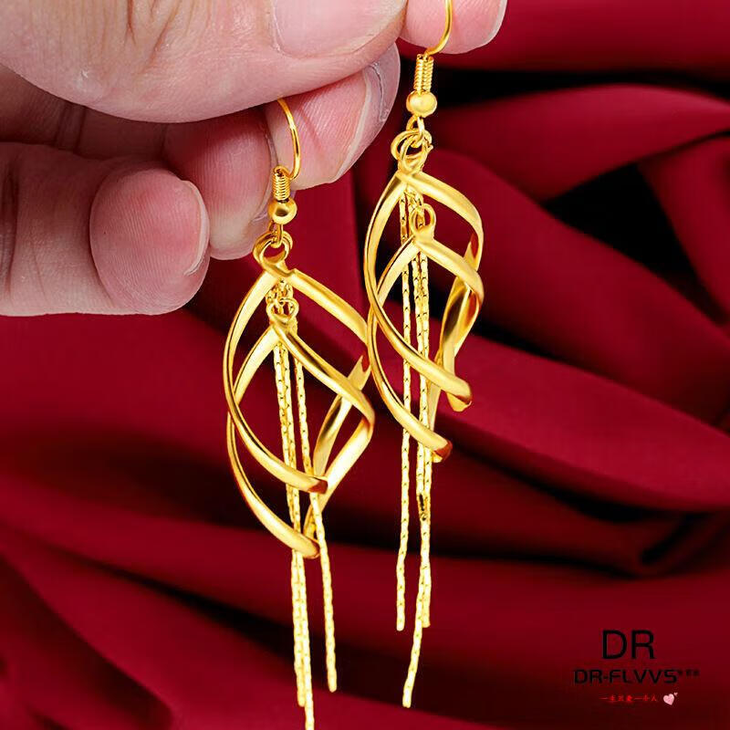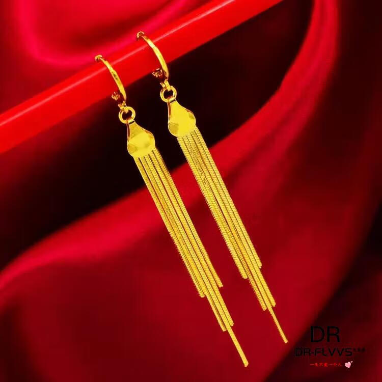 Fat Donglai's same gold-plated ear wire gold earrings for women, gold earrings, golden tassels, fashion gifts for women, Jinhua Yiyu ear wire