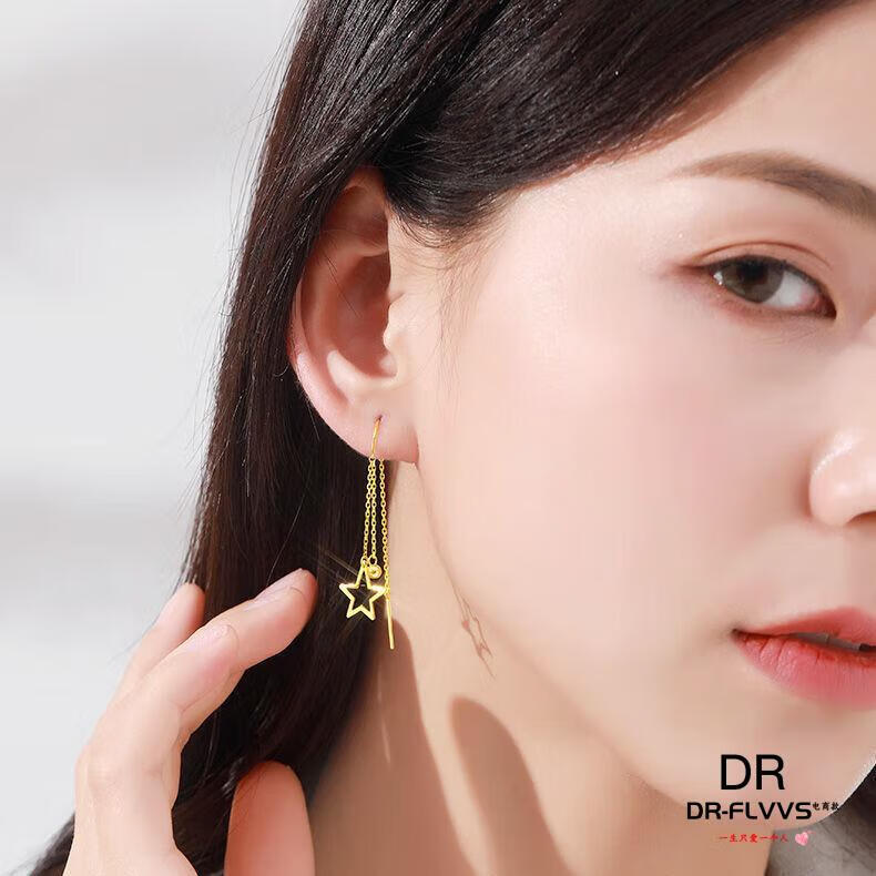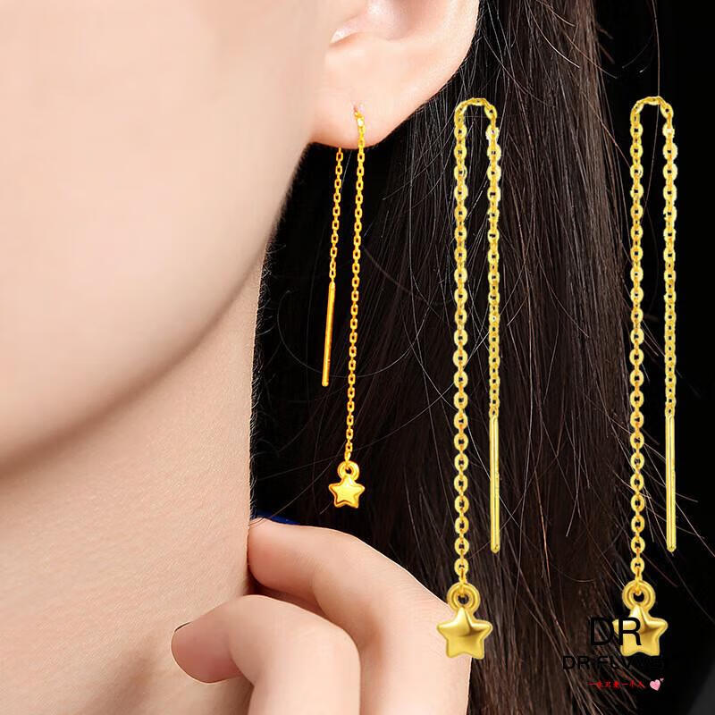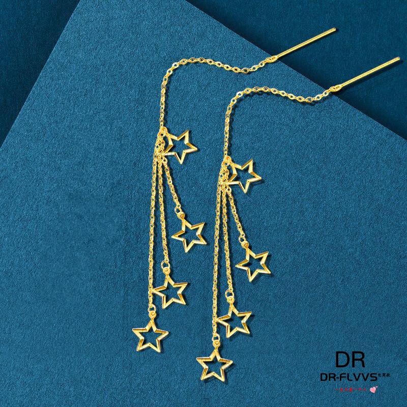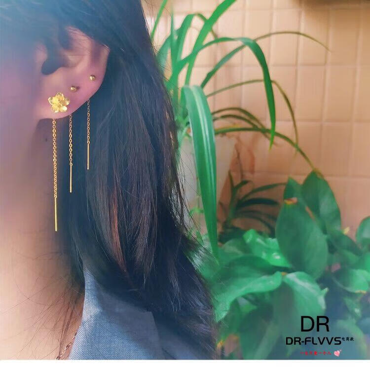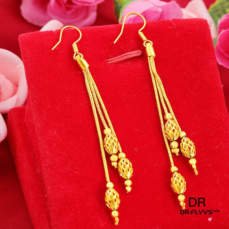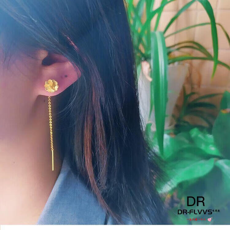 Fat Donglai's same gold-plated ear wire gold earrings for women, gold earrings, golden tassels, fashion gifts for women, Jinhua Yiyu ear wire