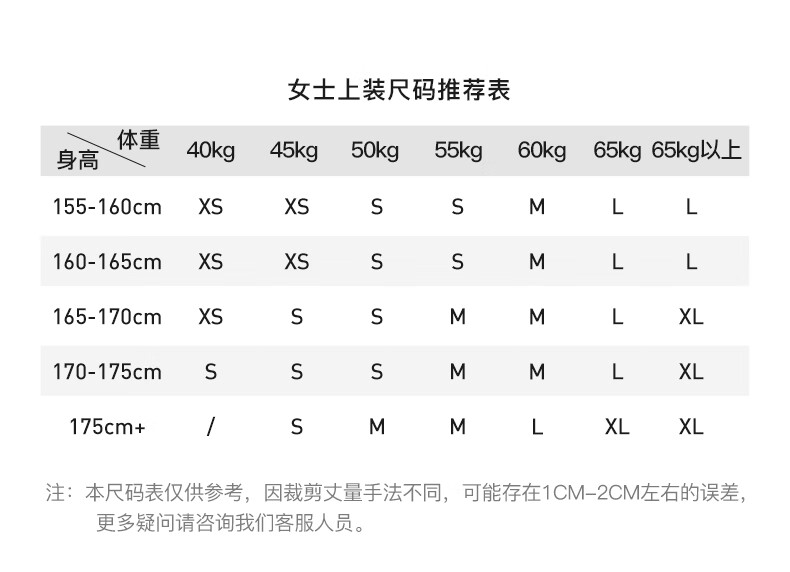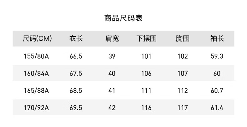 China (cm) 160-165/84-86 165-170 / 88-90 167-172 / 92-96 168-173 / 98-102 170-176 / 106-110