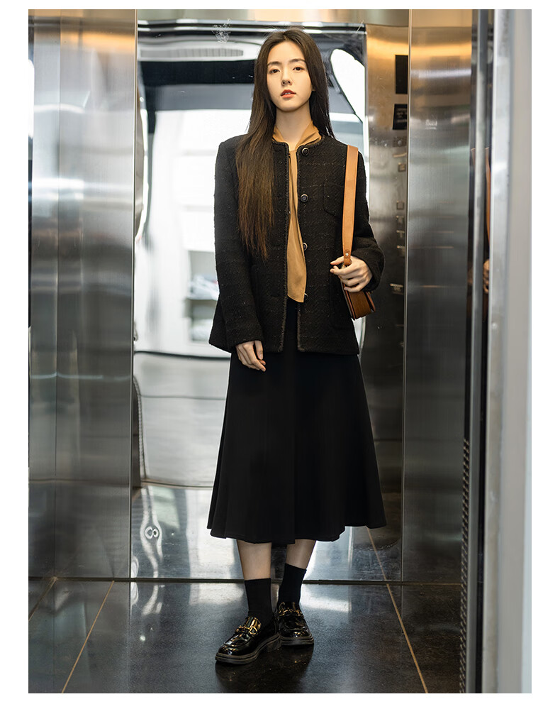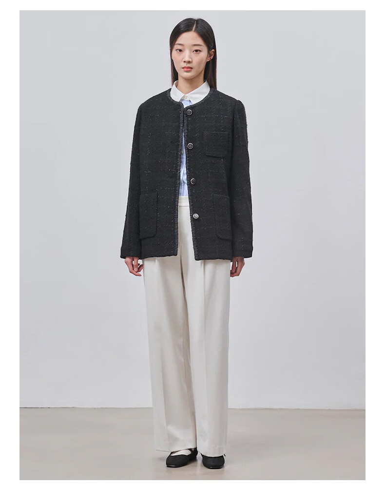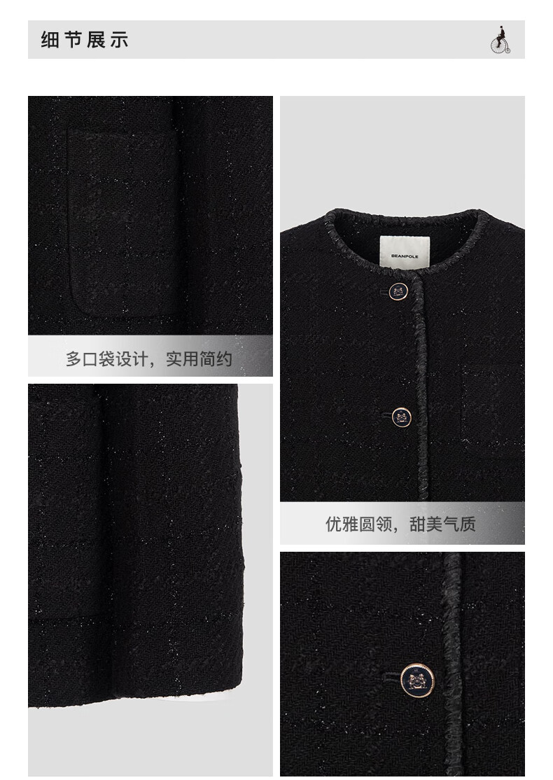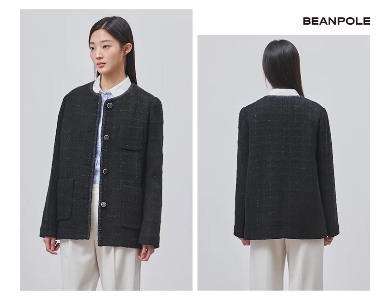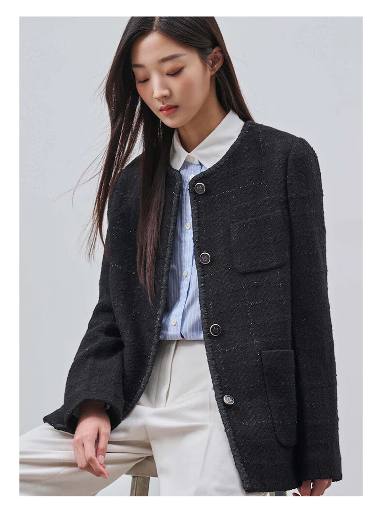 Beanpole New Year's gift including cashmere women's small fragrant tweed fashionable urban intellectual style single suit jacket black S 160/84A