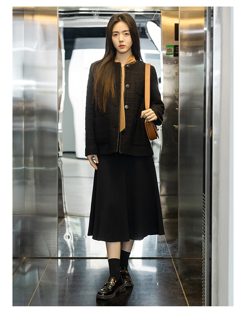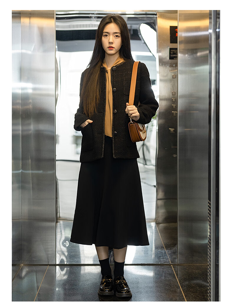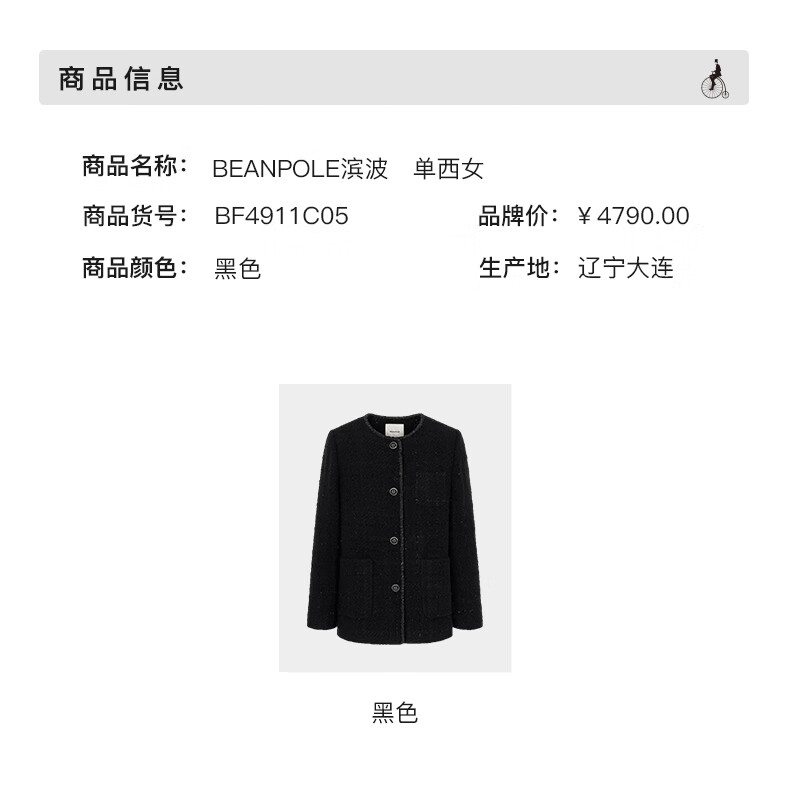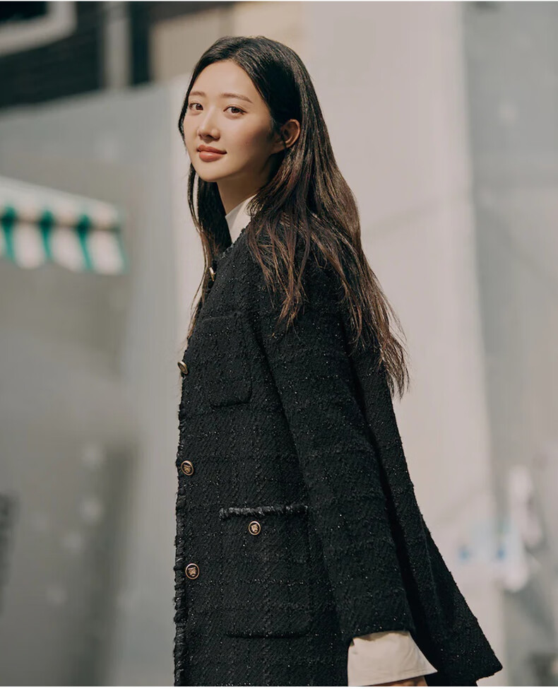 Beanpole New Year's gift including cashmere women's small fragrant tweed fashionable urban intellectual style single suit jacket black S 160/84A