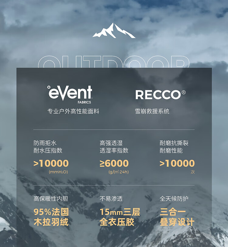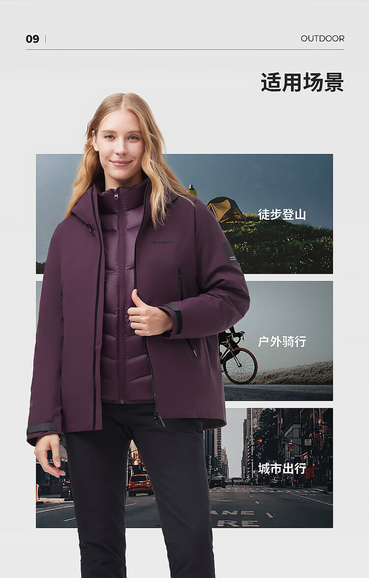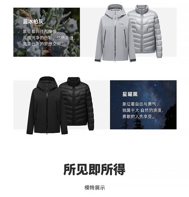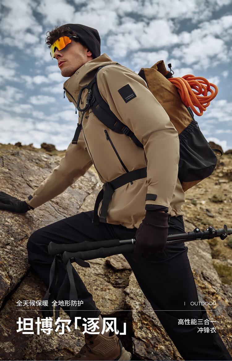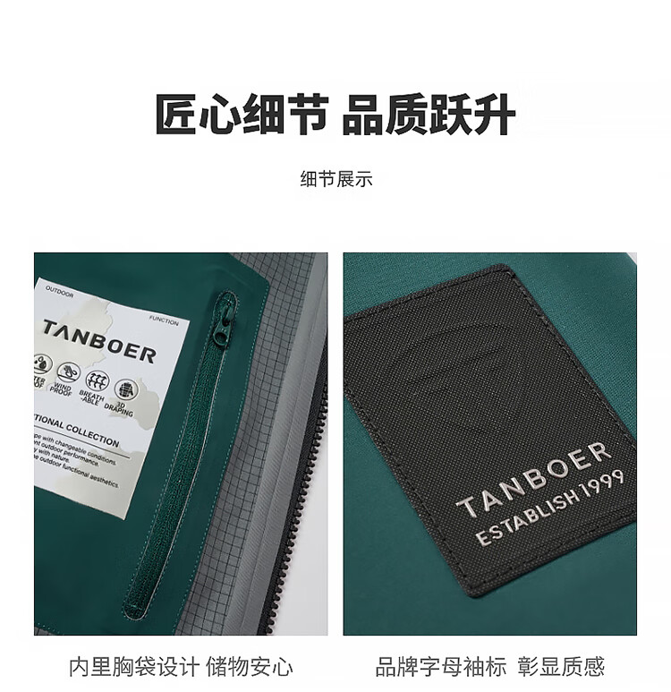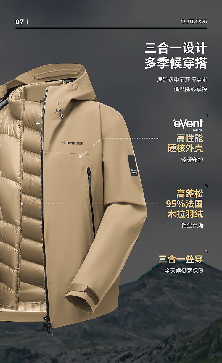 坦博尔男女同款户外三合一羽绒服短款外套TAF560577A 尤加利绿 M (170)