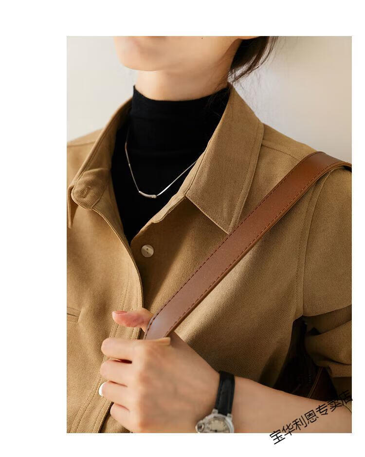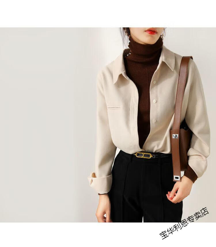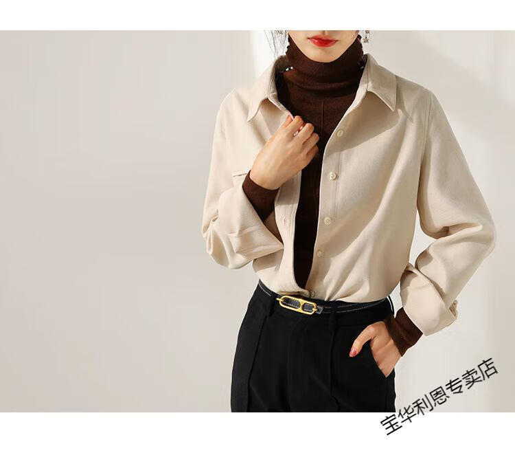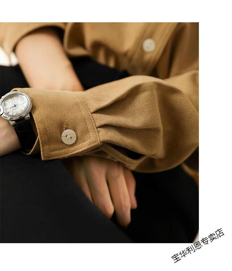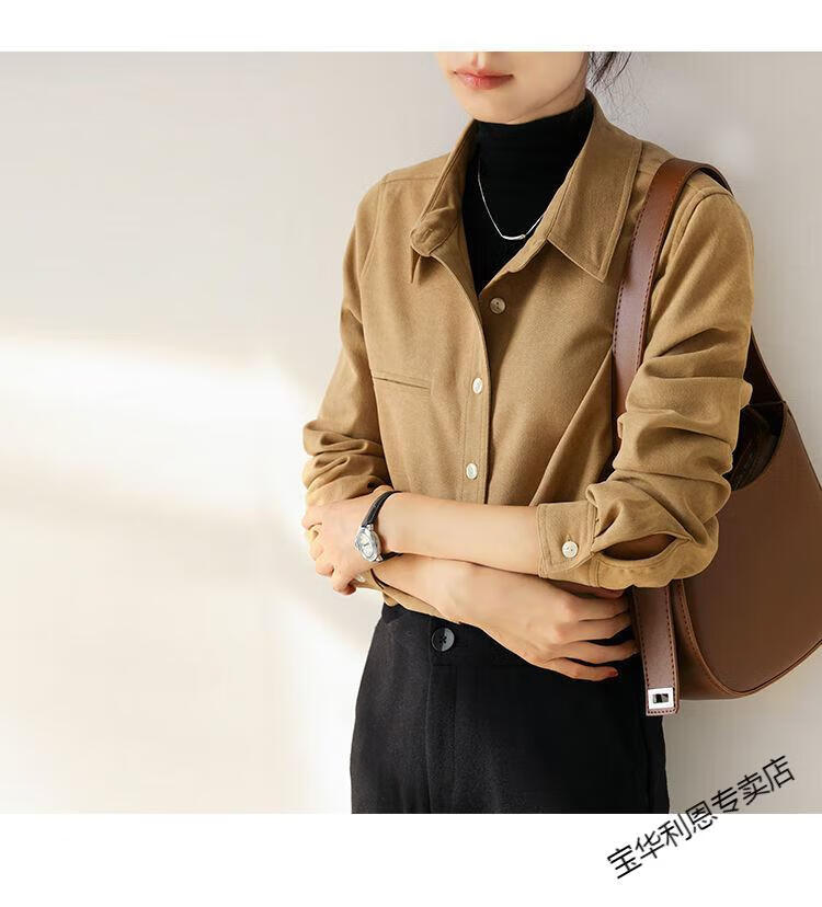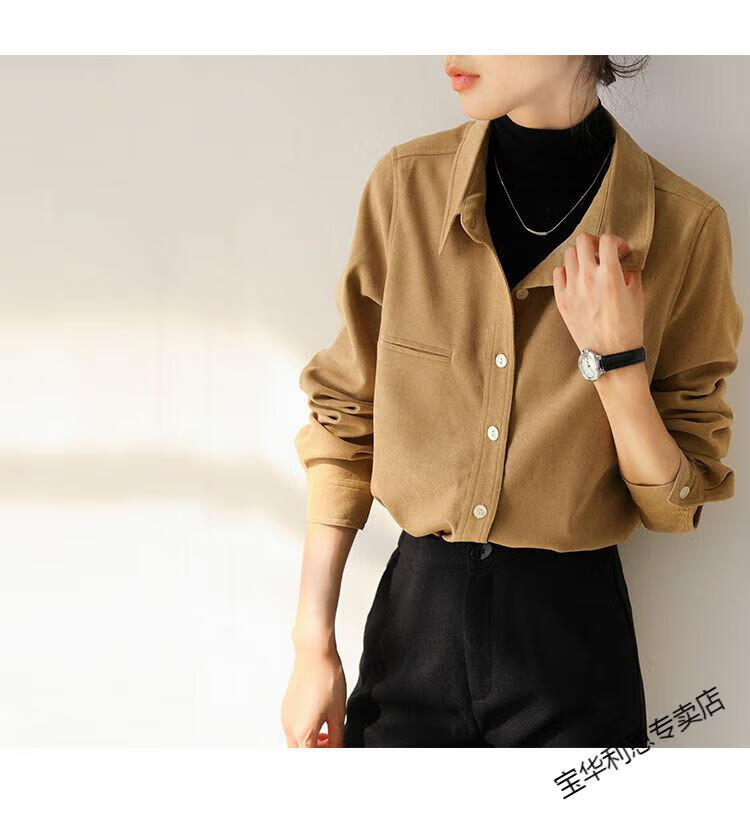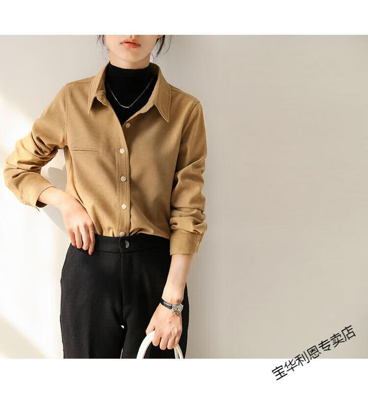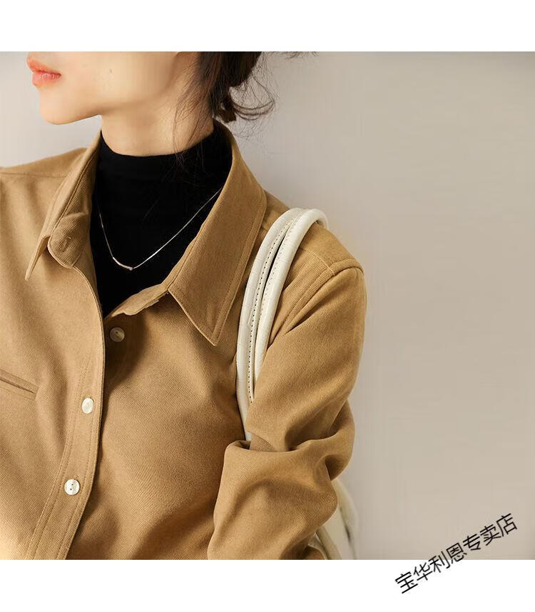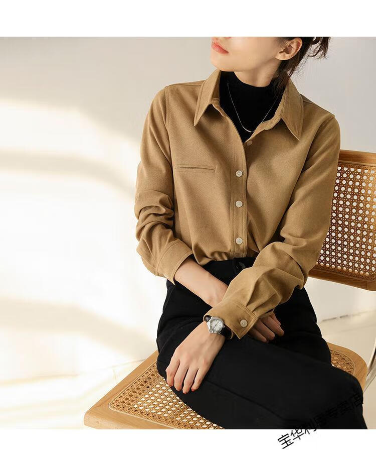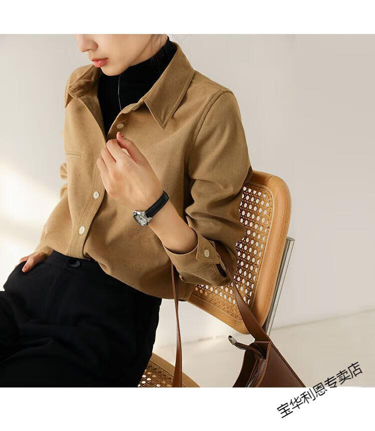 Woodpecker thickened brushed layered long-sleeved shirt women's autumn and winter retro pure cotton shirt versatile commuting professional top 8510 coffee color S
