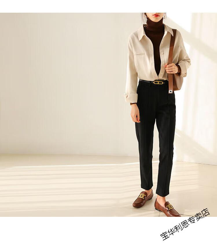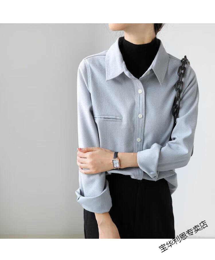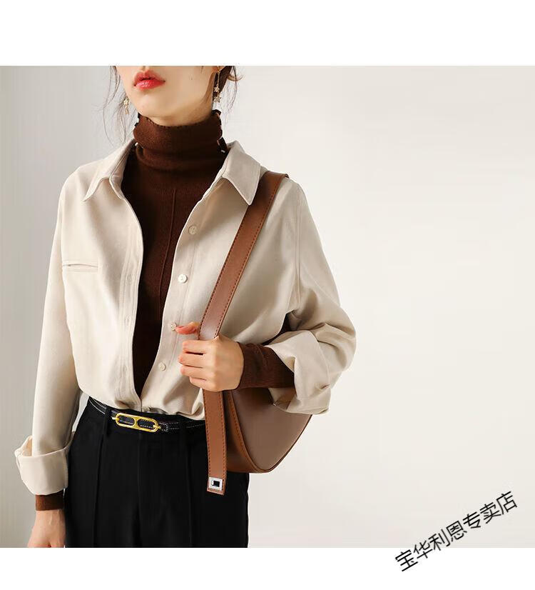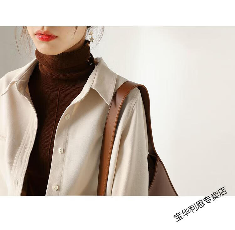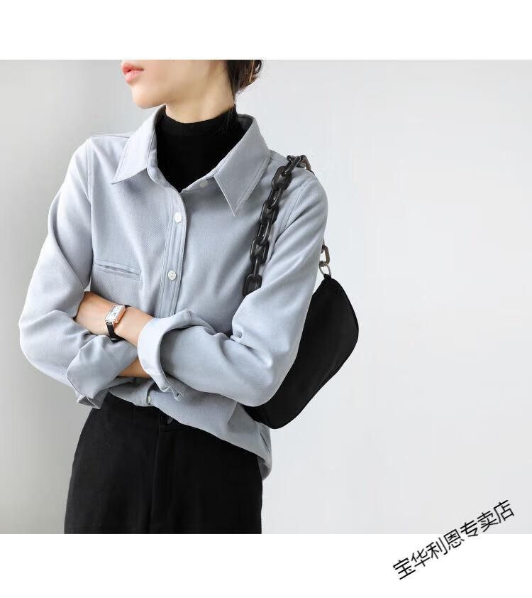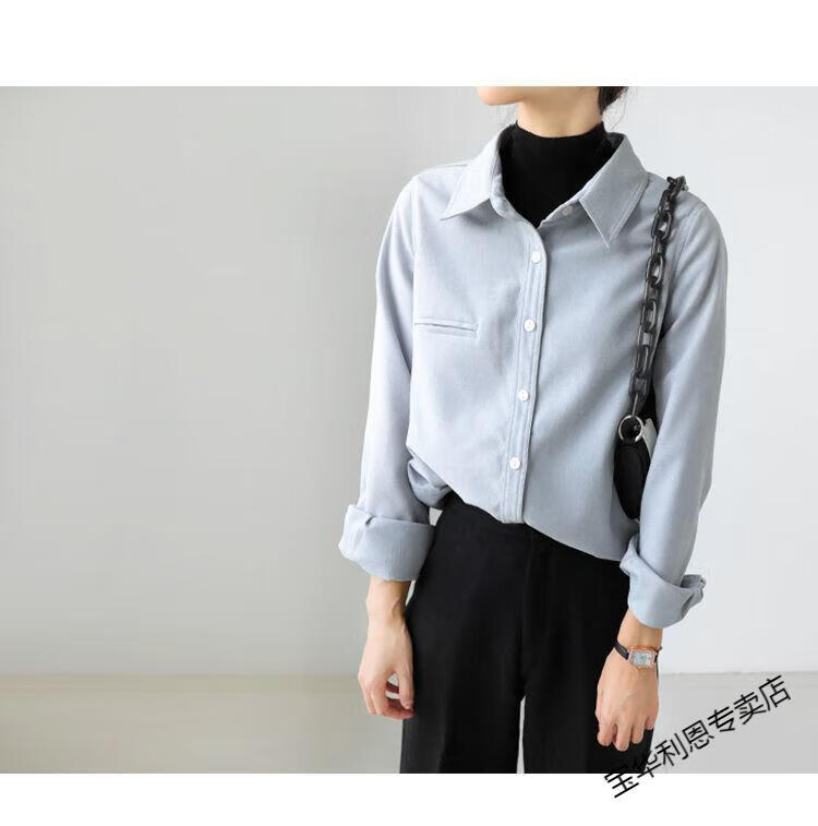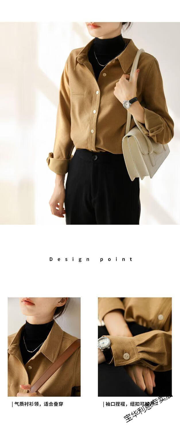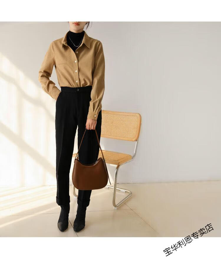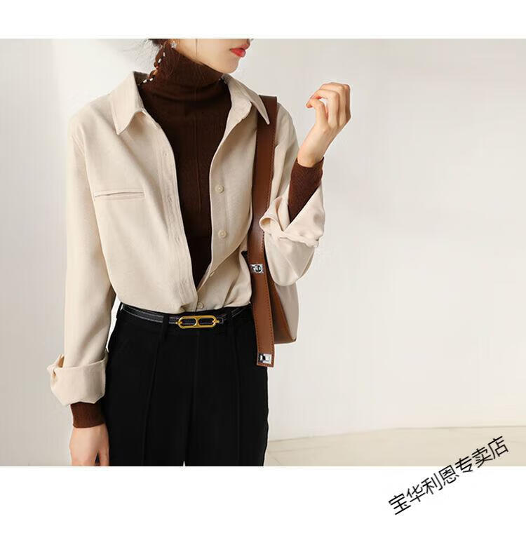 Woodpecker thickened brushed layered long-sleeved shirt women's autumn and winter retro pure cotton shirt versatile commuting professional top 8510 coffee color S
