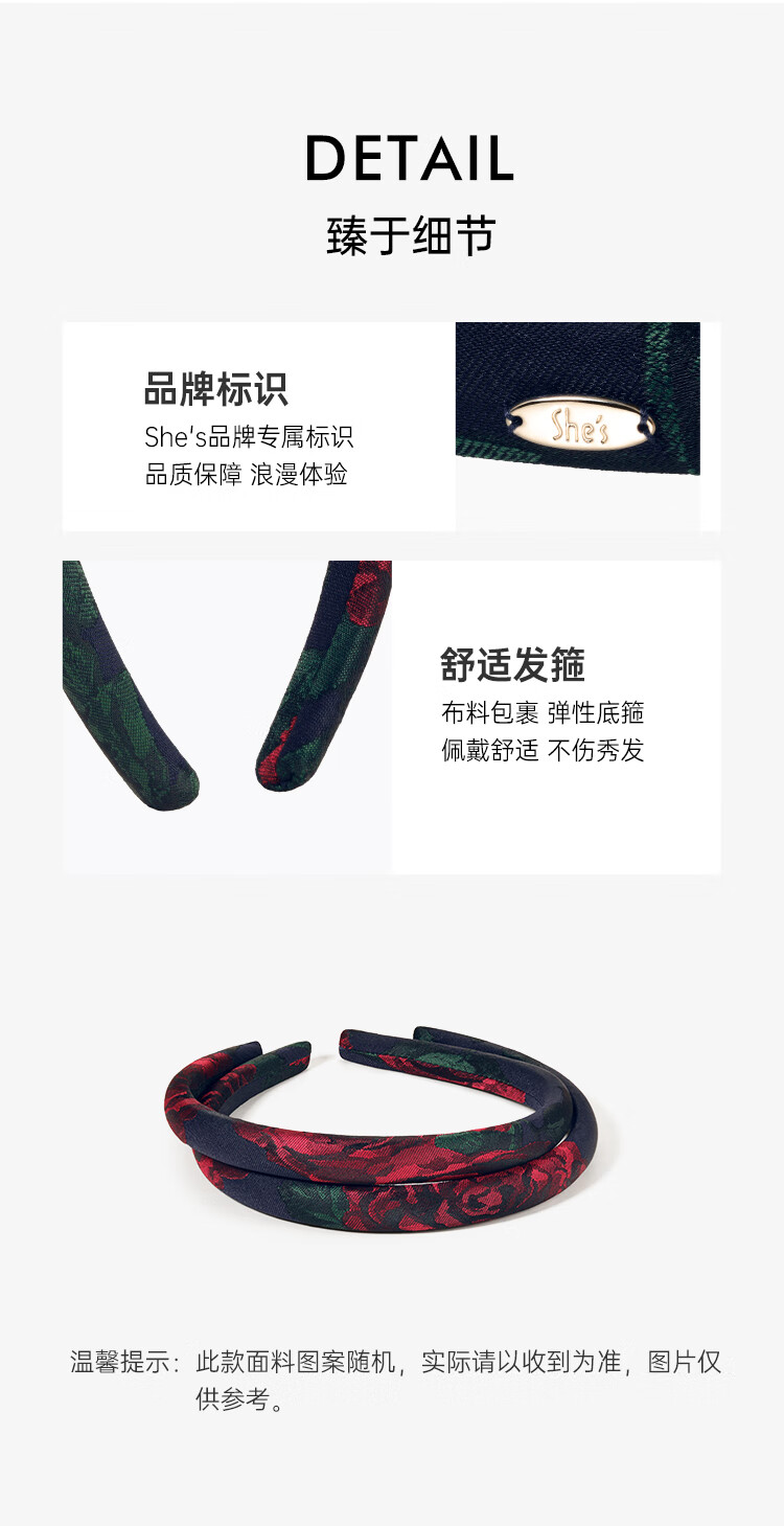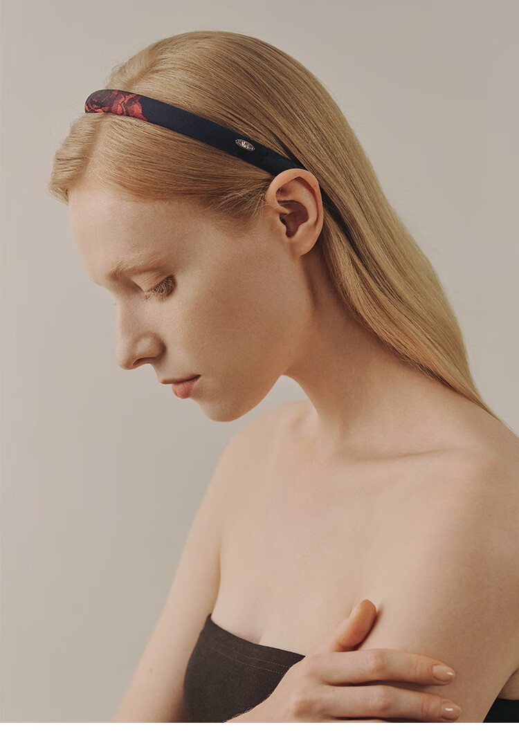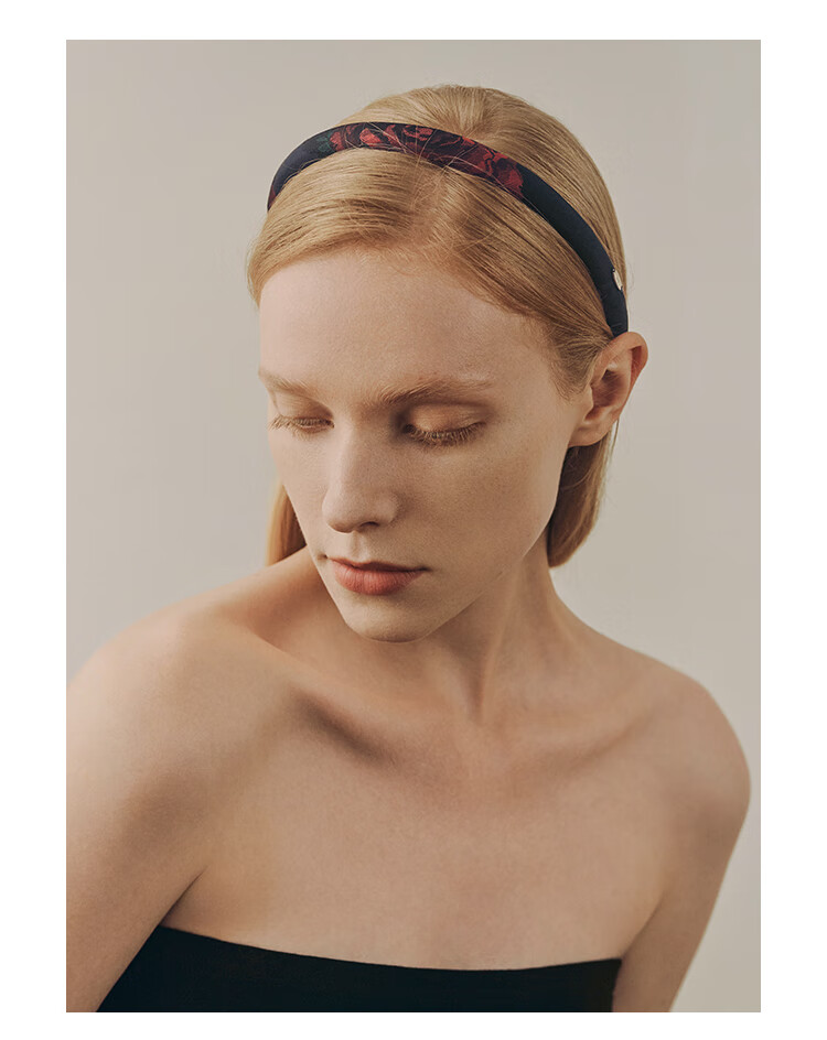 She s Akiko headband retro rose jacquard pressed hair headband design hairpin head jewelry birthday gift for girlfriend red A0