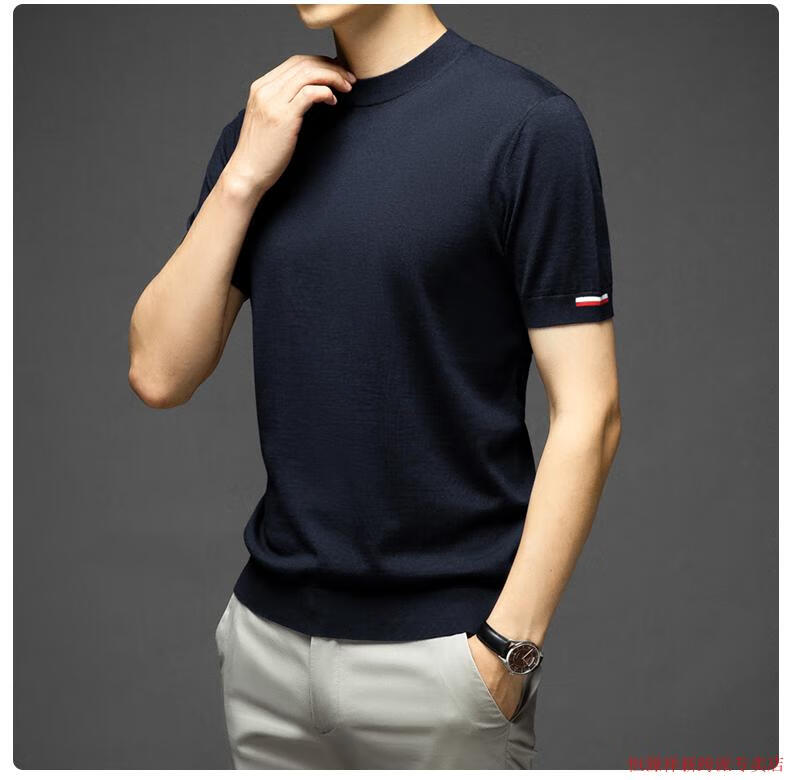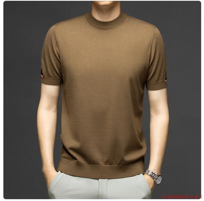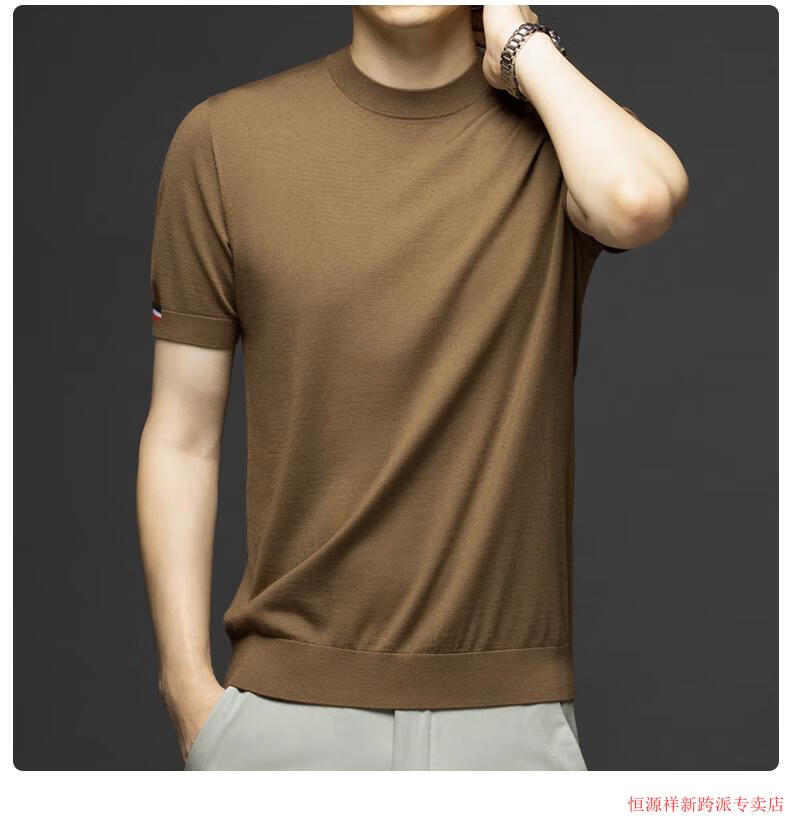 Hengyuanxiang thin worsted short-sleeved wool sweater for men 100 pure wool round neck sweater for men middle-aged knitted bottoming shirt spring and autumn 262_bright brown M