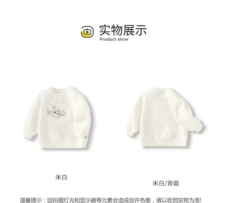 Balabala children's clothing baby bottoming shirt T-shirt girls top autumn and winter sweet temperament simple fashion trendy off-white 10302 100