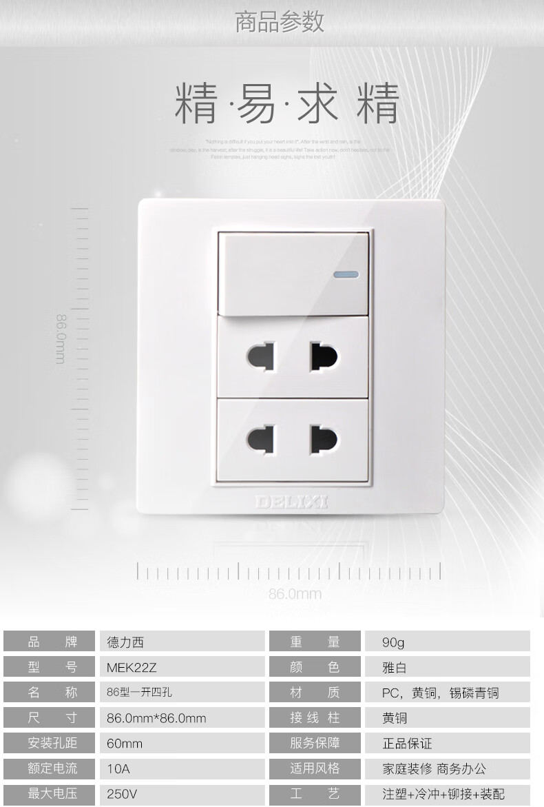四孔插座带开关86型 一开双控四孔 1开4孔两位二孔单开四孔