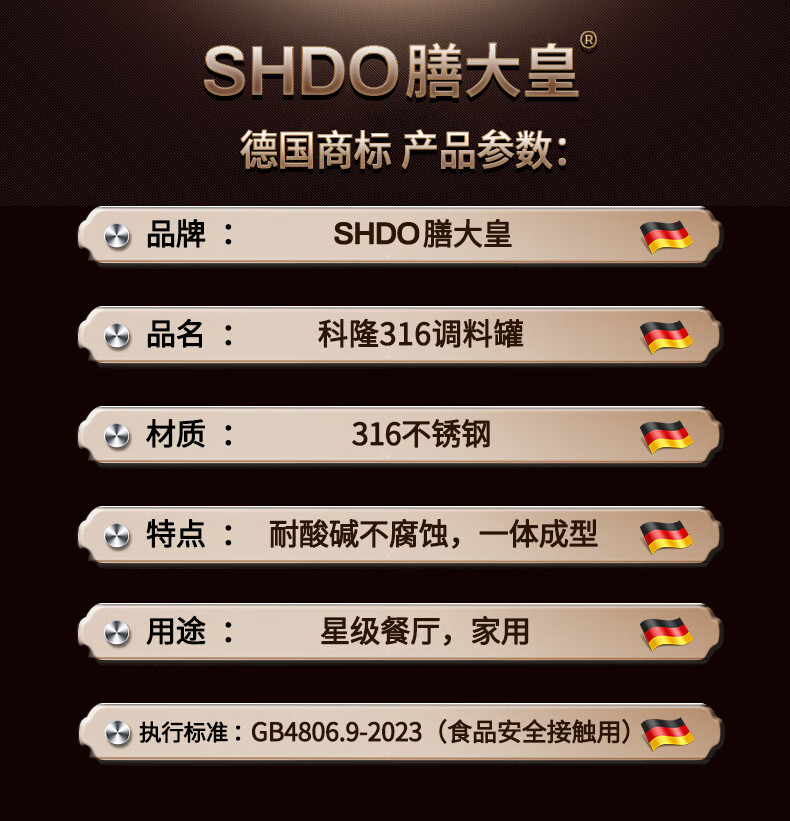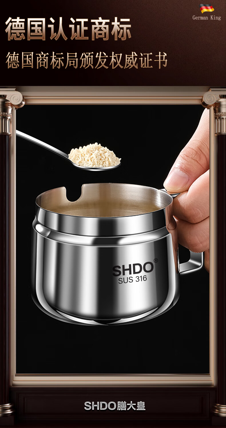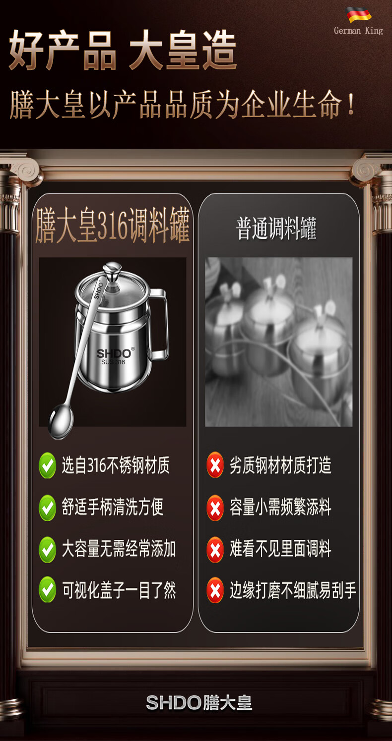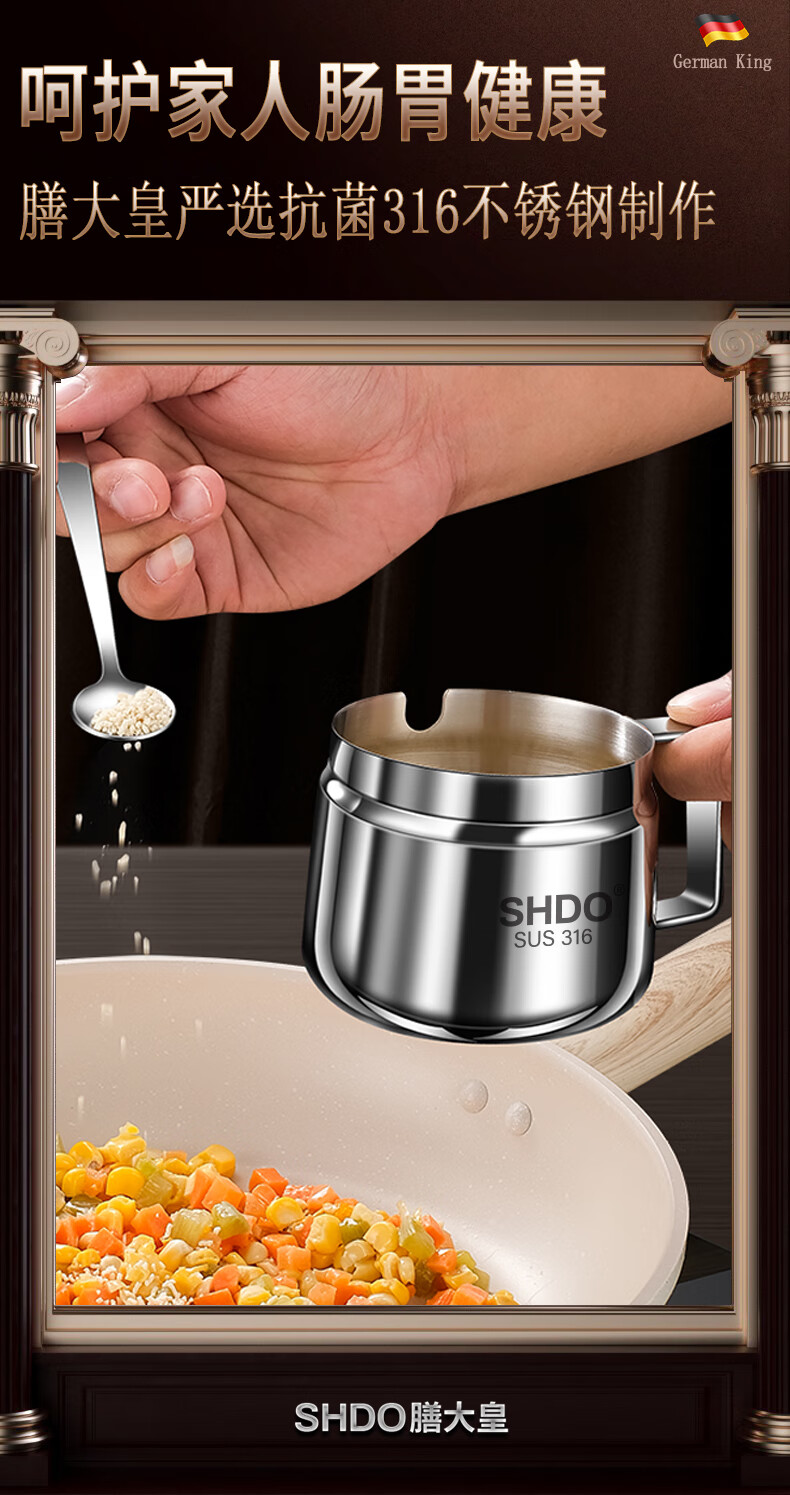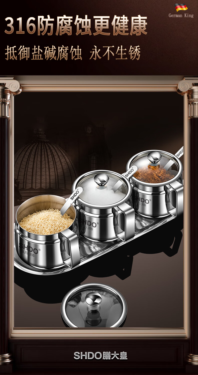 Shandahuang (SHDO) German 316 stainless steel seasoning jar chili oil jar with lid salt jar kitchen chili jar high temperature resistant oil chili jar antibacterial 316 medium 350ml 1 piece