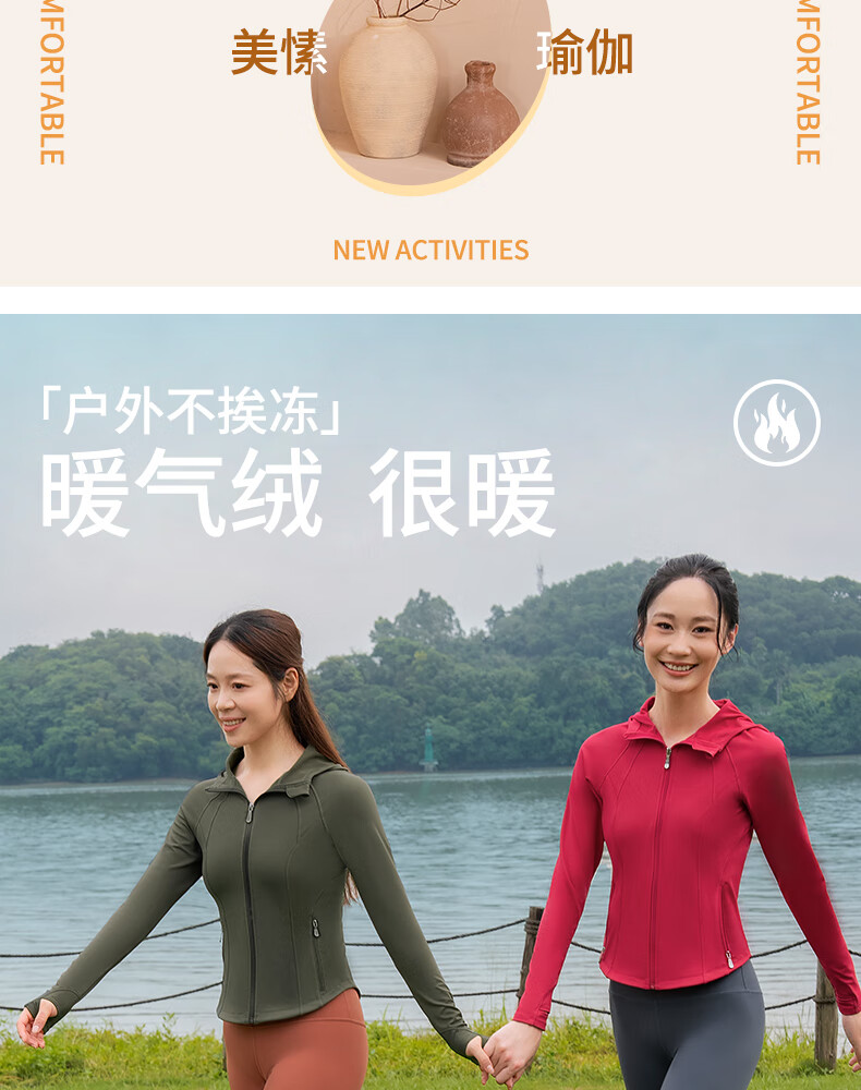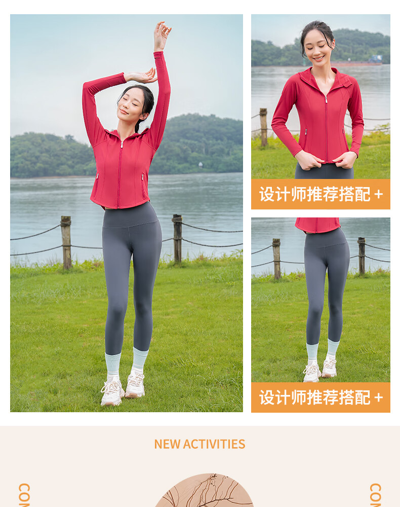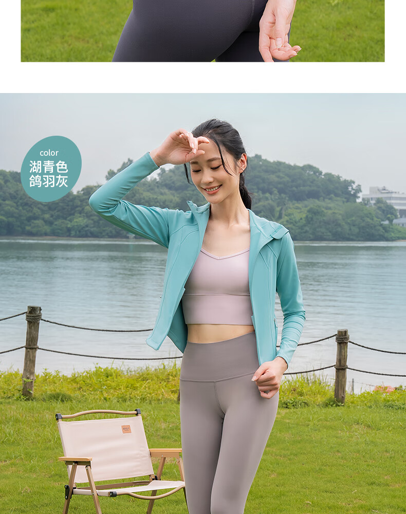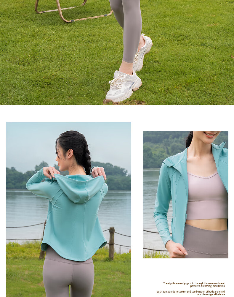 Meesu Autumn and Winter Jacket Slim Thin Velvet Yoga Suit Women's Sports Morning Running Suit Professional High Waist Comfortable Fitness Suit Pilates Lake Cyan + Dove Feather Gray Suit M